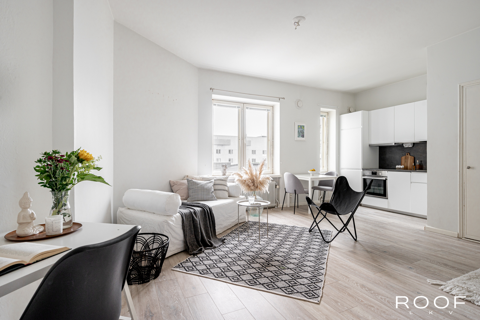 Ikkunat avautuvat rauhalliselle sisäpihalle, tuoden asuntoon miellyttävää hiljaisuutta ja viihtyisyyttä aivan kaupungin ytimessä.