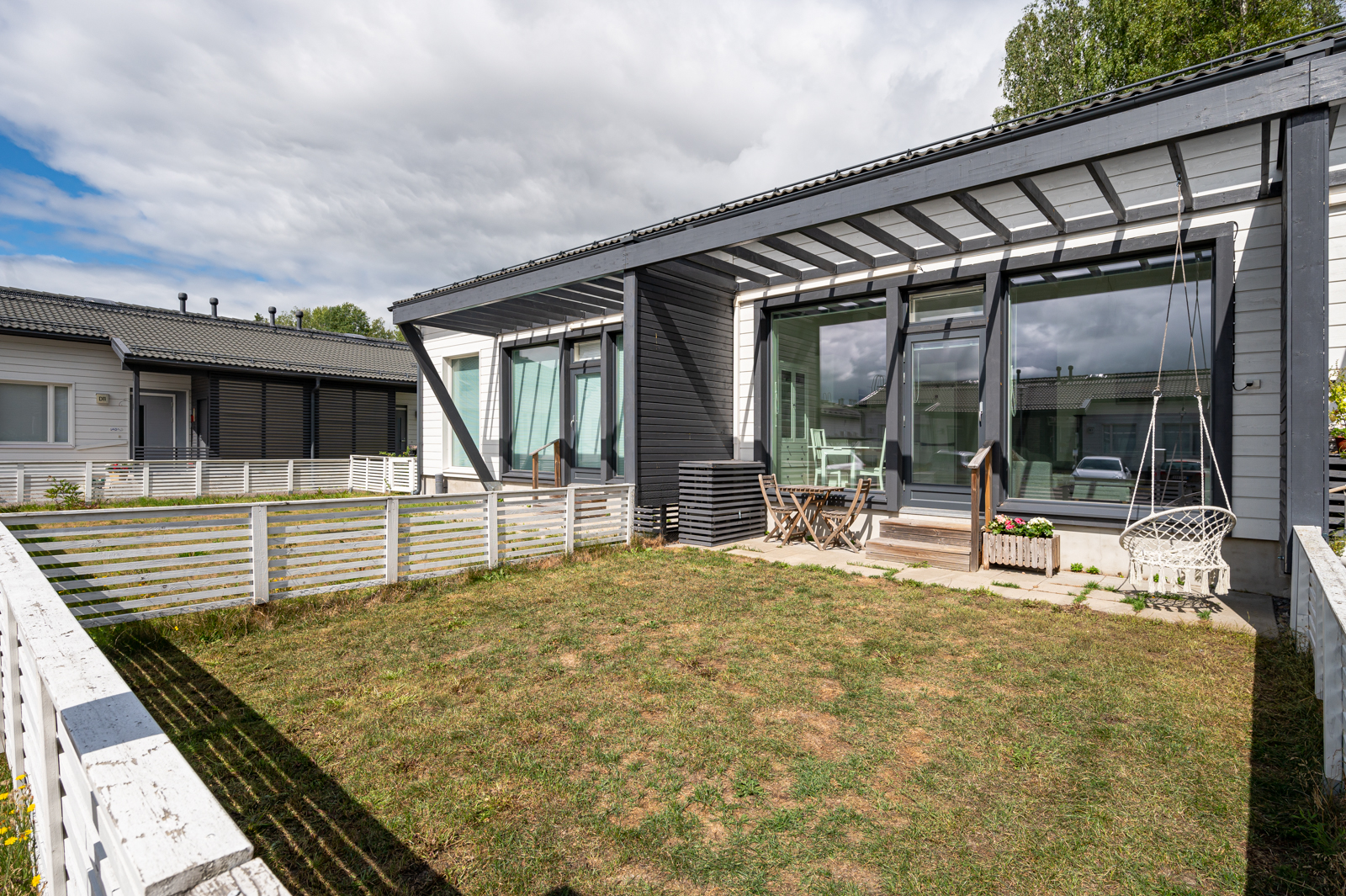 Makuuhuoneessa on tilaa parisängylle, säilytystilaa löytyy suuren vaatehuoneen muodossa. Modernin kylpyhuoneen kruunaa oma sauna!