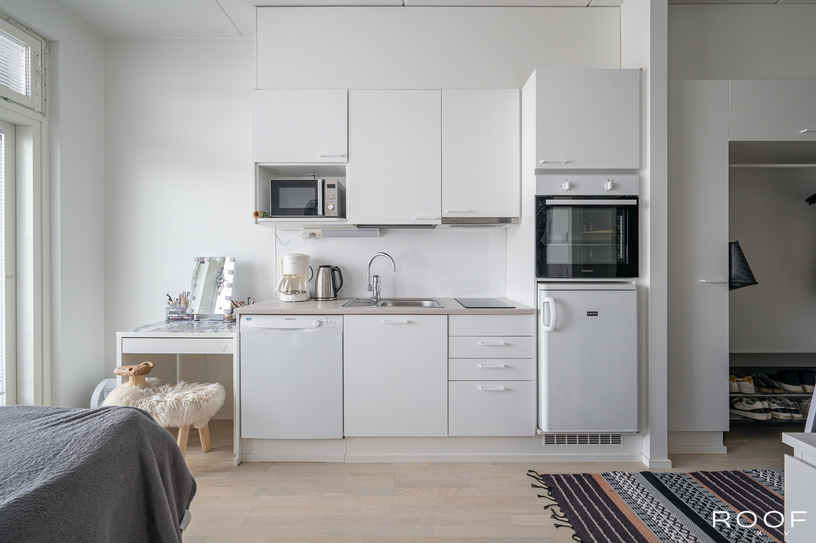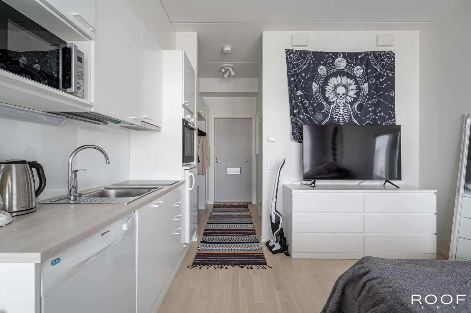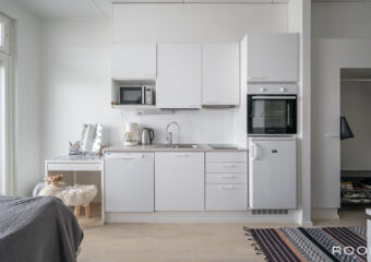 Toimivapohjainen yksiö, jonka ikkunoista avautuu mahtavat kaupunki näkymät. Asuntojen suunnittelussa on panostettu toimivuuteen ja viihtyisyyteen.