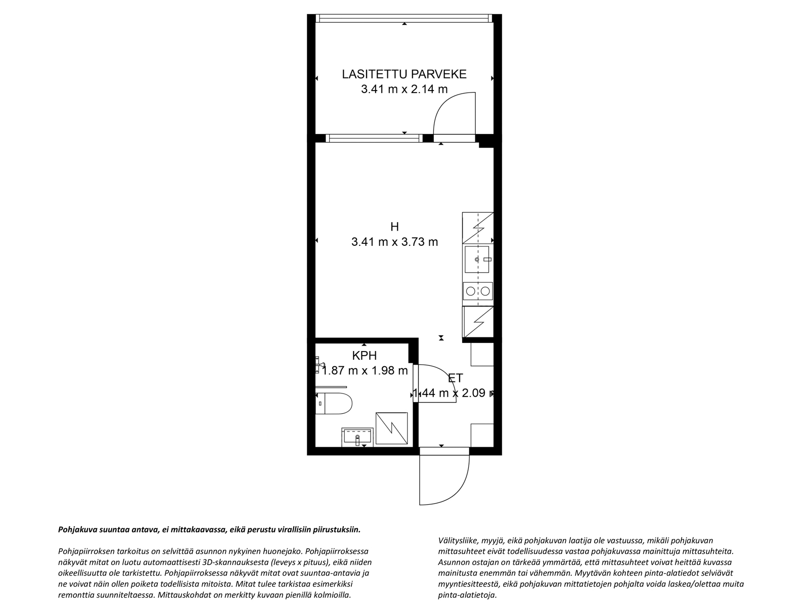 kerrostalo, 1 h, avok, kph, et, parveke