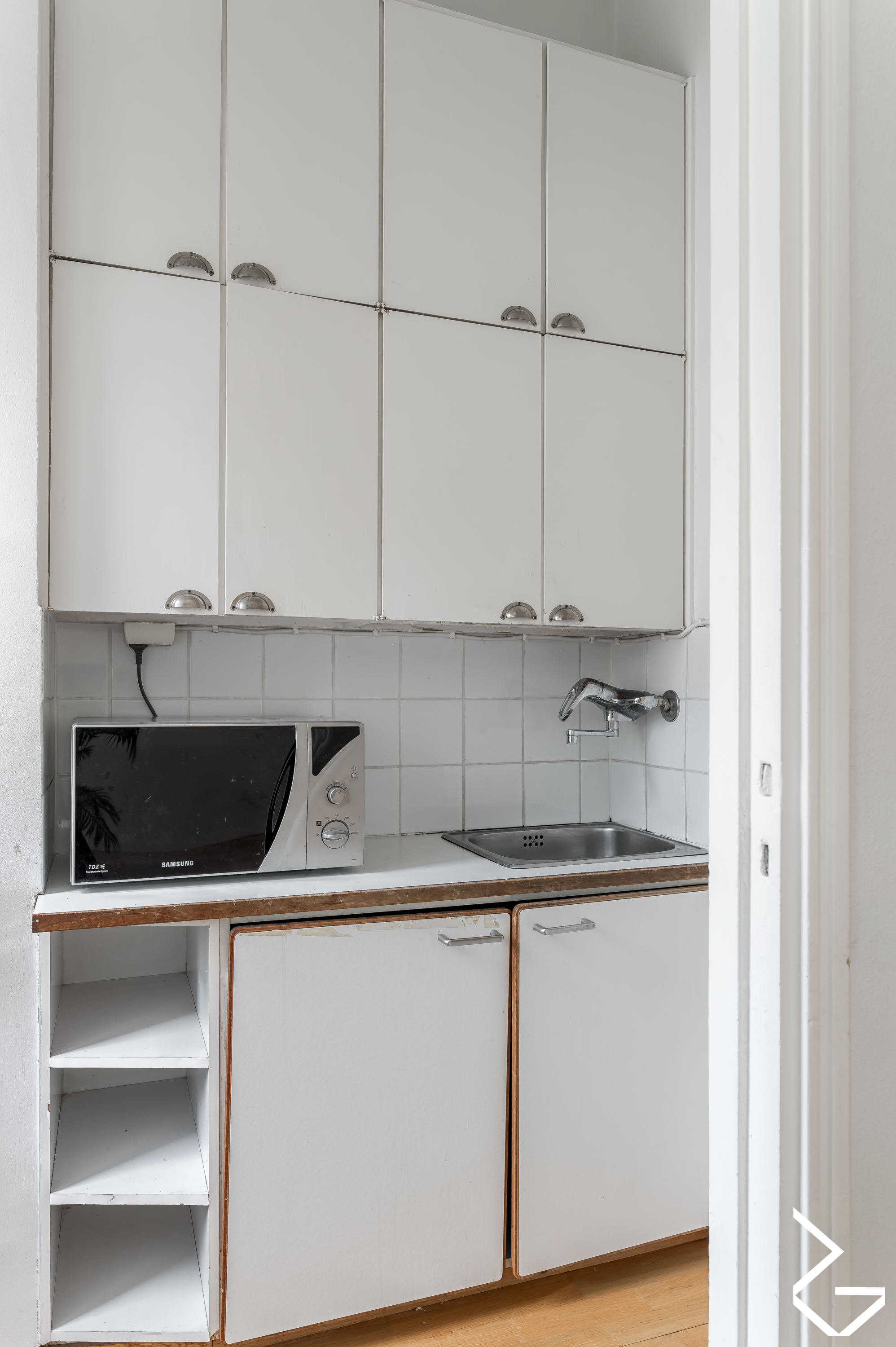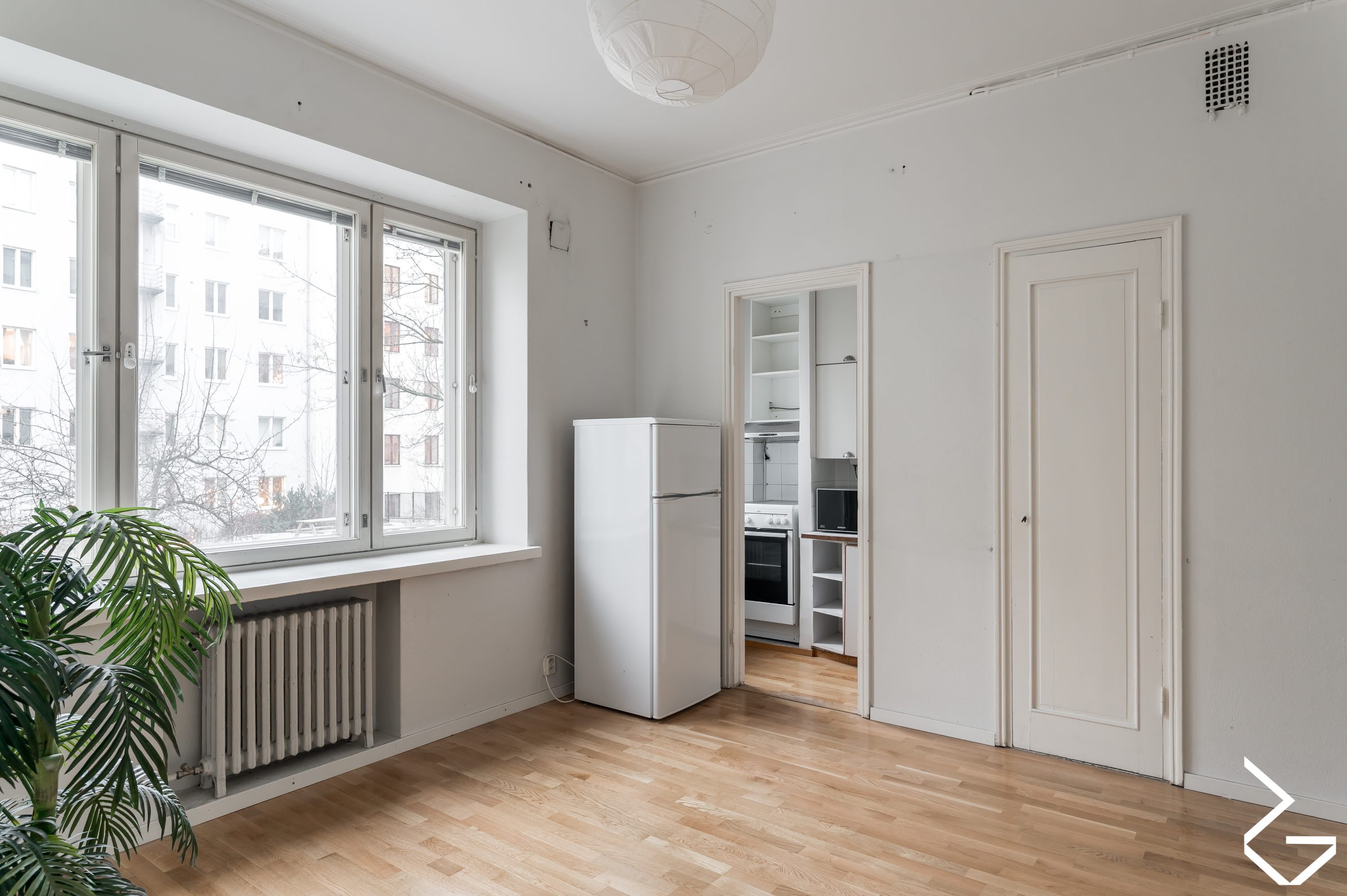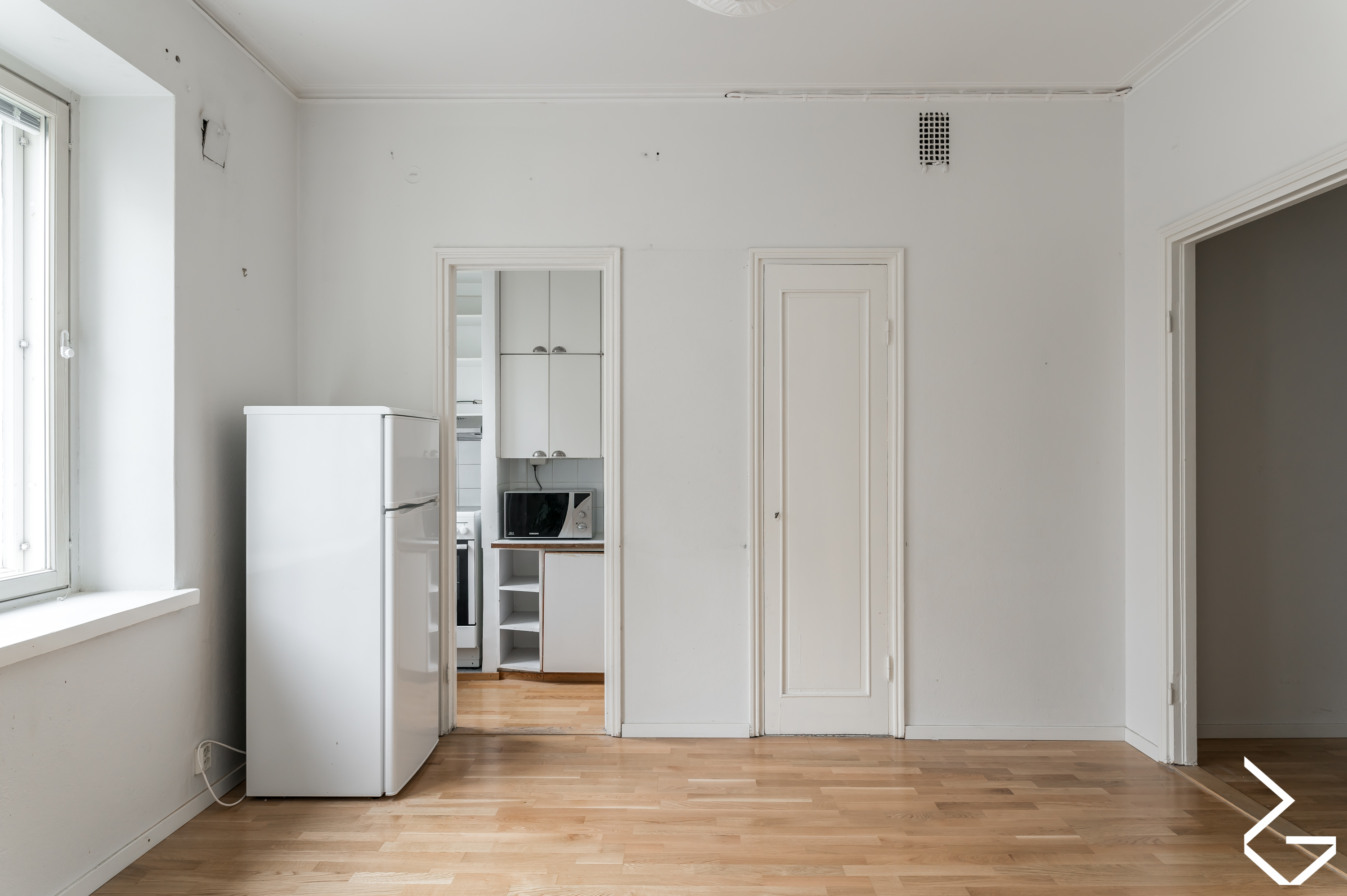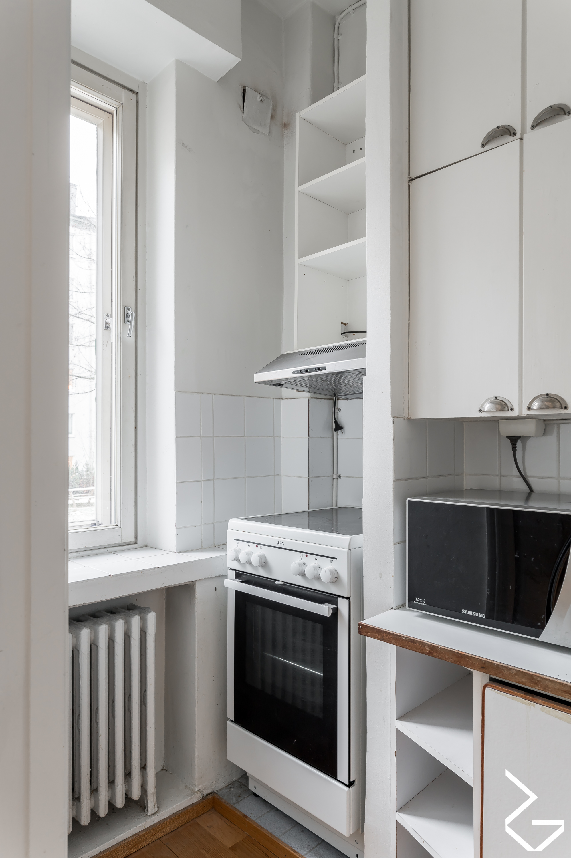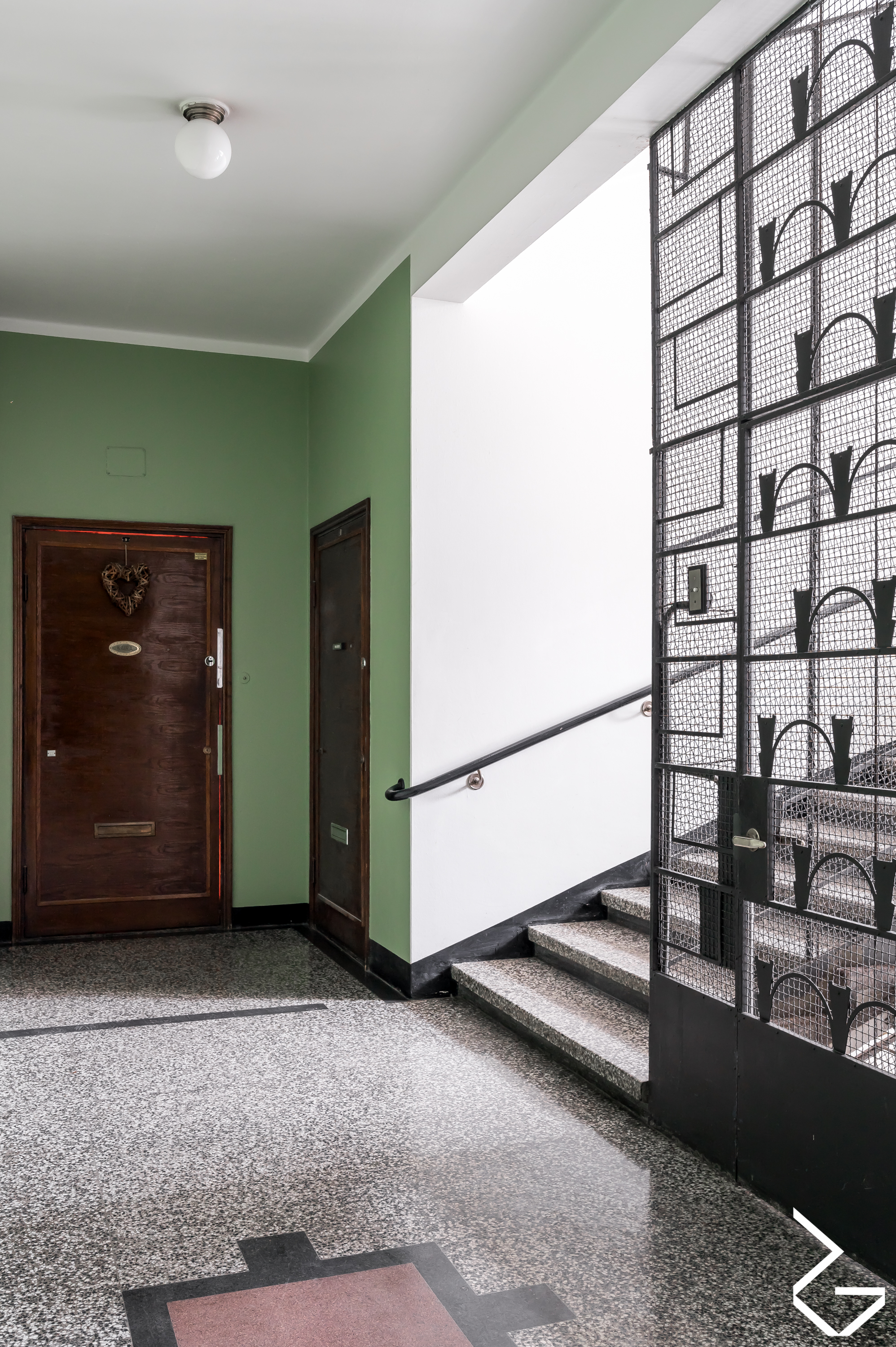 1932-valmistuneen talon toisessa kerroksessa, kompakti yksiö.