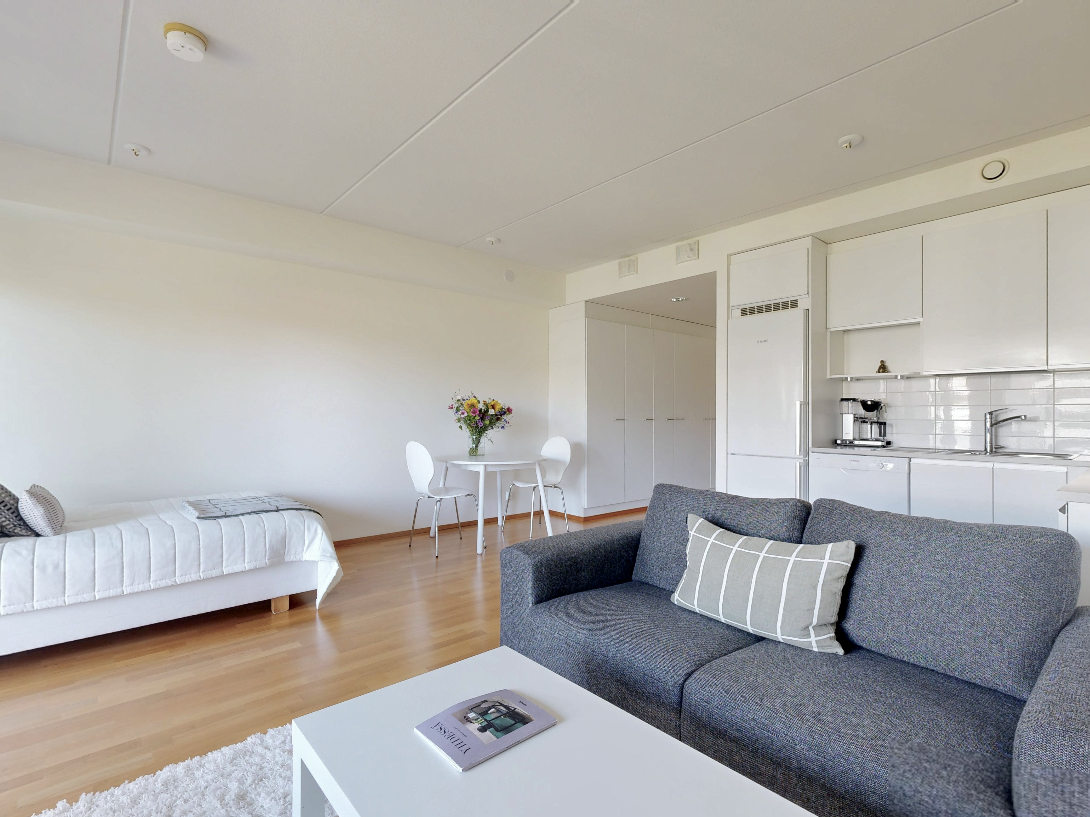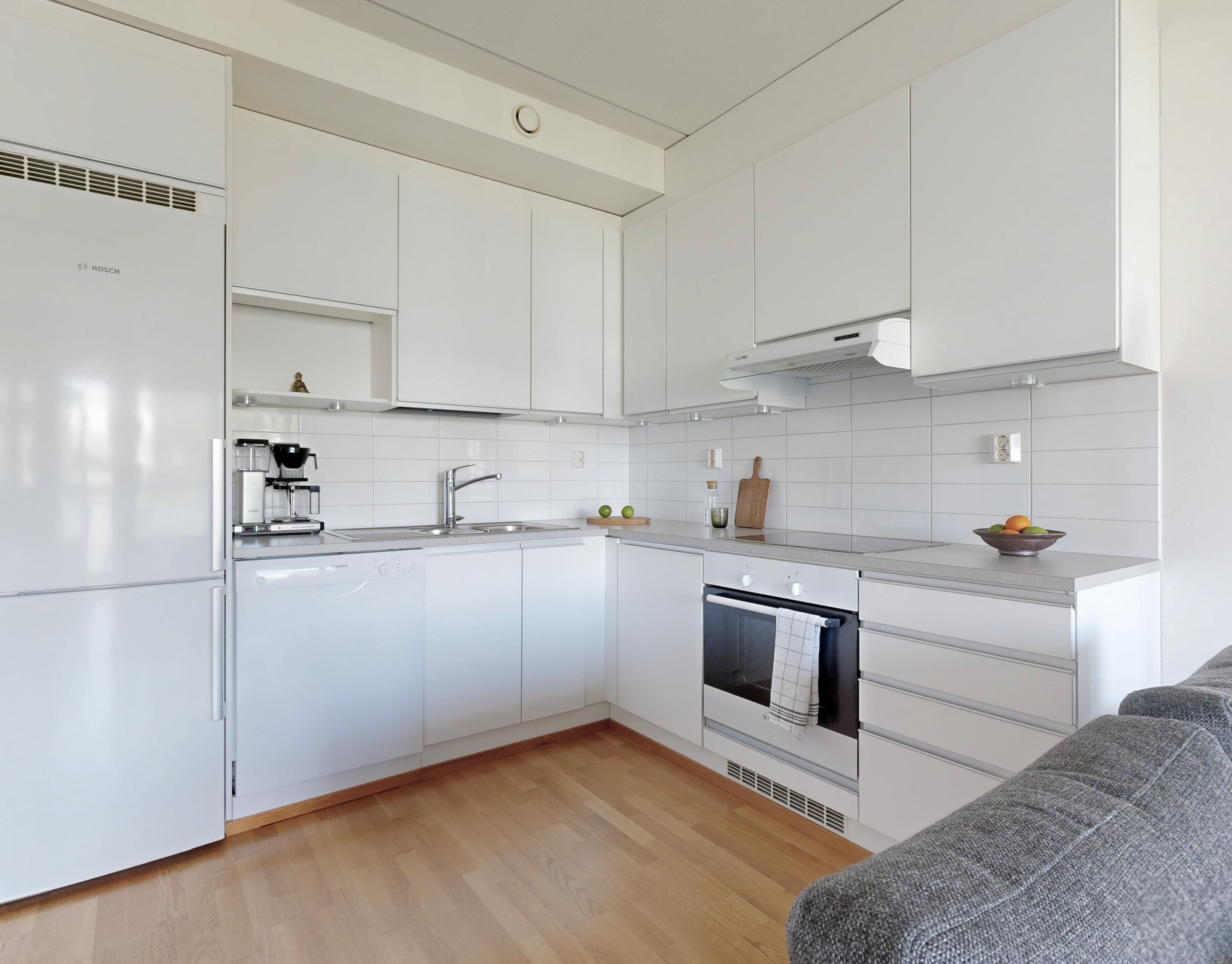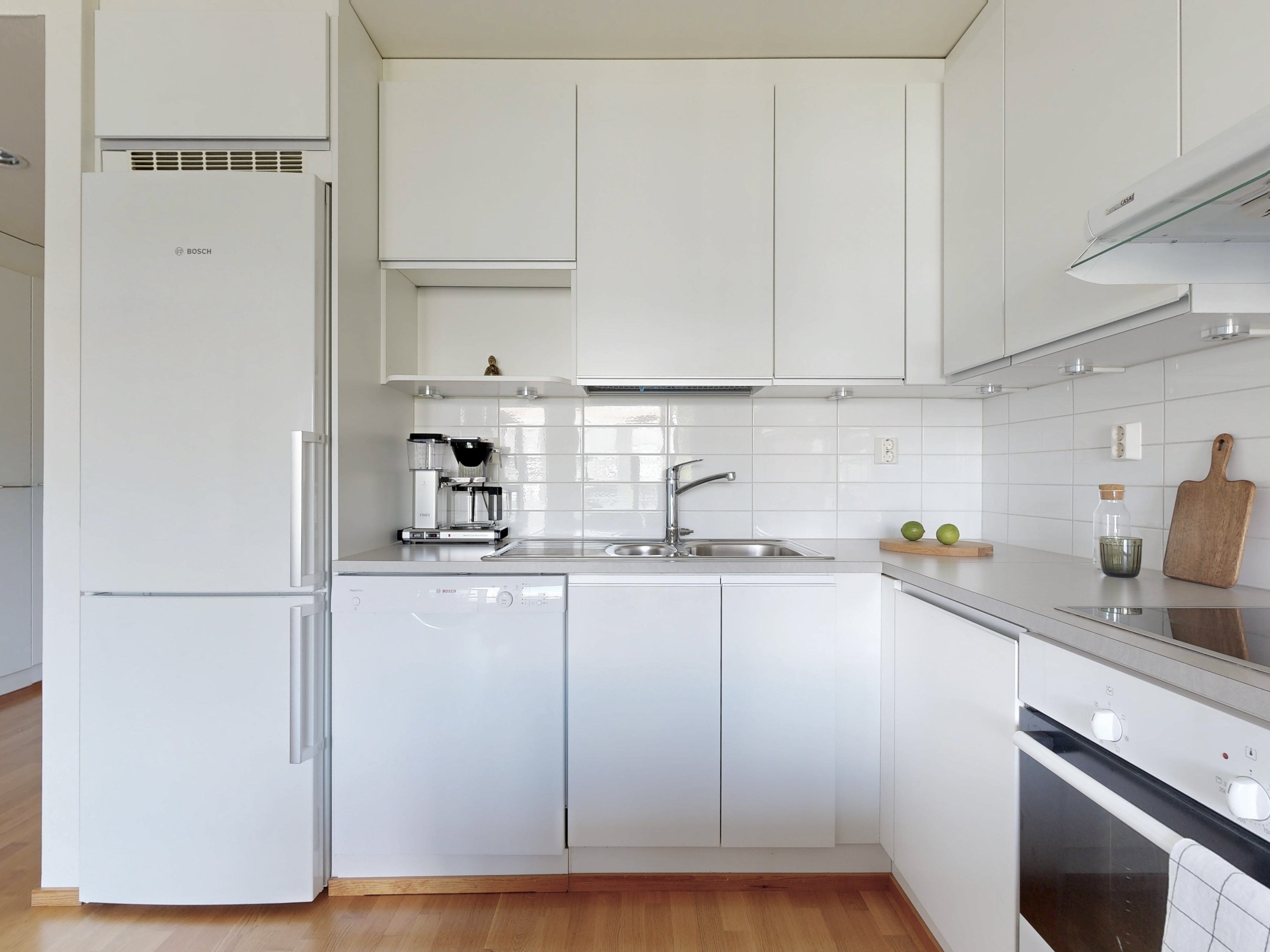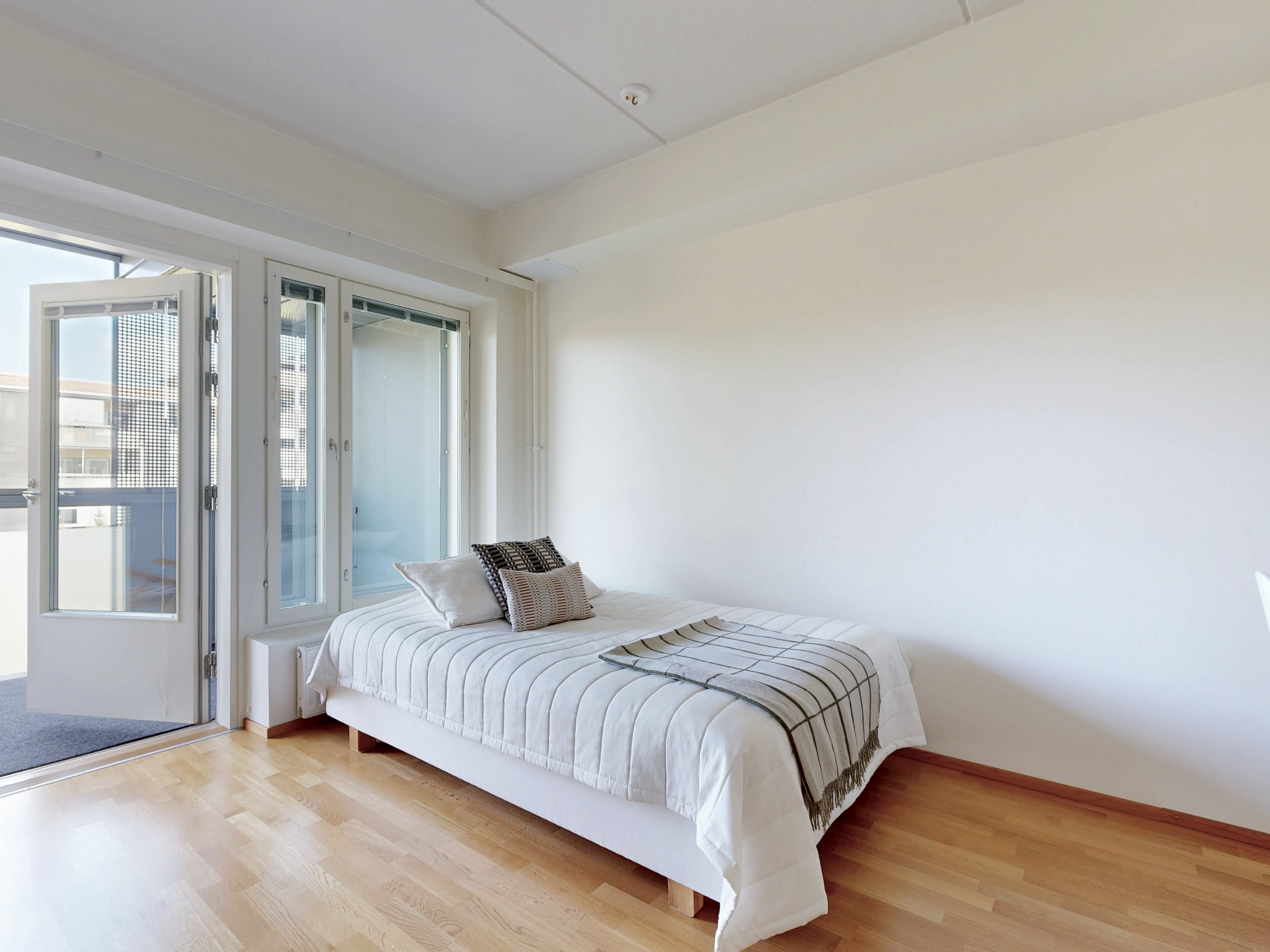 Tässä kodissa hurmaa avara keittiö-olohuoneratkaisu toimii kodin sydämenä, josta käynti lasitetulle parvekkeelle. Keittiössä hyvin säilytys ja laskutilaa. Olohuoneen vieressä tilaa ruokapöydälle ja parisängylle. Säilytystilaa eteisessä olevissa kaapeissa. Tilava kylpyhuone, johon mahtuu pyykinpesukone.