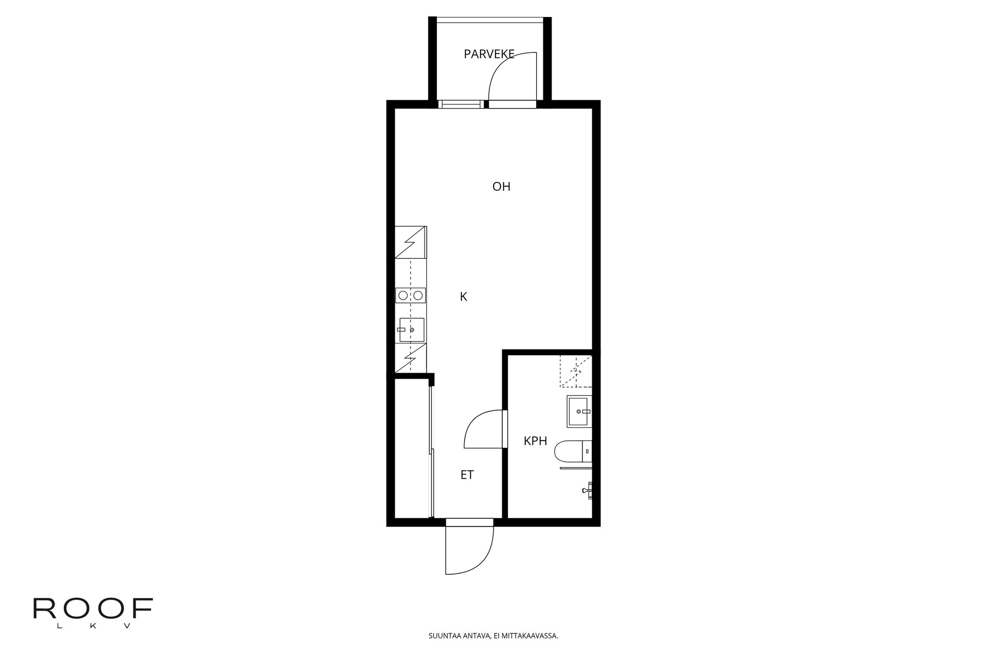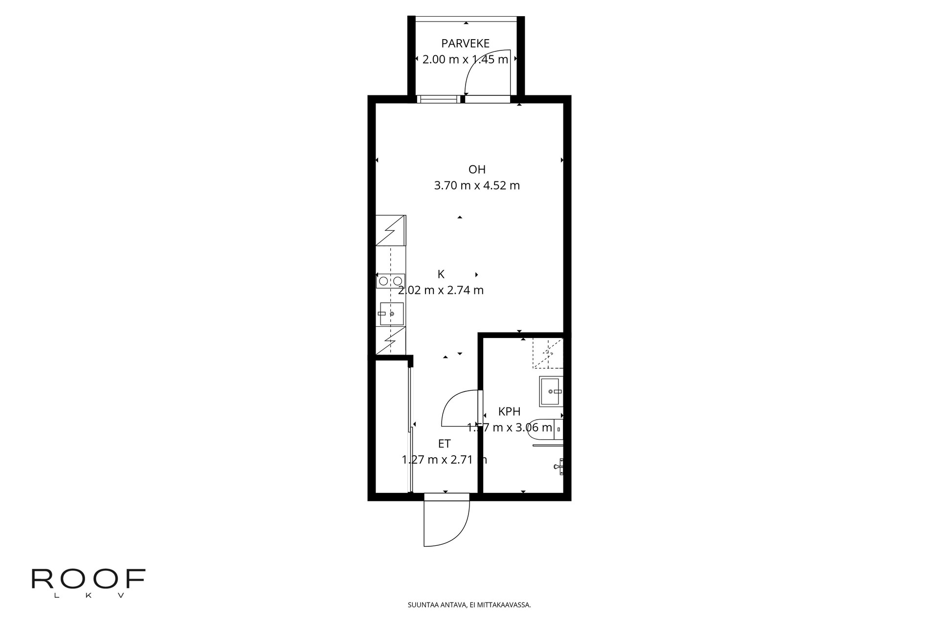 Asunnossa on avokeittiö, jossa on modernit kodinkoneet, ja olohuoneen parkettilattia tuo tilaan lämpöä ja tyylikkyyttä. Kylpyhuone on laatoitettu ja varustettu kaikilla tarvittavilla mukavuuksilla. Parveke tarjoaa lisätilaa ja mahdollisuuden nauttia ulkoilmasta.