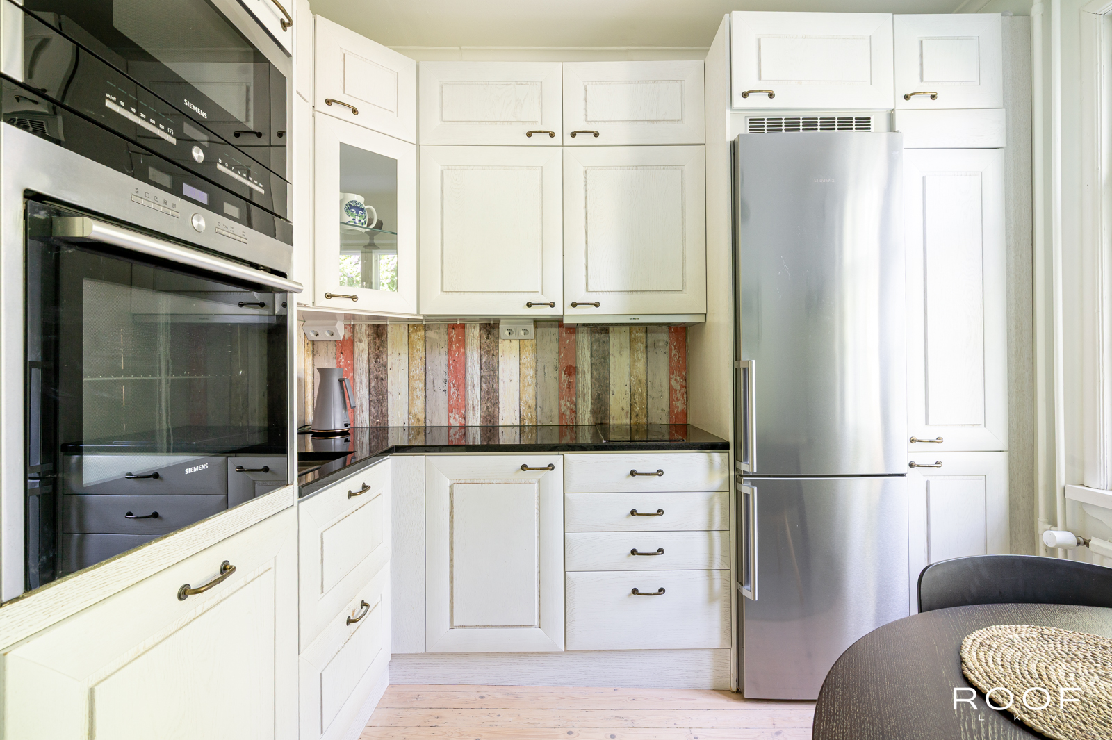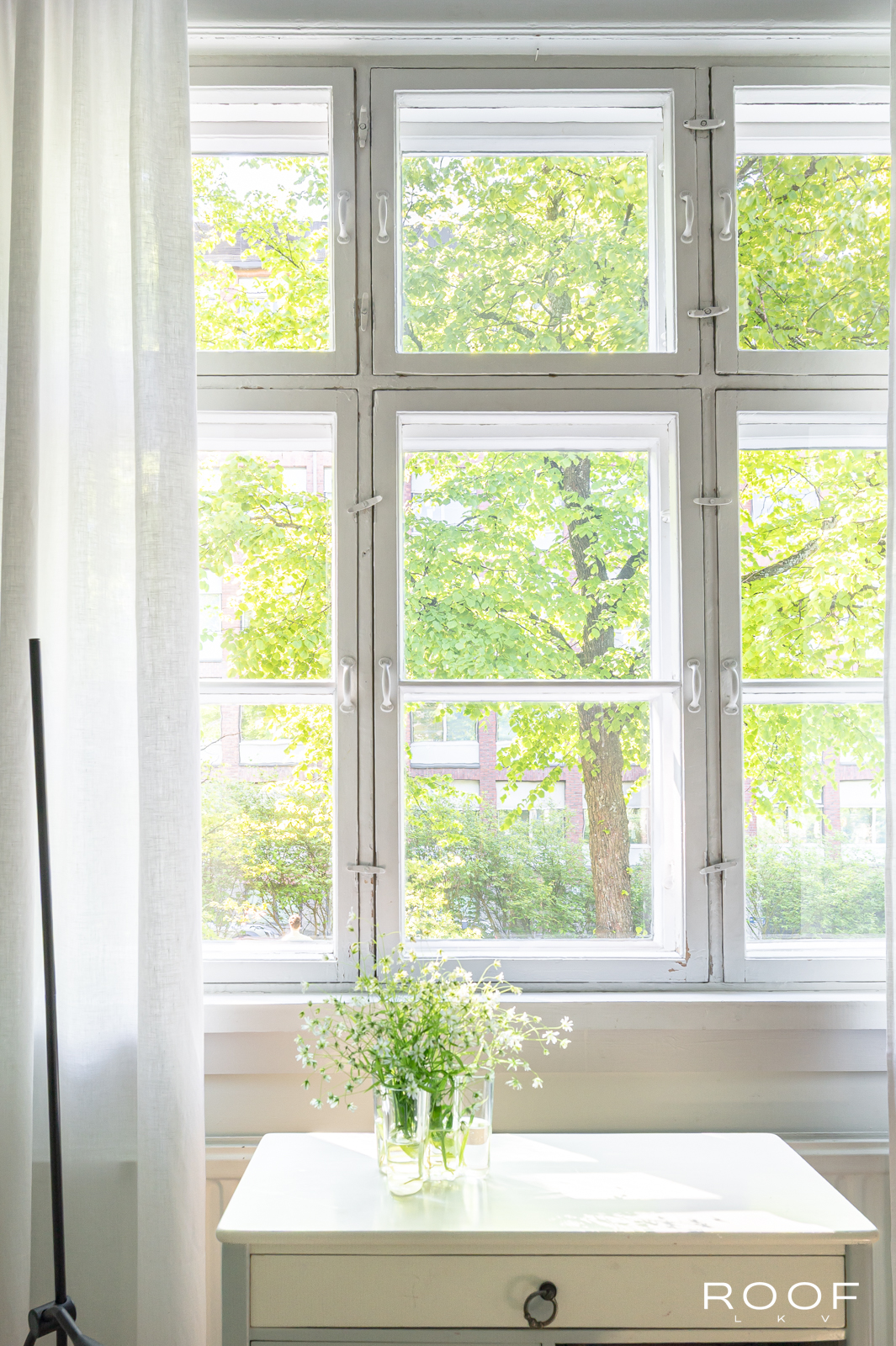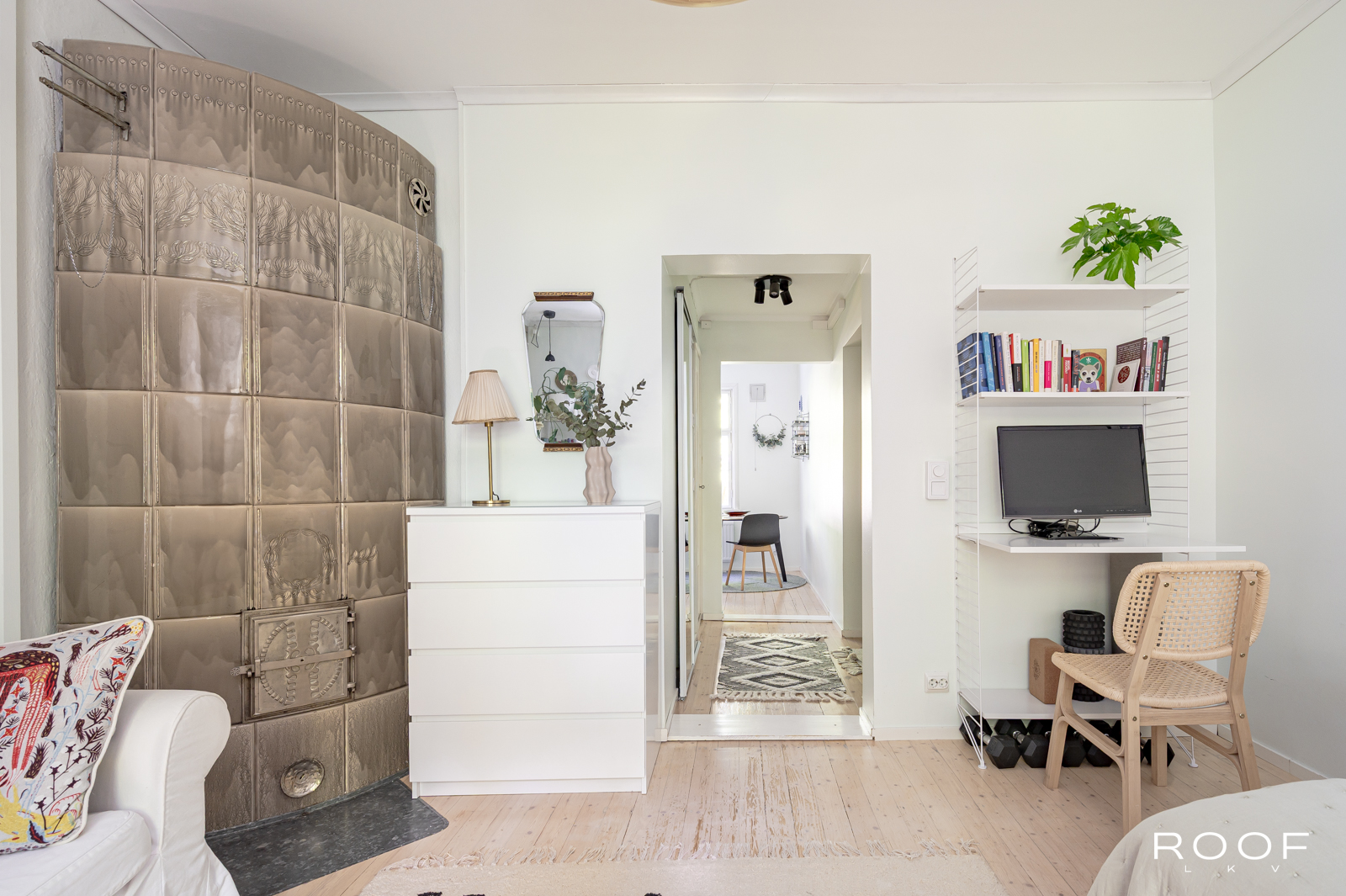 Hyväkuntoinen asunto on kunnostettu rakkaudella ja talon alkuperäistä henkeä kunnioittaen. Korkea huonekorkeus, alkuperäiset lautalattiat, ruutuikkunat ja upea kaakeliuuni tekevät kodista lämpimän ja tunnelmallisen.