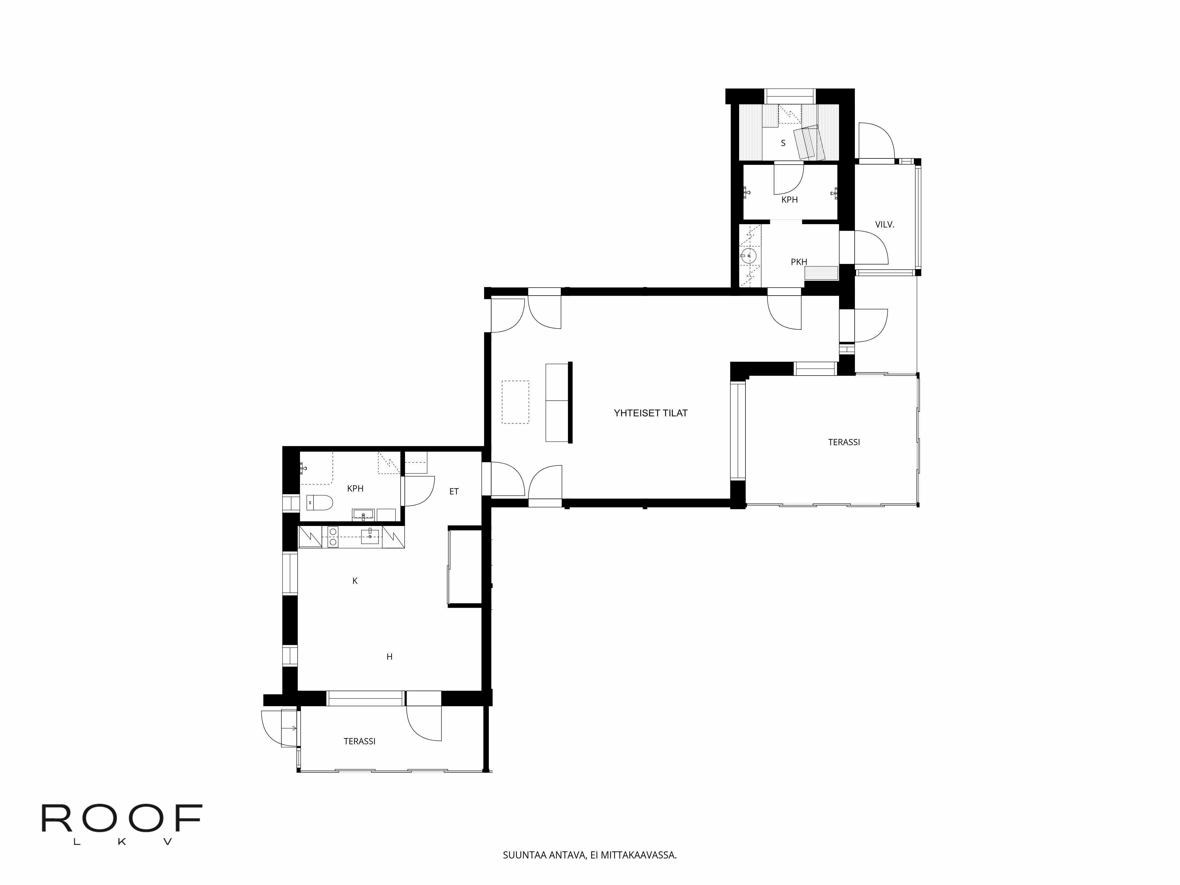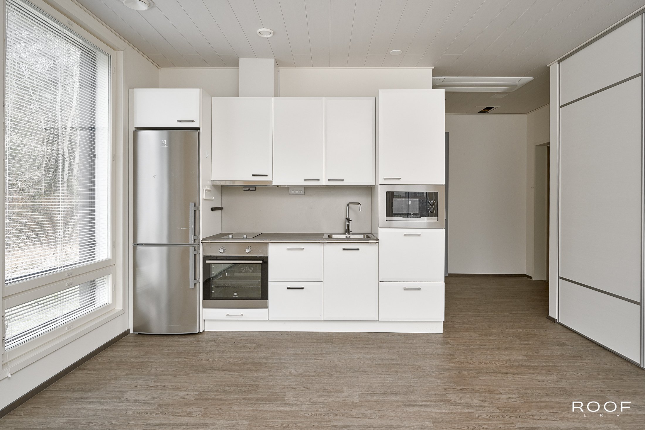 Asunnon olohuone-keittiöyhdistelmä on valoisa ja viihtyisä. Keittiö on varustettu nykyaikaisilla laitteilla, kuten induktioliedellä ja erillisellä uunilla. Kylpyhuoneessa on tyylikkäät laatat, suihku ja pesukoneliitäntä. Oma lasitettu terassi etelän suuntaan tarjoaa mahdollisuuden nauttia ulkoilmasta ja rentoutua.