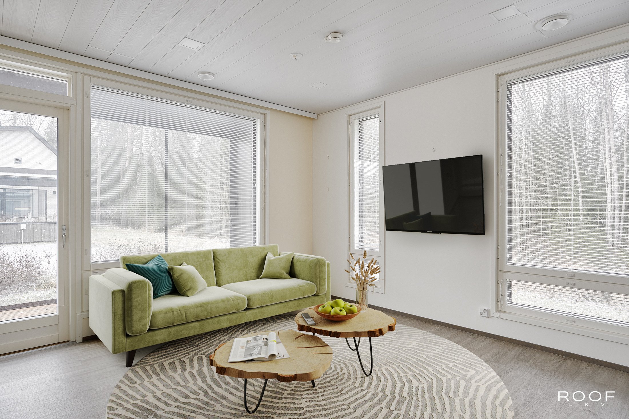 Korian Pioneeripuiston rauhallisella alueella Kouvolassa sijaitsee tämä vuonna 2019 valmistunut esteetön yksitasoinen koti.