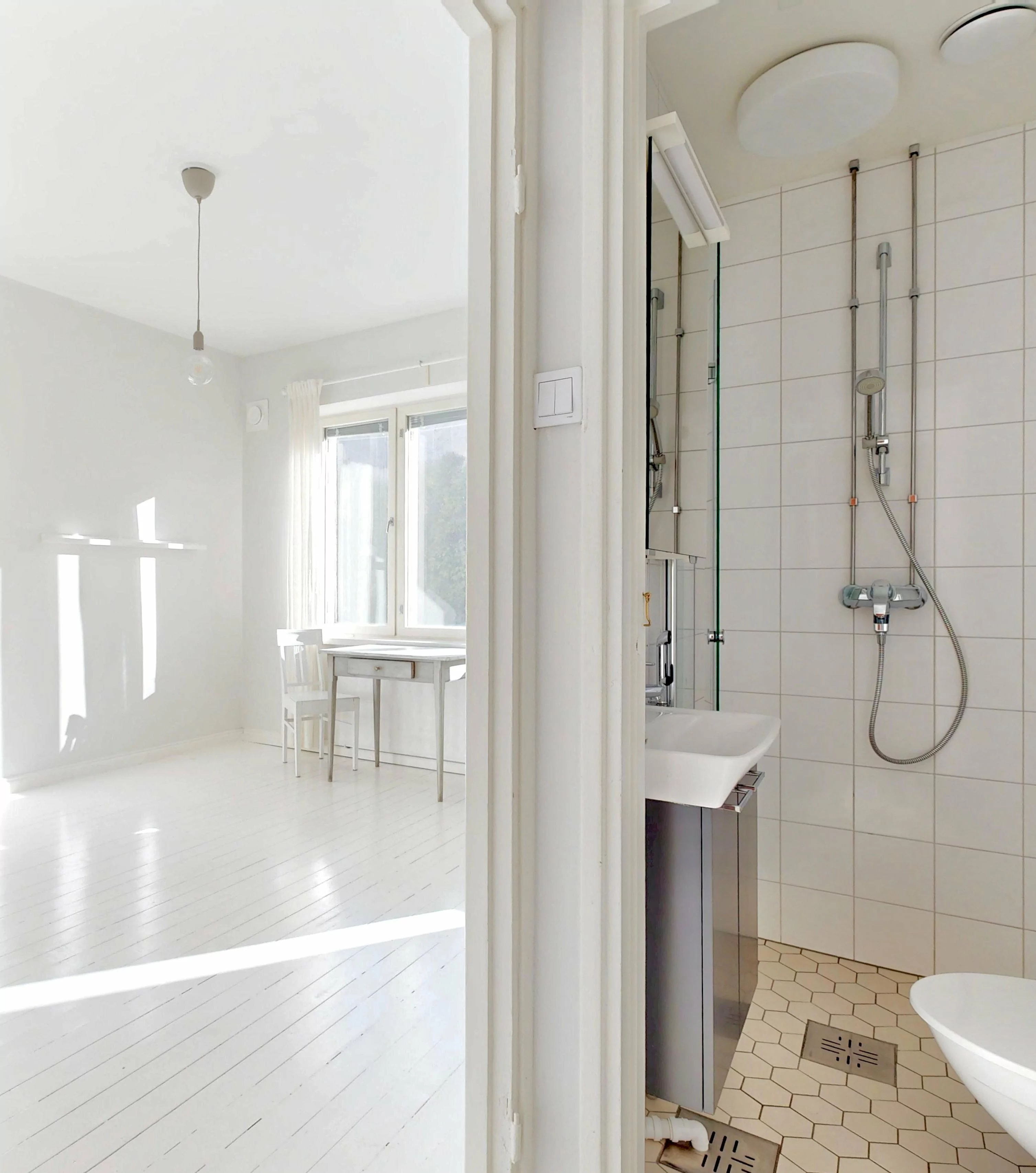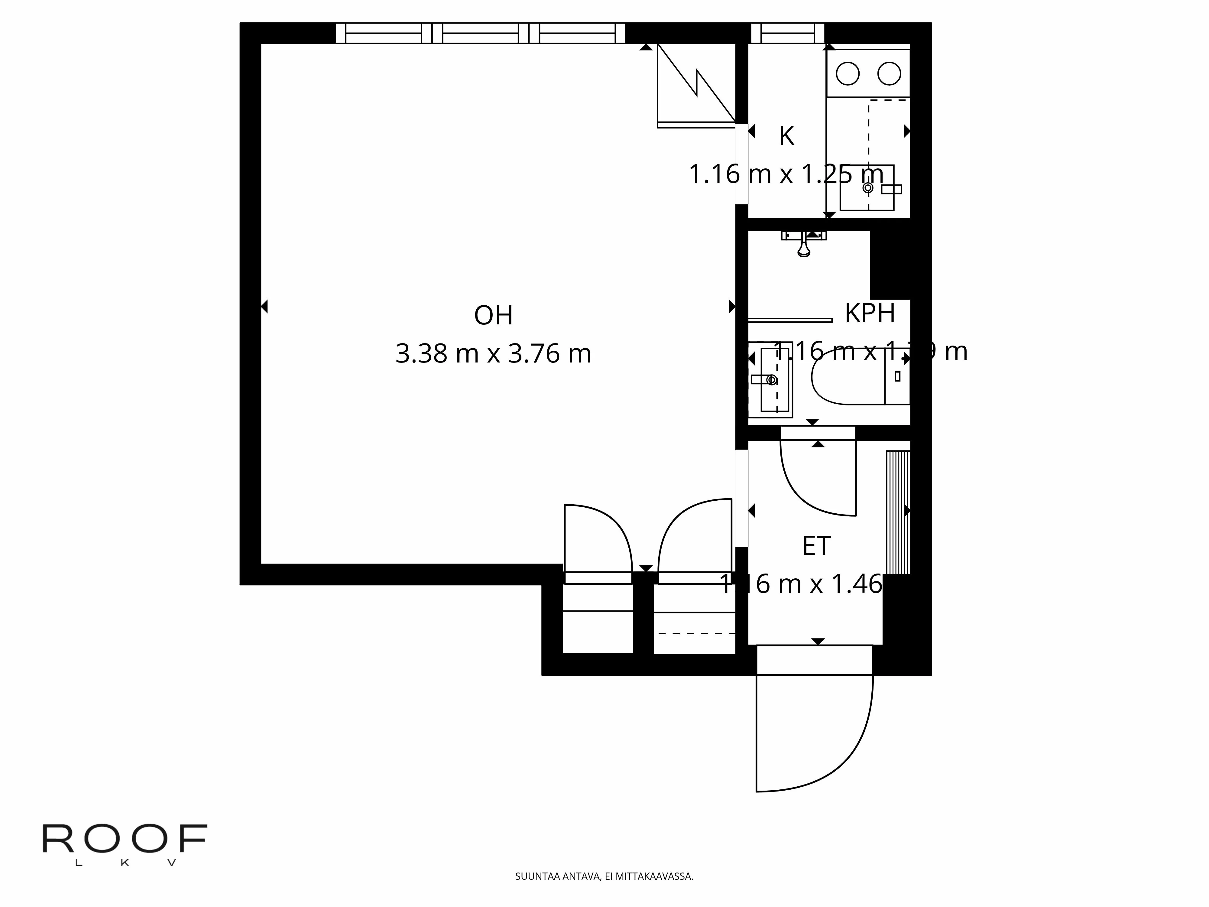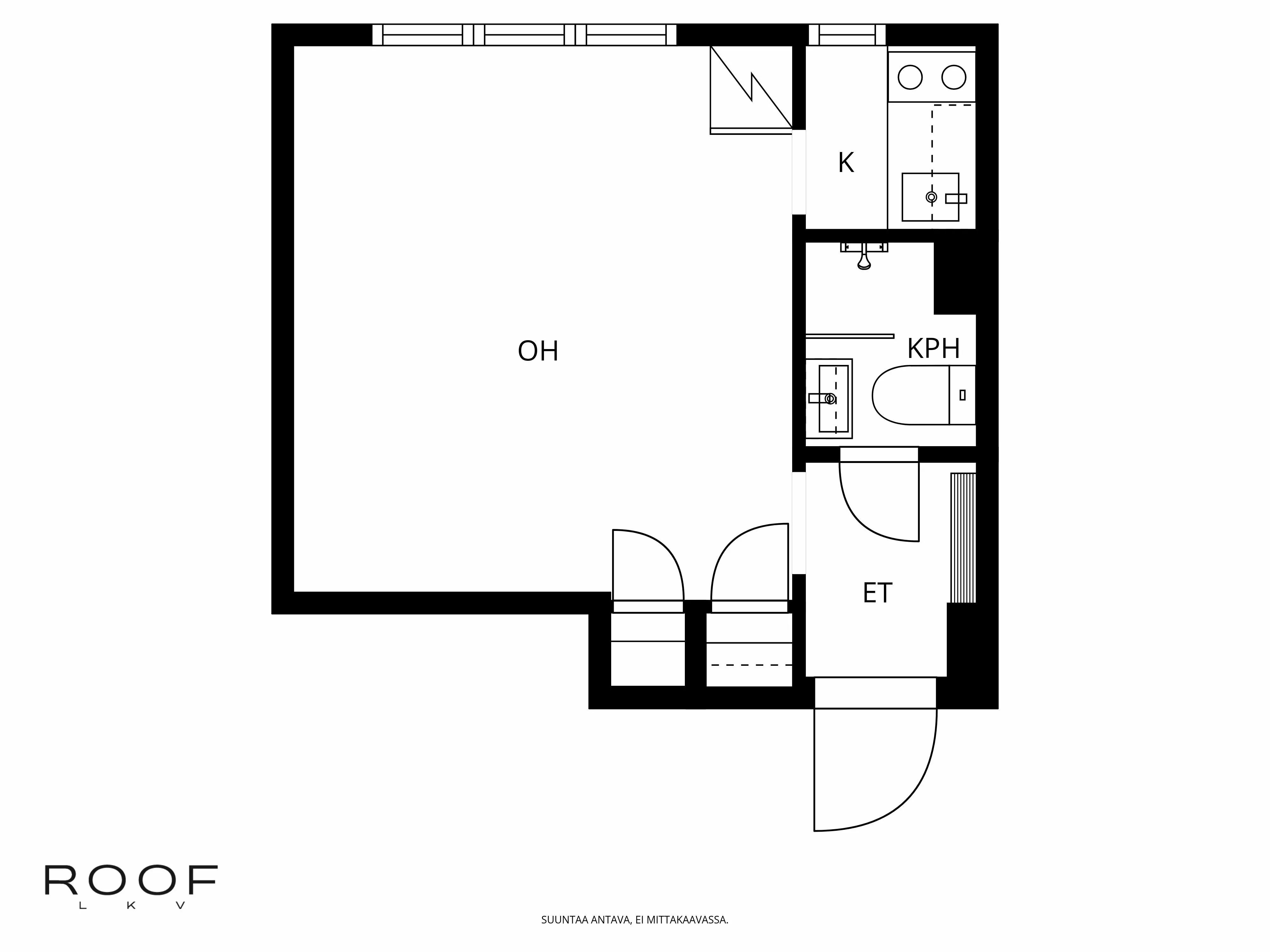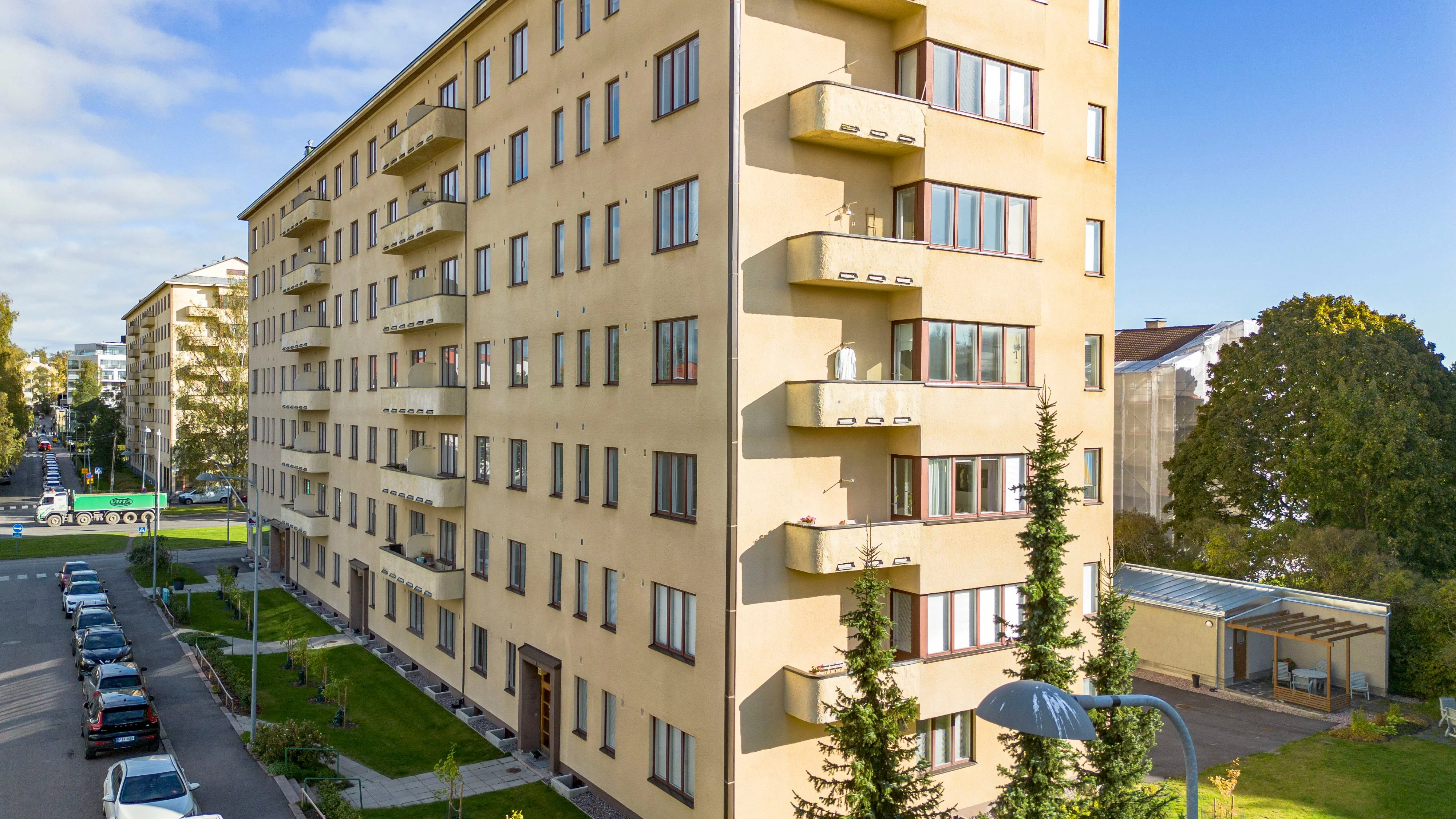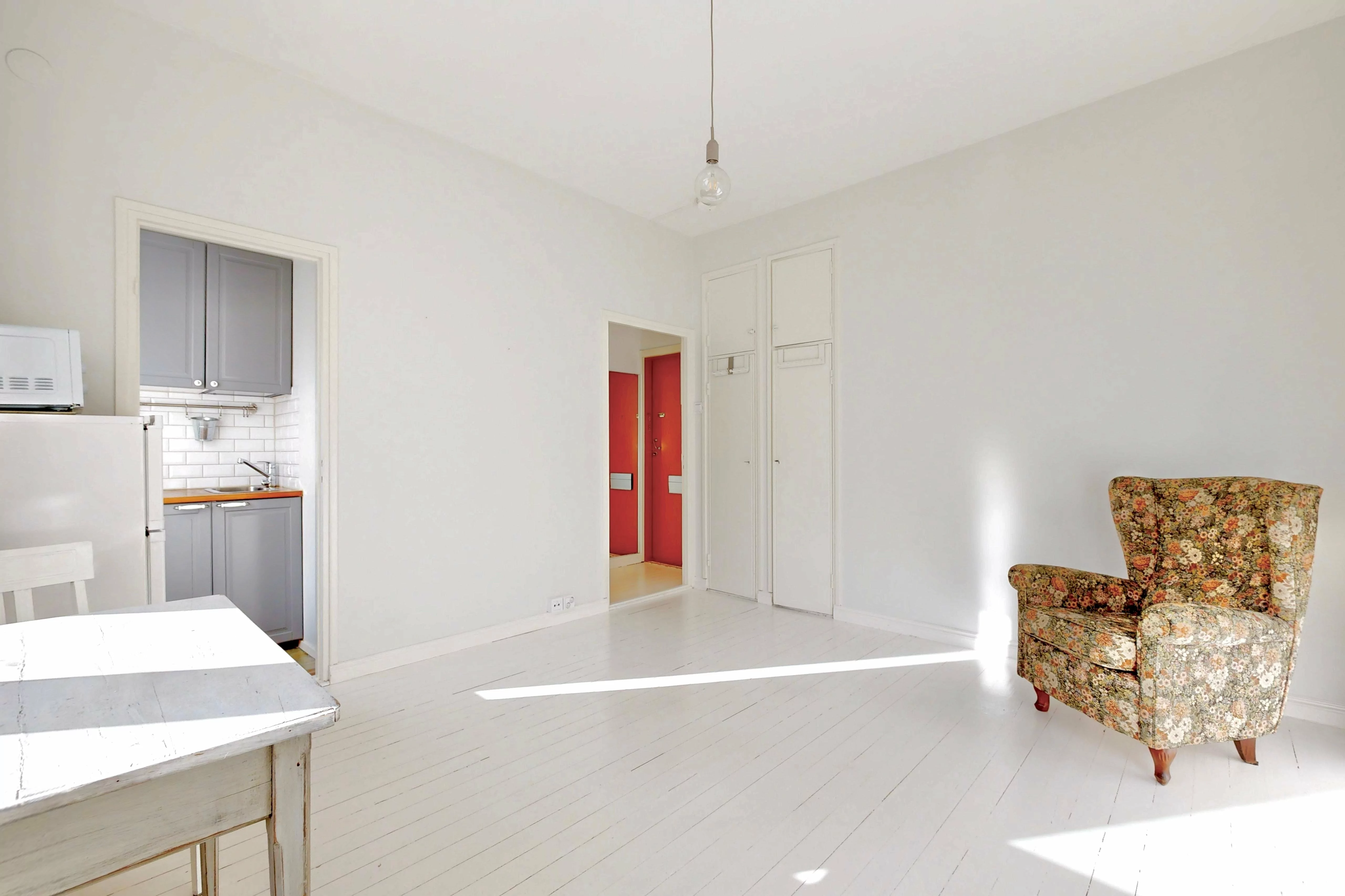 Ensimmäisen kerroksen kompakti yksiö ja näkymät yhtiön sisäpihalle. Keittiö on kätevästi keittokomerona, jolloin varsinaiseen huoneeseen jää tilaa niin sängylle, ruokapöydälle kuin säilytykselle. Asunnon lautalattia lisää kodikkuutta ja tunnelmaa. Kylpyhuone on remontoitu putkiremontissa. Taloyhtiössä löytyy pesutupa.