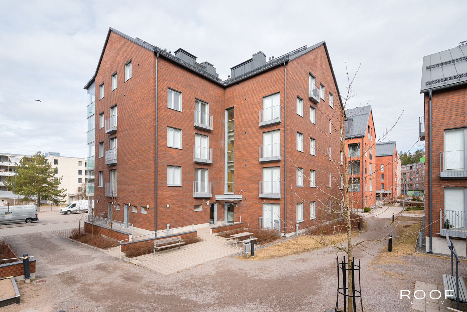 Sijainti on erinomainen: hyvät liikenneyhteydet, vain 800 metriä Espoon Keskuksen juna-asemalle ja noin 650 metriä kauppakeskus Entresseen.
