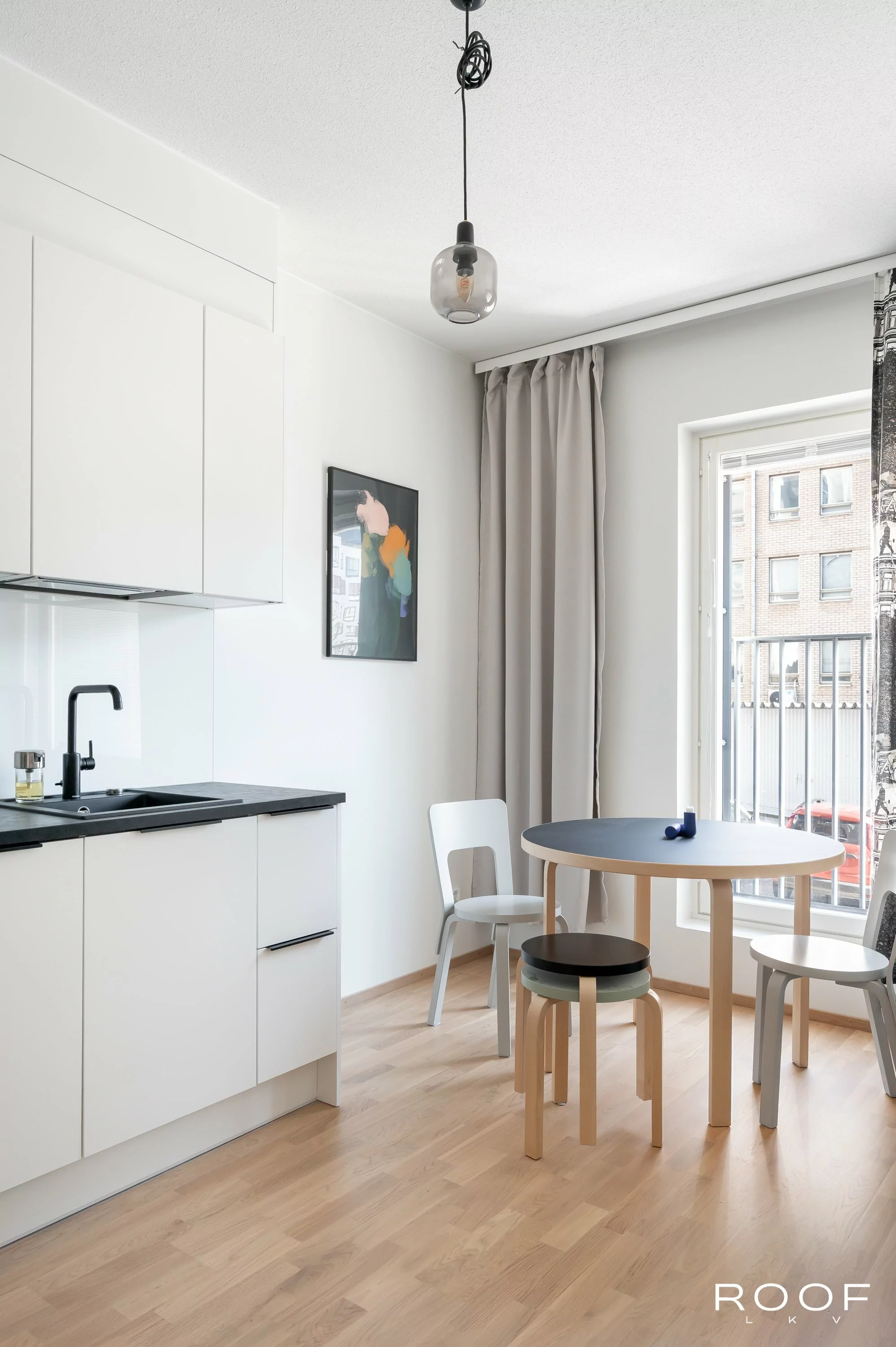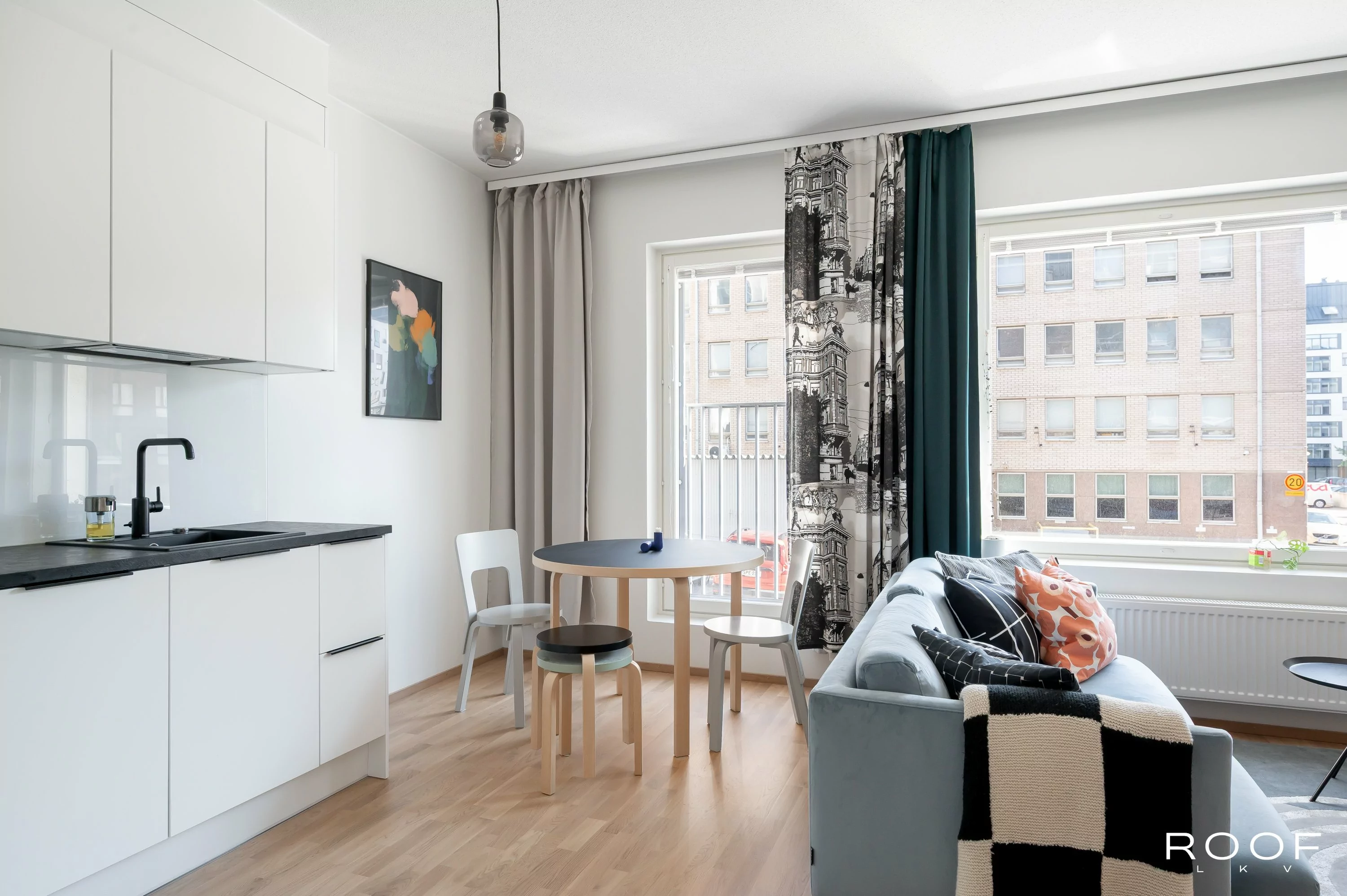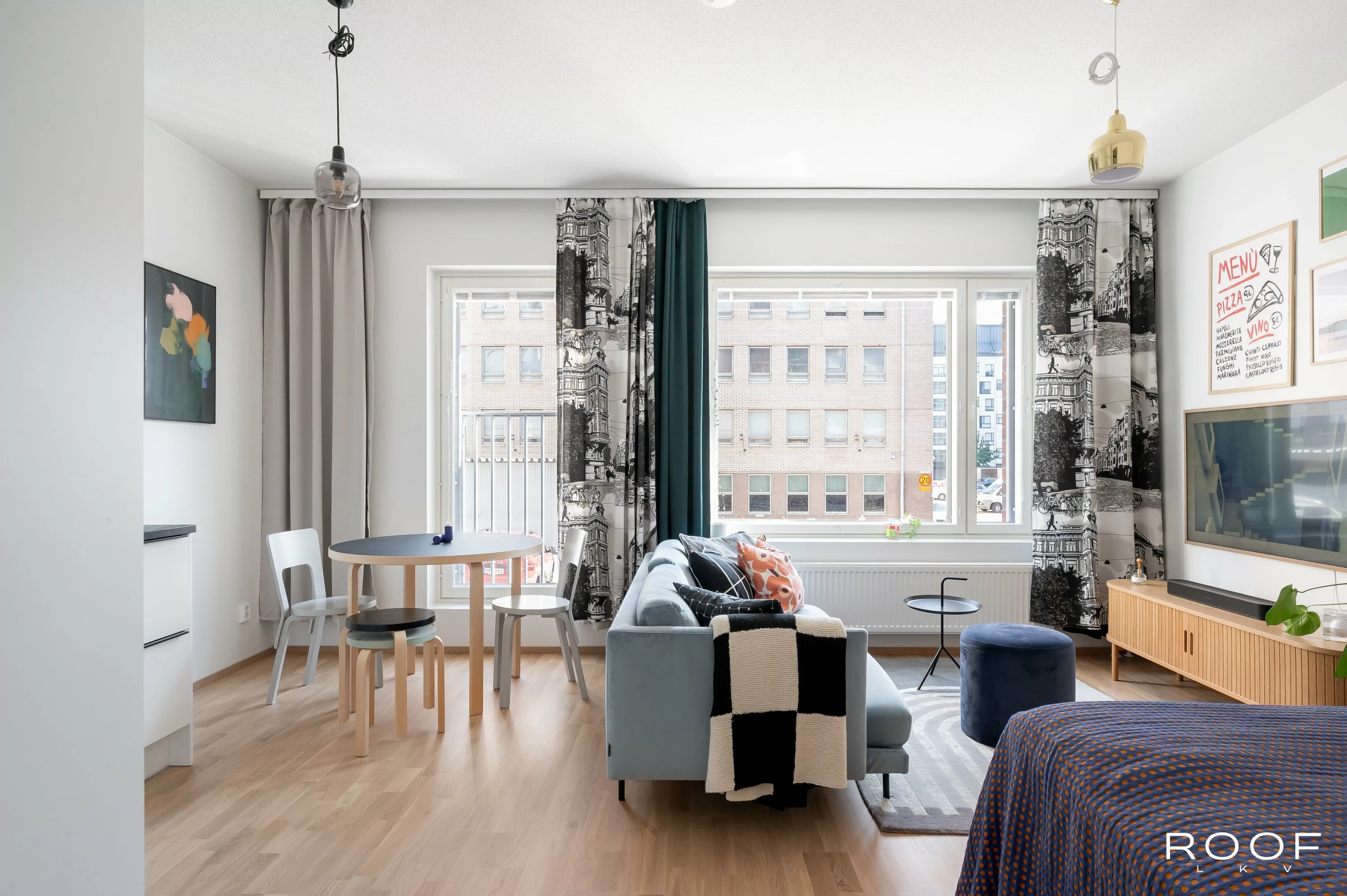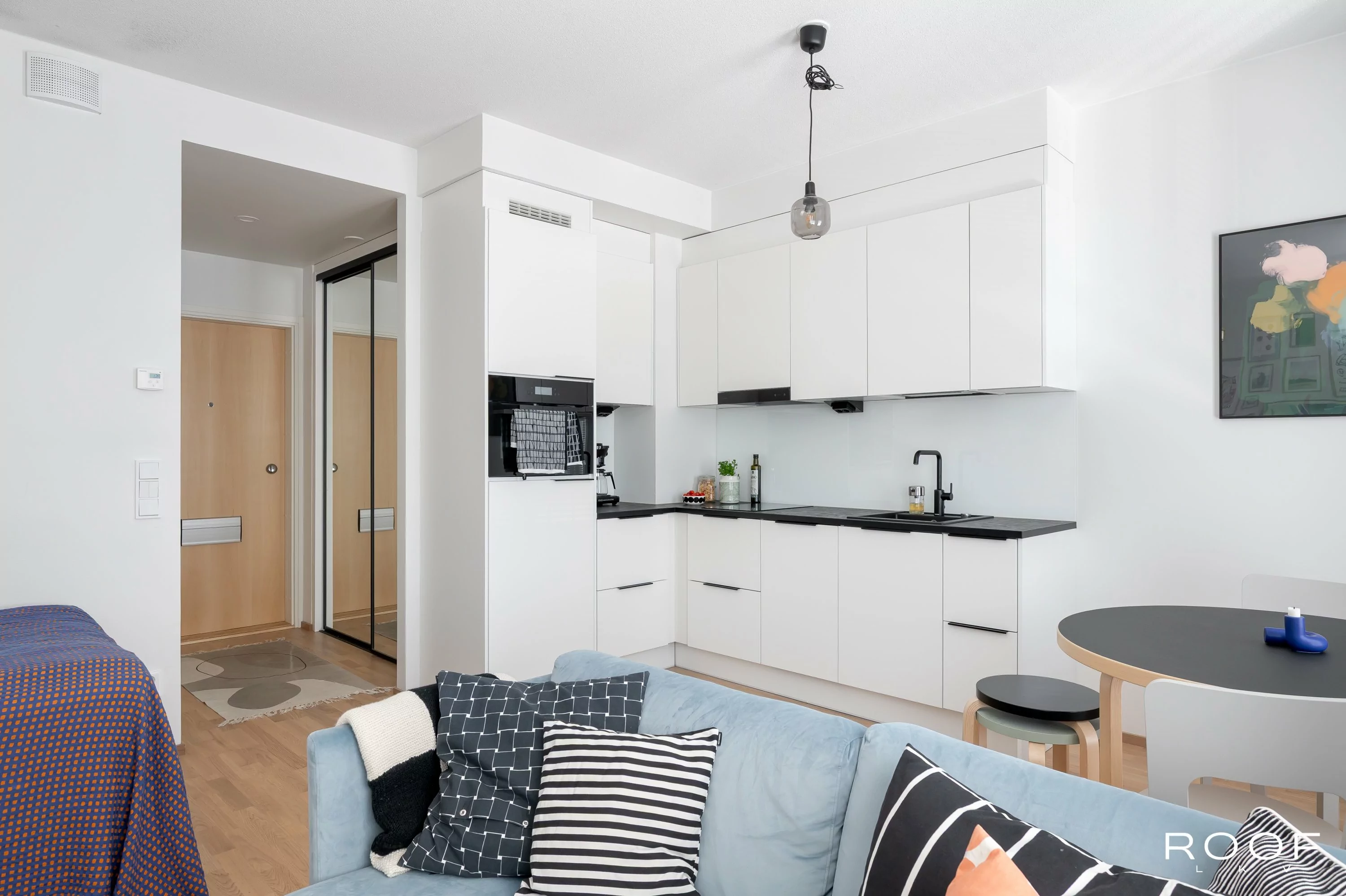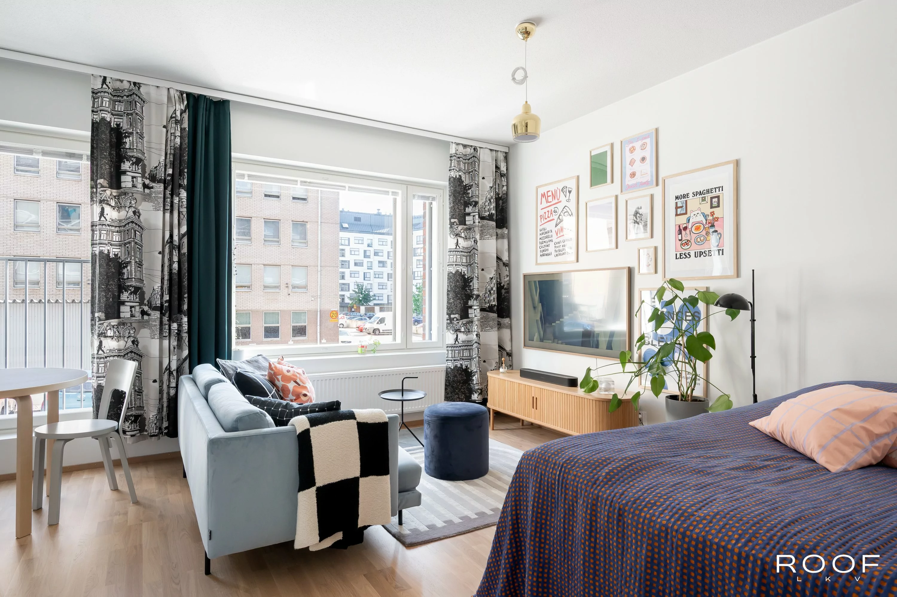 Tervetuloa ihastumaan tähän valoisaan ja tyylikkääseen ensimmäisen kerroksen yksiöön, joka sijaitsee rauhallisella alueella Arabianrannassa – ei katutasossa. Asunnon toimiva pohjaratkaisu tekee tilasta avaran ja käytännöllisen, ja laadukkaat materiaalivalinnat viimeistelevät kokonaisuuden.