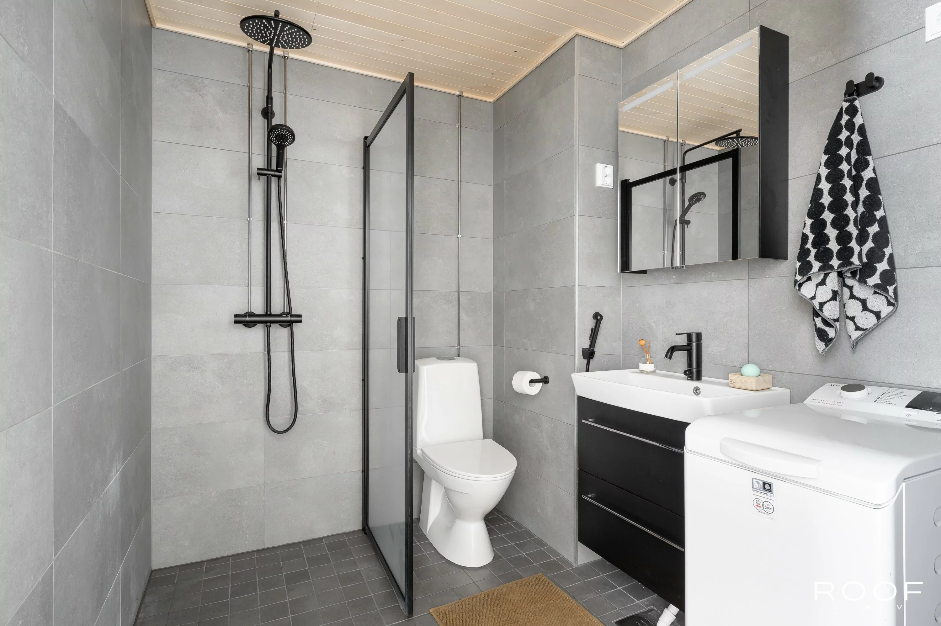 Kylpyhuoneessa on hyvin tilaa myös pyykinpesukoneelle. Sieltäkin löytyy harkit...