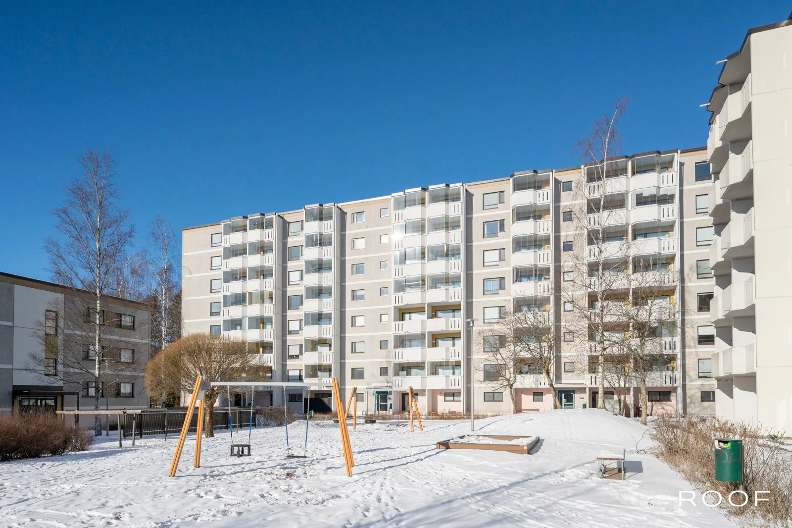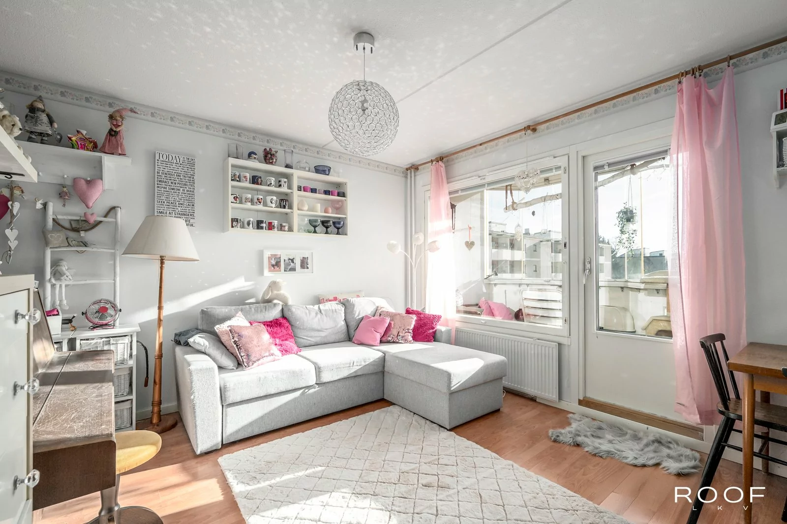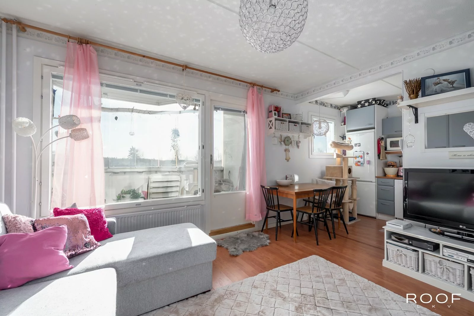 Asunnossa on erinomainen pohjaratkaisu: runsaasti kaappitilaa, siisti ja toimiva keittiö sekä rauhallinen makuuhuonenurkkaus. Lasitettu parveke tarjoaa mukavasti lisätilaa.