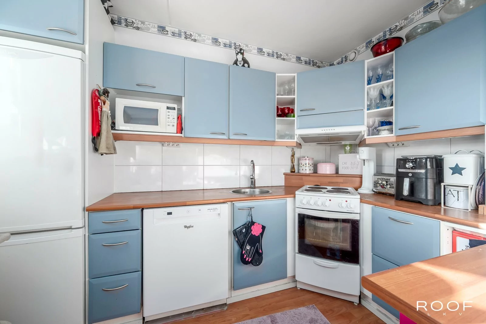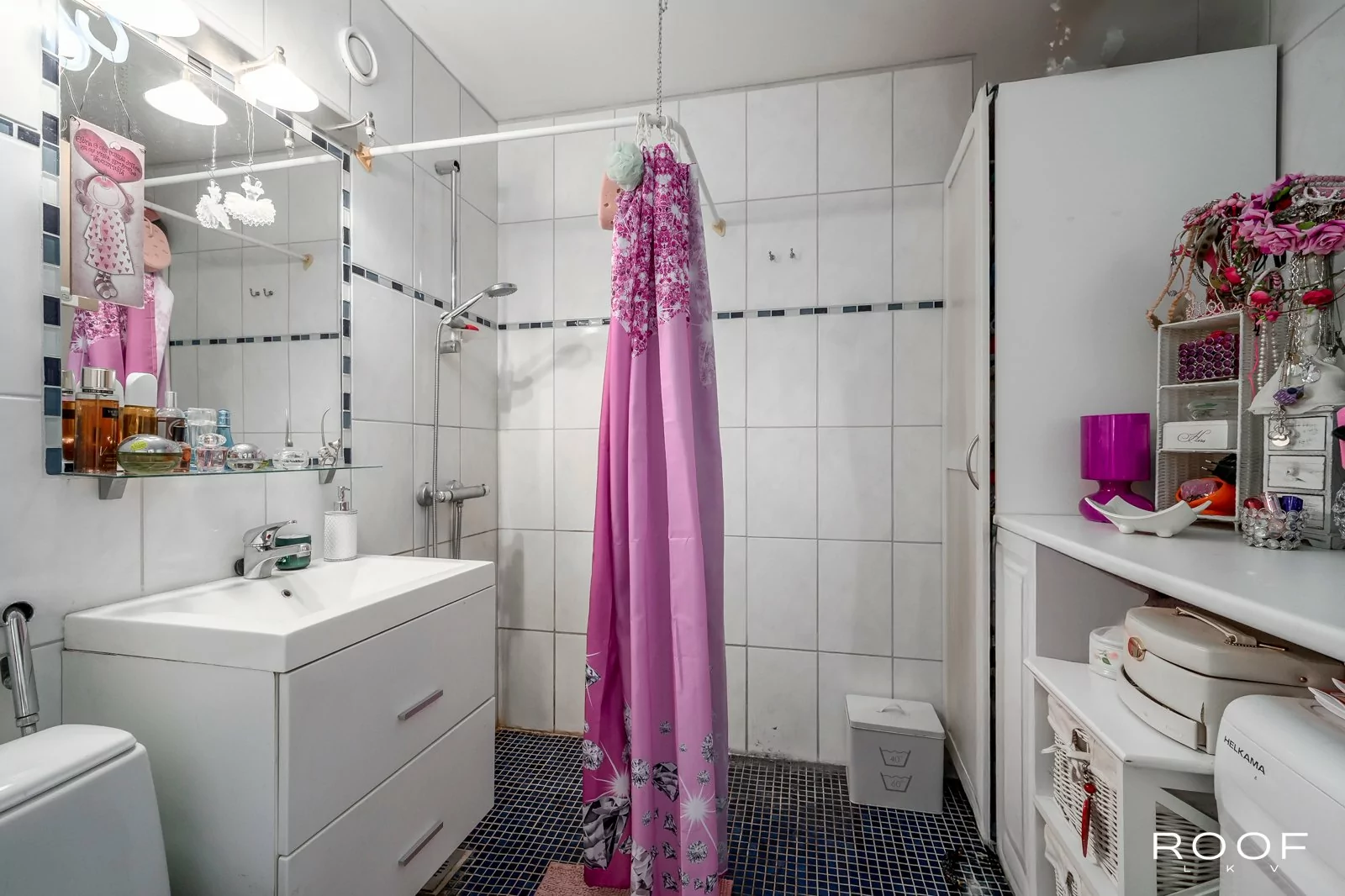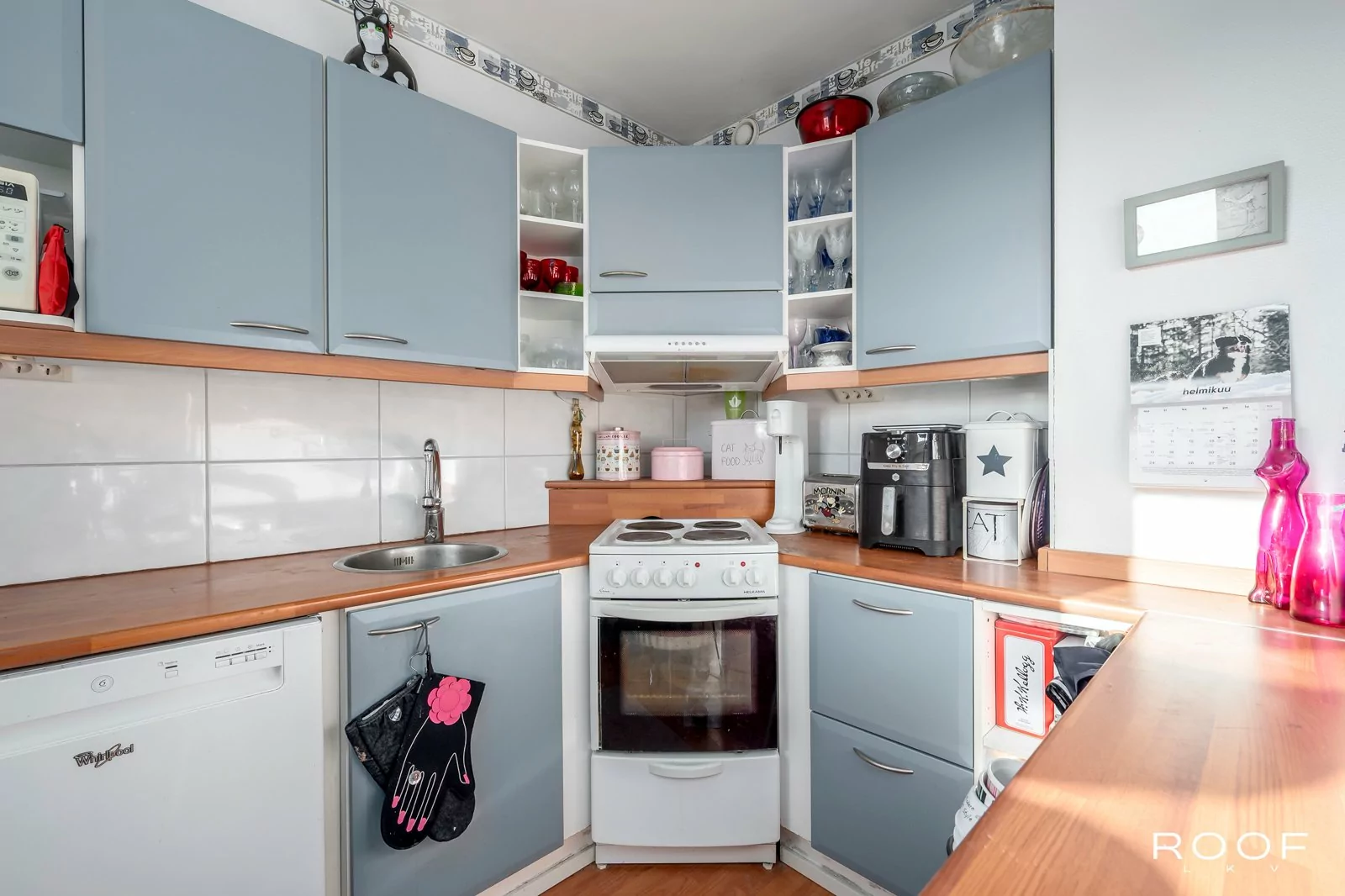 Asunnossa on erinomainen pohjaratkaisu: runsaasti kaappitilaa, siisti ja toimiva keittiö sekä rauhallinen makuuhuonenurkkaus. Lasitettu parveke tarjoaa mukavasti lisätilaa.