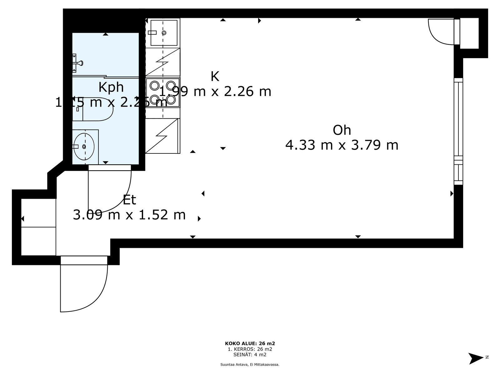 kerrostalo, 1h+kk (yhtiöjärjestyksen mukaan 1 h+kk)