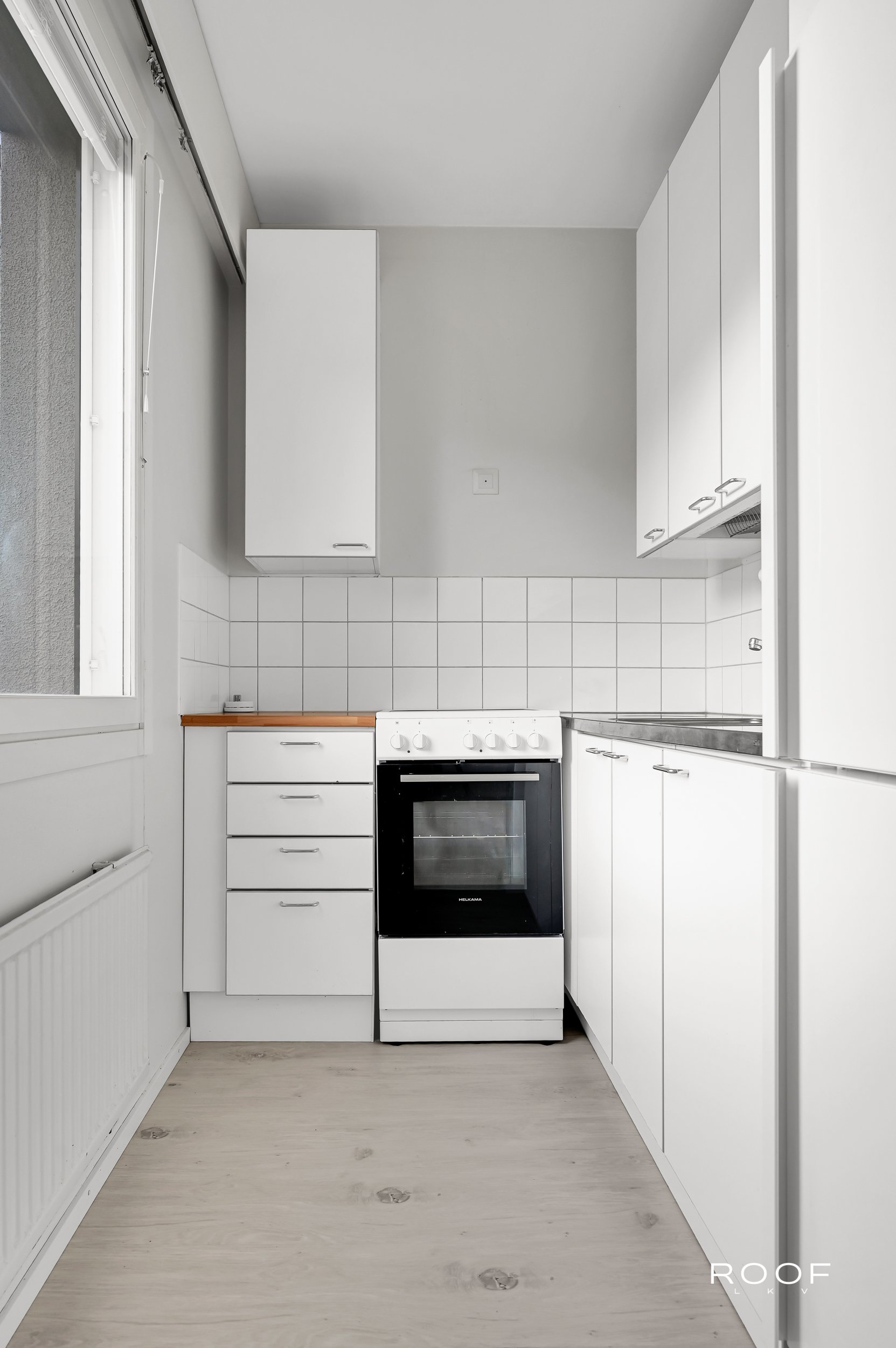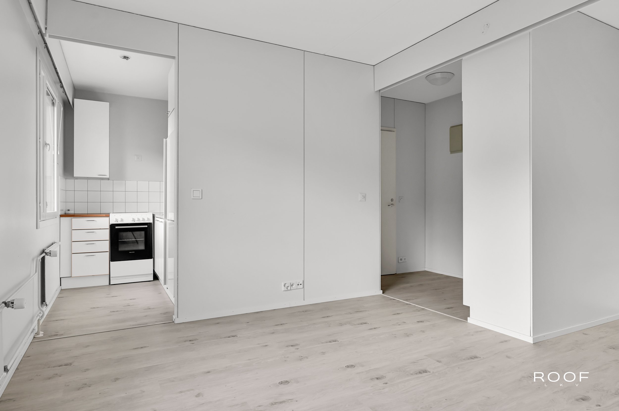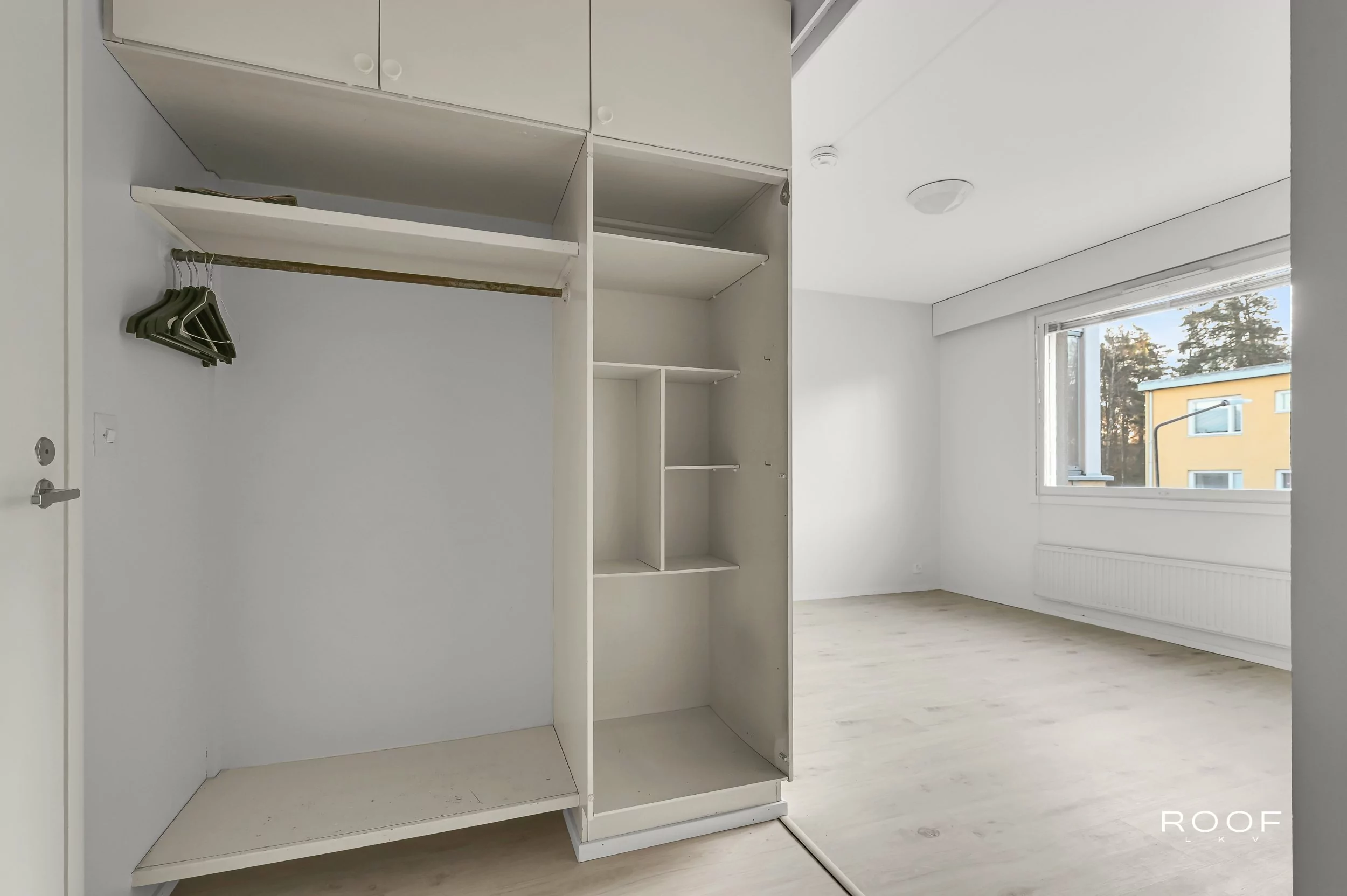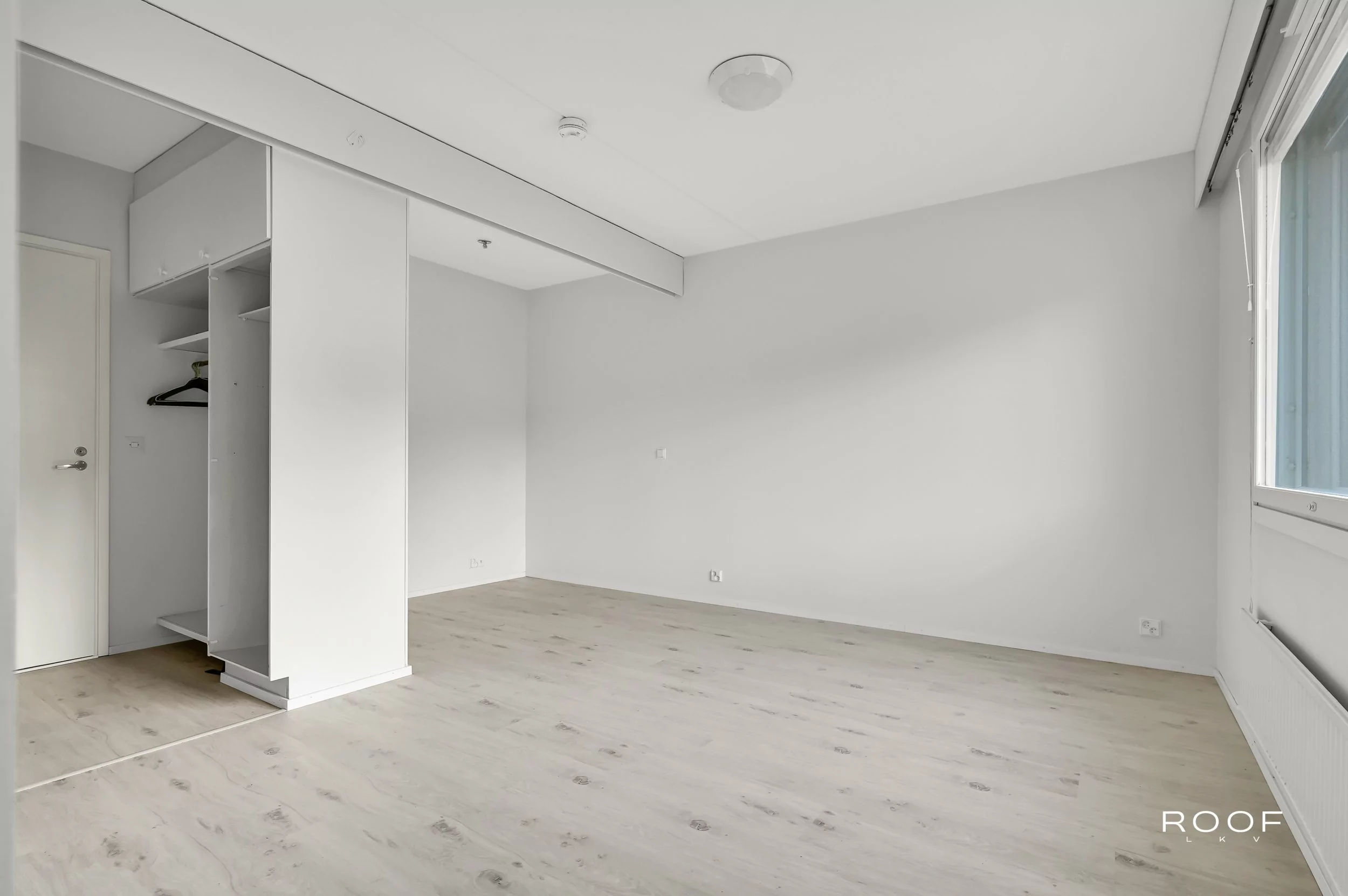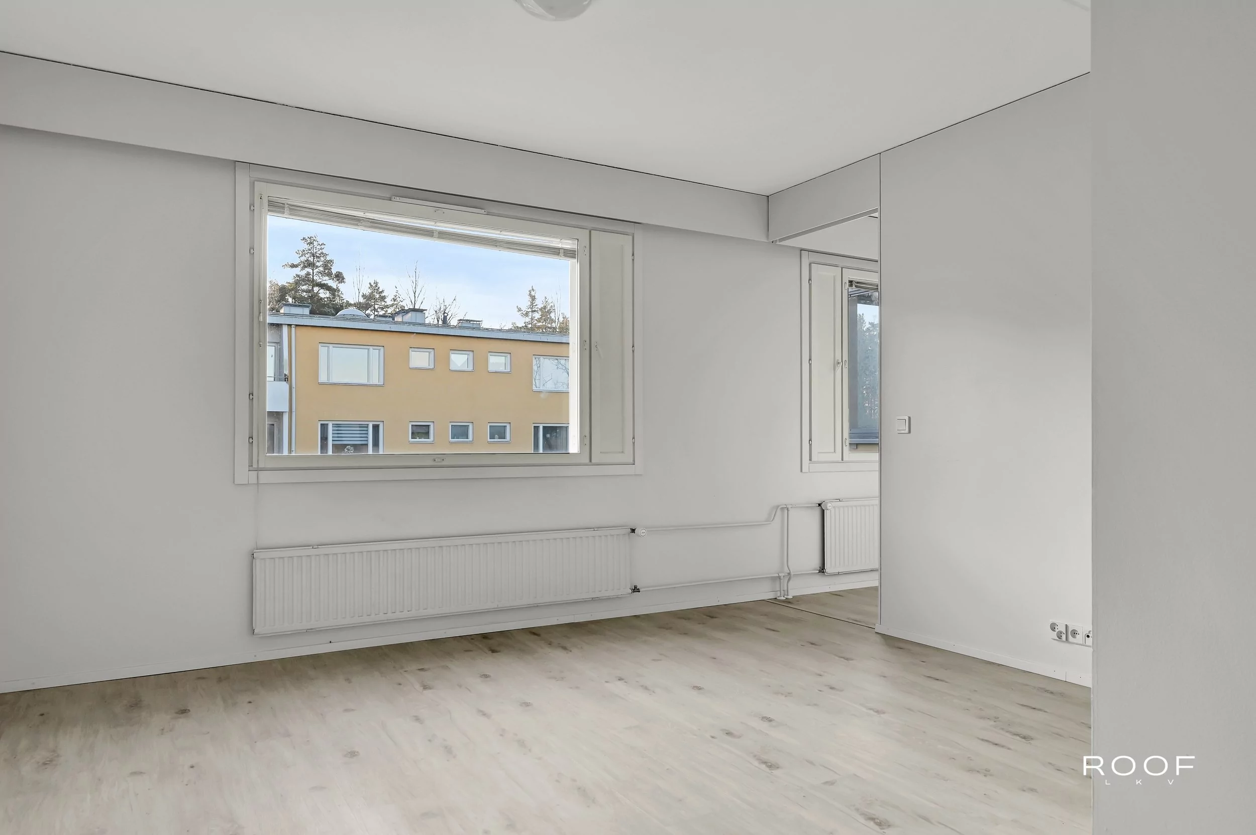 Asunnon pohjaratkaisu on toimiva ja valoisa. Laminaattilattiat ja maalatut seinät luovat modernin ilmeen, ja keittiöstä löytyy kaikki tarpeellinen, kuten jääkaappipakastin ja keraaminen liesi. Kylpyhuoneessa on pesukoneliitäntä, mikä tuo arkeen helppoutta.