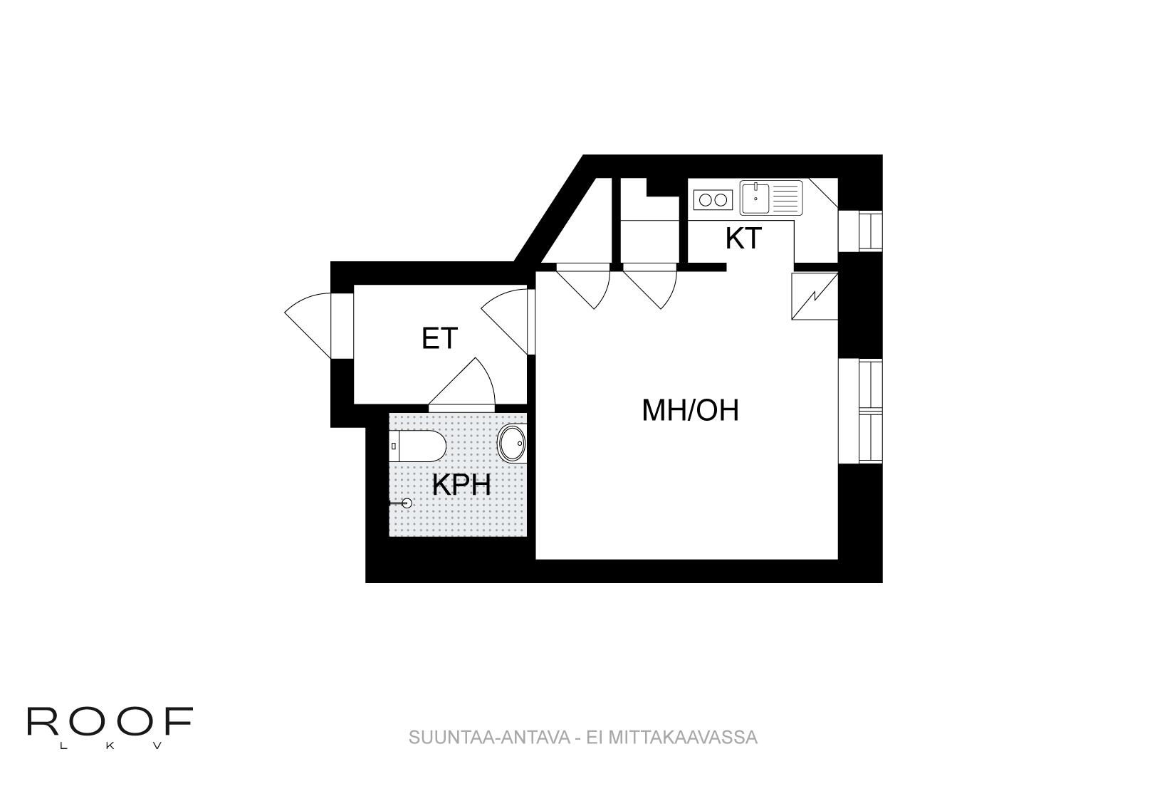kerrostalo, 1h+kk+kph (yhtiöjärjestyksen mukaan 1h+kh)