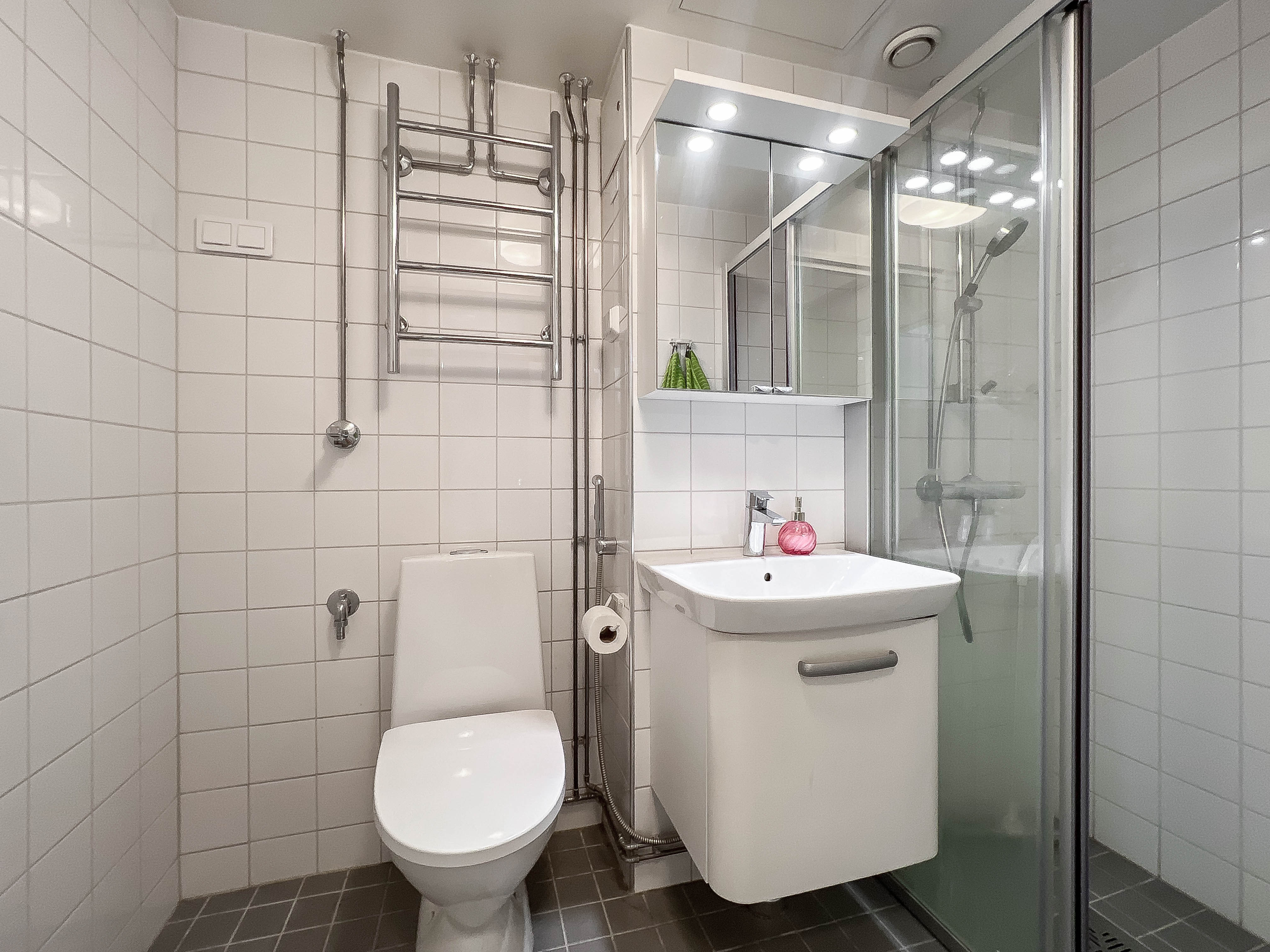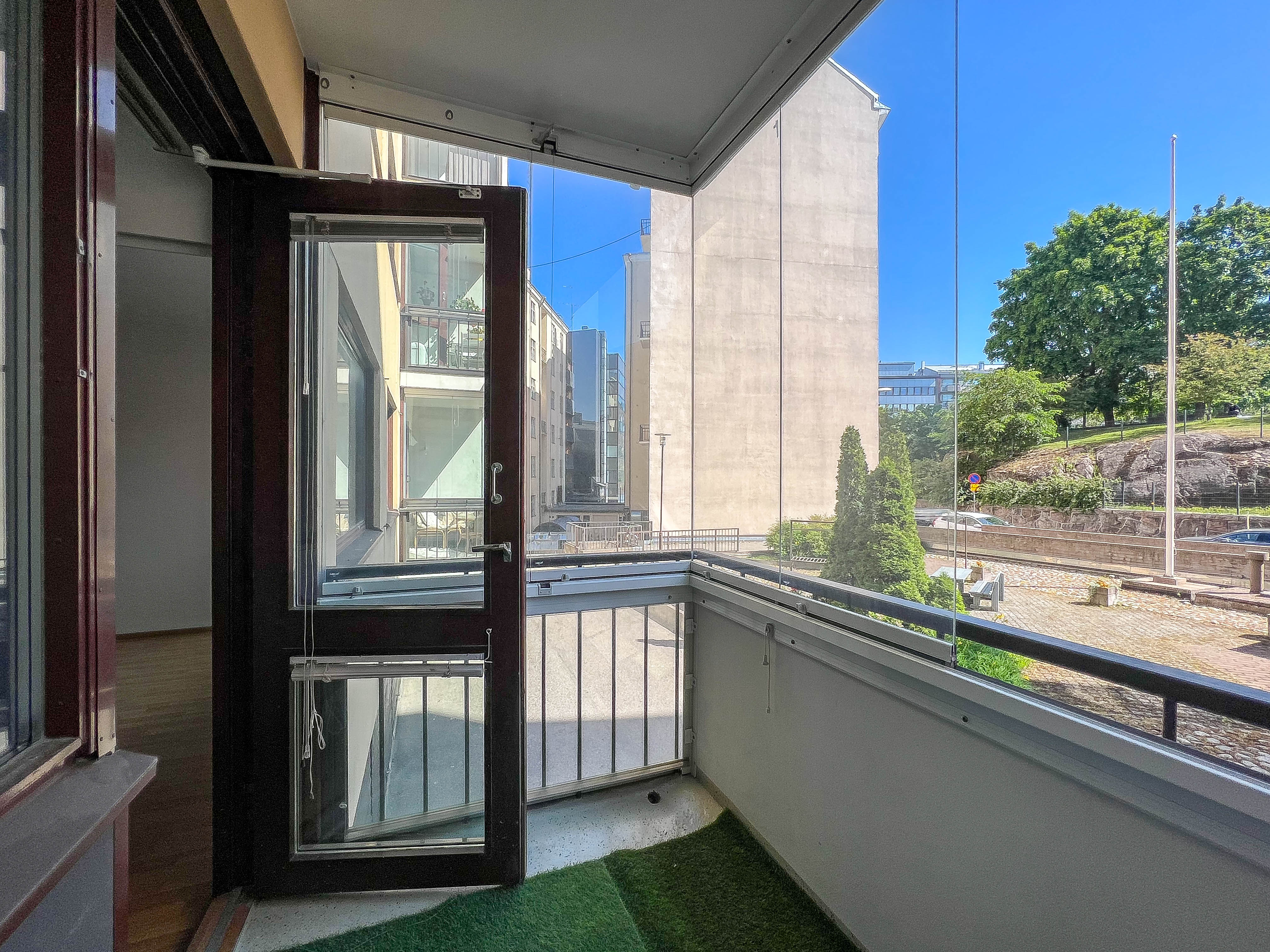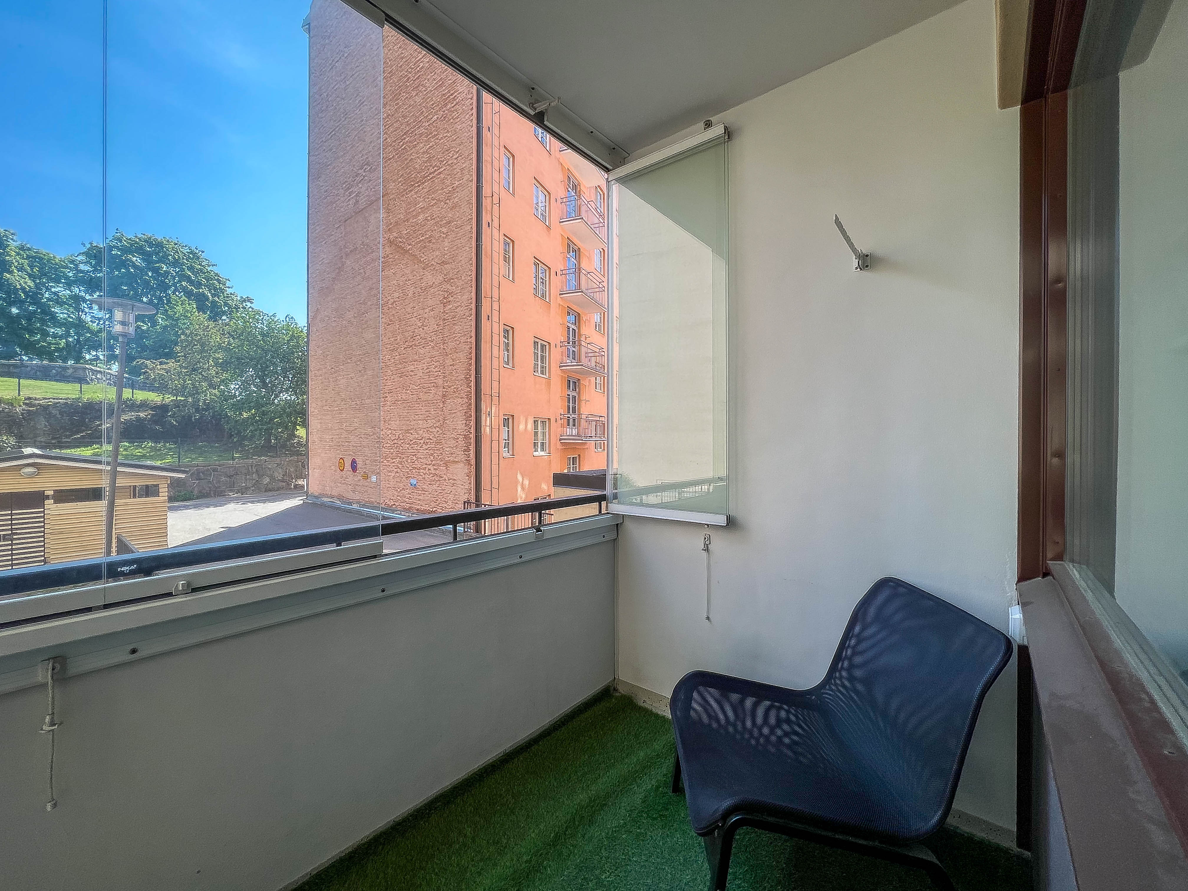 Tämä koti pitää sisällään toimivan ja avaran pohjaratkaisun. Tilavassa huoneessa on hyvin tilaa niin sängylle kuin oleskeluun. Ikkunallinen keittokomero on hyvänkokoinen ja siellä on mukavasti kaapistoja. Eteisestä on kulku laatoitettuun kylpyhuoneeseen, joka on varustettu pyykinpesukoneliitännällä. Kokonaisuuden kruunaa lasitettu parveke, joten säästä pystyt nauttimaan kotoa käsin. Tästä asunnosta loihdit helposti mieleisen kotisi!