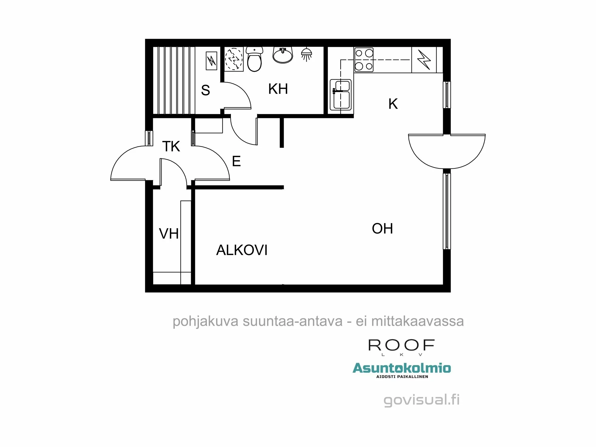 Huoneluku: 1h,k,kph/wc,s,vh,alkovi,var.