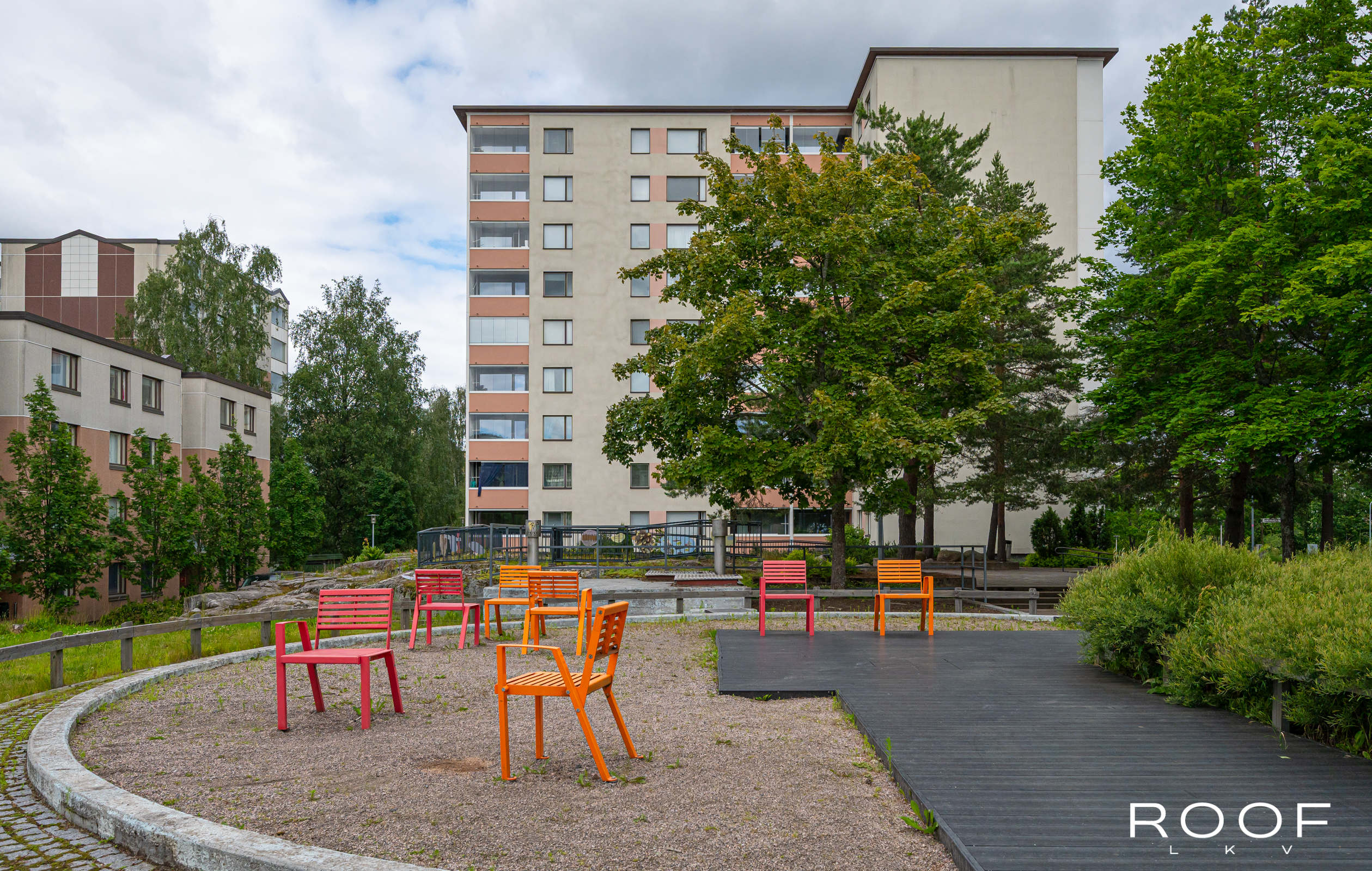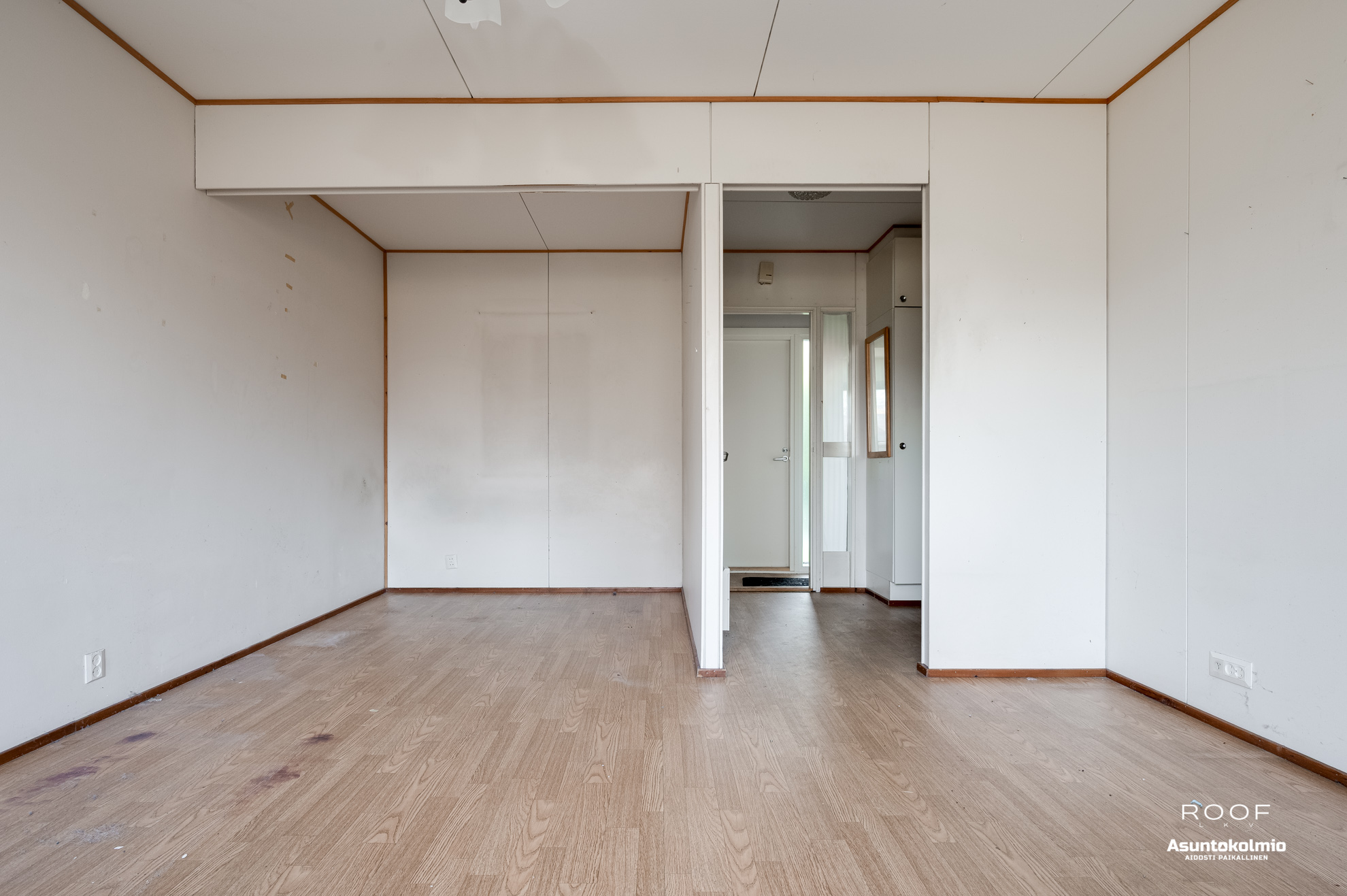 Tilava 37 m² yksiö on pohjaratkaisultaan toimiva kokonaisuus ja remontoimalla siitä saa viihtyisän. Asunnossa on yhtenäinen olohuone-keittiö sekä mukavan kokoinen makuualkovi. Eteisen yhteydessä on vaatehuone ja kylpyhuoneen yhteydessä wc ja oma sauna. Olohuoneesta on näkymät ja kulku isolle takapihalle, joka on juuri kunnostettu uudelle nurmelle (ei näy esittelykuvissa).