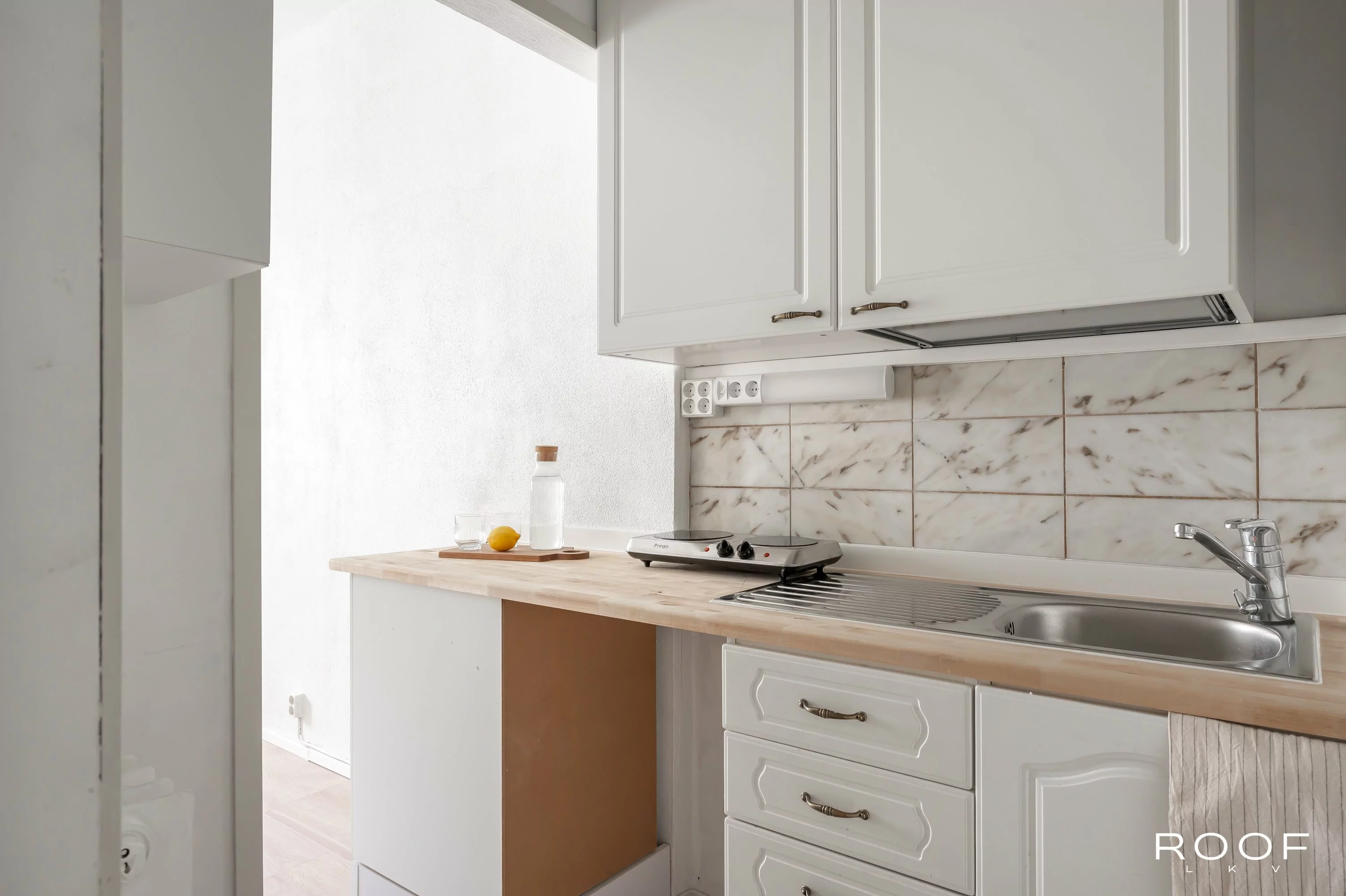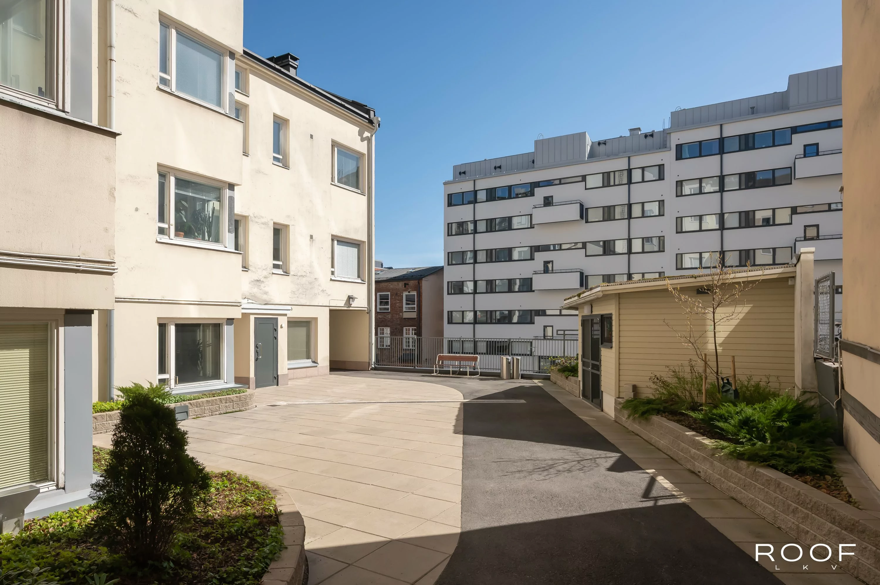 Tehokas yksiö sisäpihan rauhassa Helsingin Sörnäisissä.