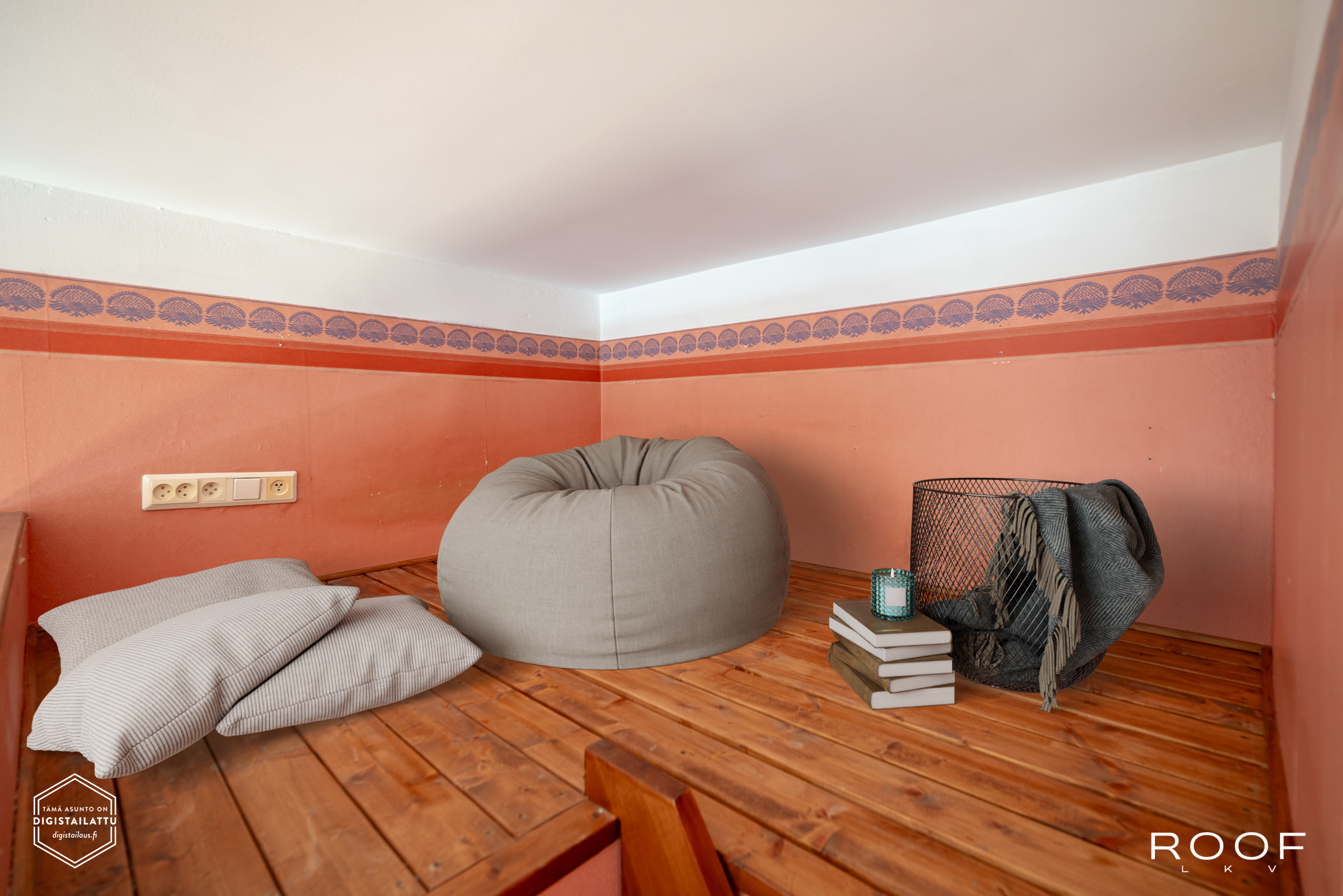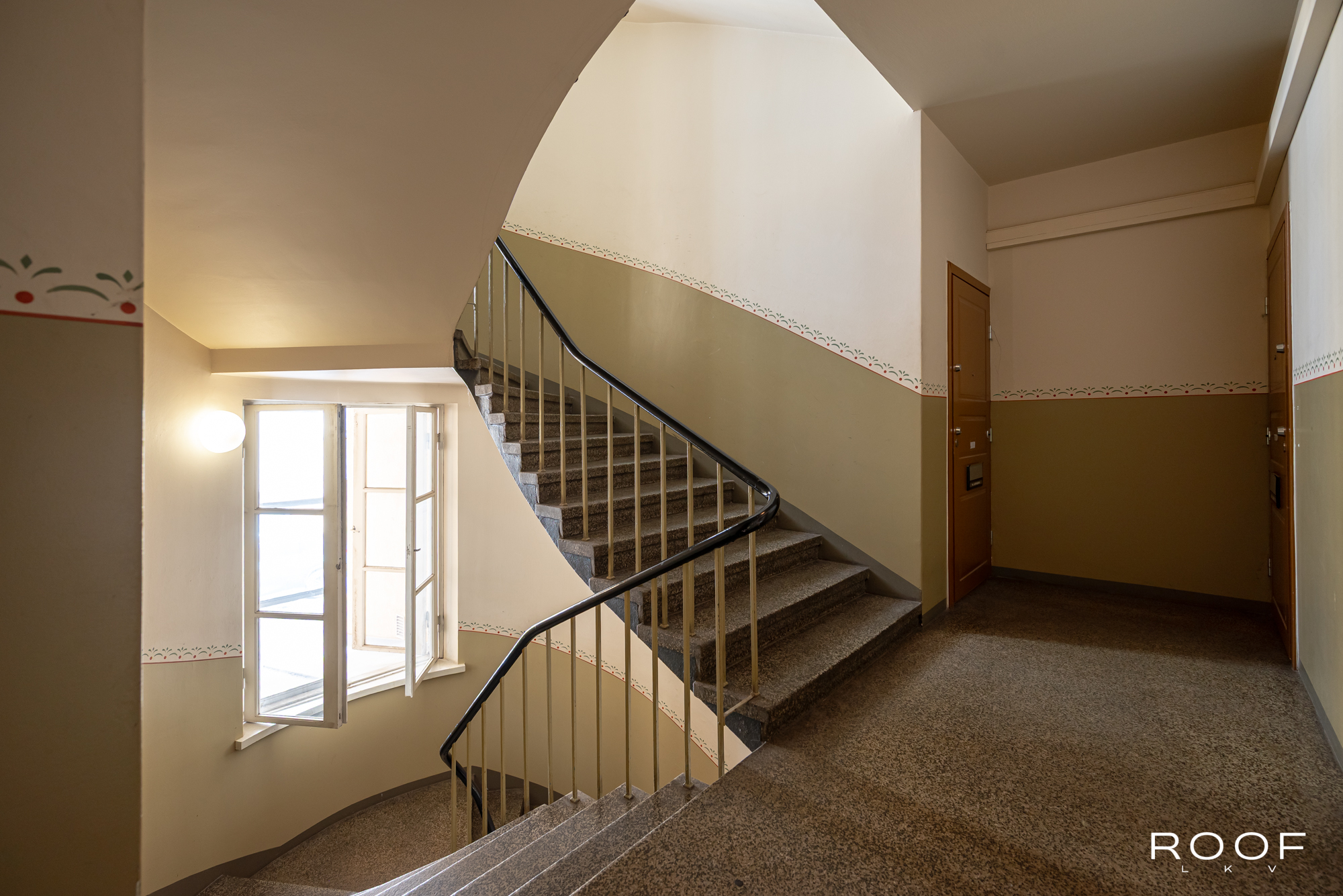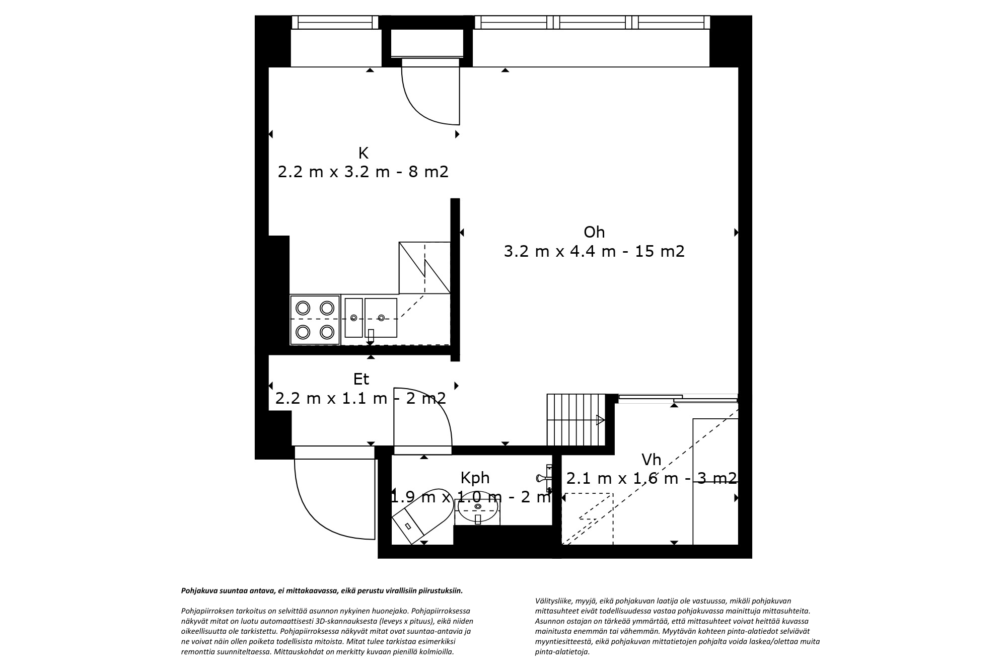 Asunto koostuu keittiöstä, olohuoneesta, parvesta, vaatehuoneesta ja kylpyhuoneesta. Ikkunat suuntaavat rauhalliselle sisäpihalle päin, joten kadun äänet eivät juurikaan kantaudu sisälle. Taloyhtiö seisoo omalla tontilla, ja remontteja on teetetty säännöllisesti. Linjasaneeraus on tehty 2004.