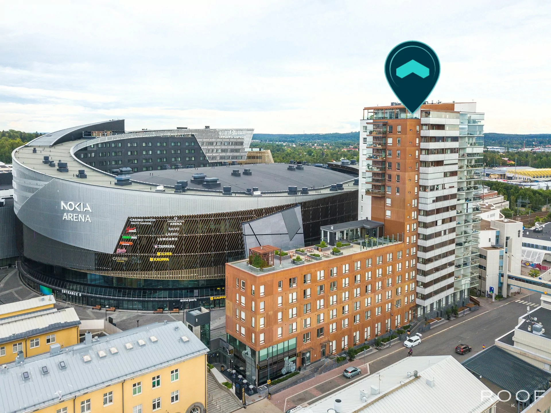 Asunnon ranskalainen parveke on Nokia Arenan suuntaan itään ja ikkunat etelään päin. Eteisen yhteydessä on paljon kaappitilaa ja kylpyhuoneessa hyvin tilaa k...