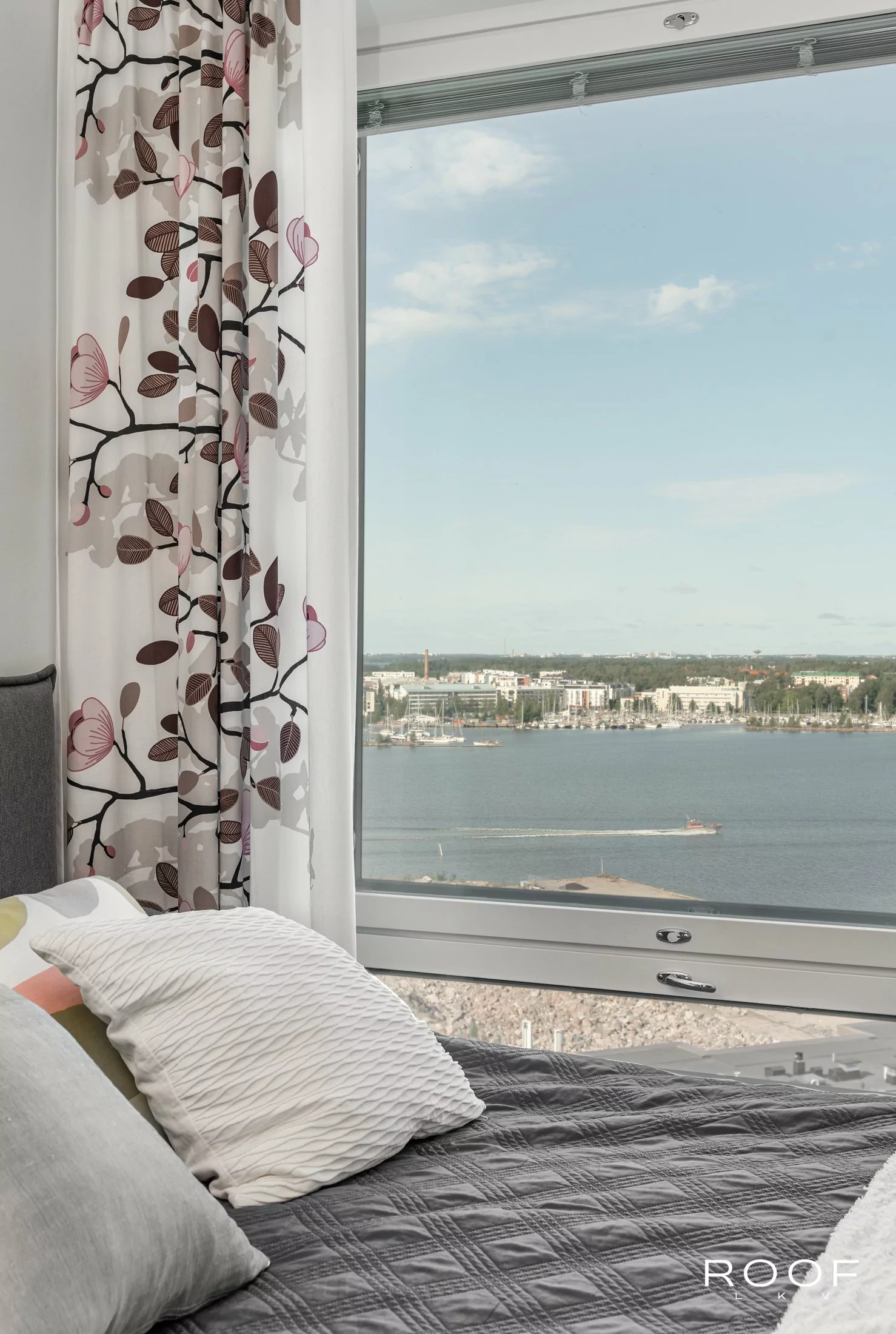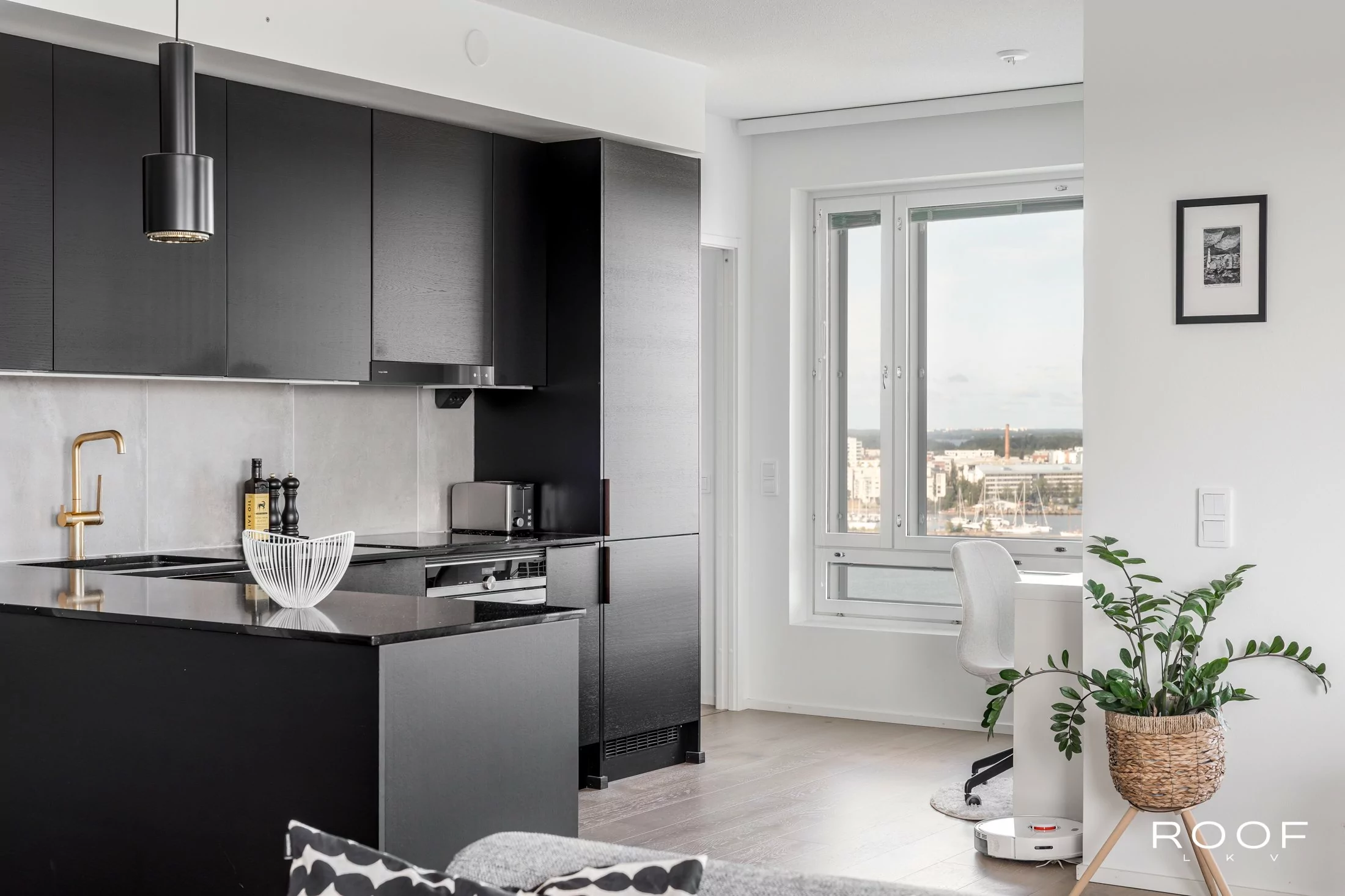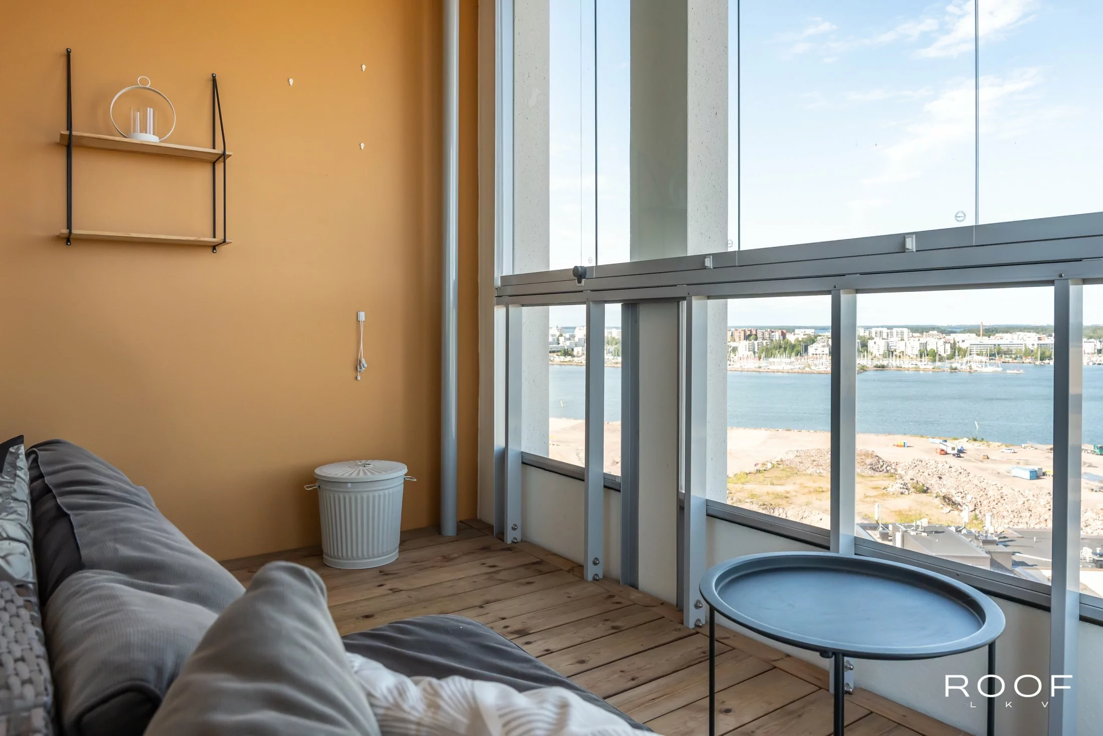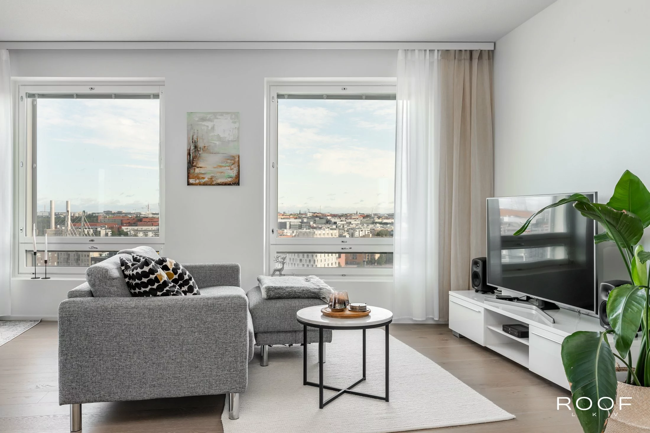 Tervetuloa asumaan korkealle tänne kattojen yläpuolelle! Tämä Jätkäsaaren 14. kerroksessa sijaitseva upea kaksio, joka on muunnettavissa myös kolmioksi. Asunto tarjoaa poikkeukselliset näkymät, jotka tekevät vaikutuksen joka päivä. Asunnosta avautuu upeat meri maisemat ja ikkunat kehystävät henkeäsalpaavaa maisemaa, joka vaihtuu vuodenaikojen mukaan ja tuo luonnon osaksi kotia.