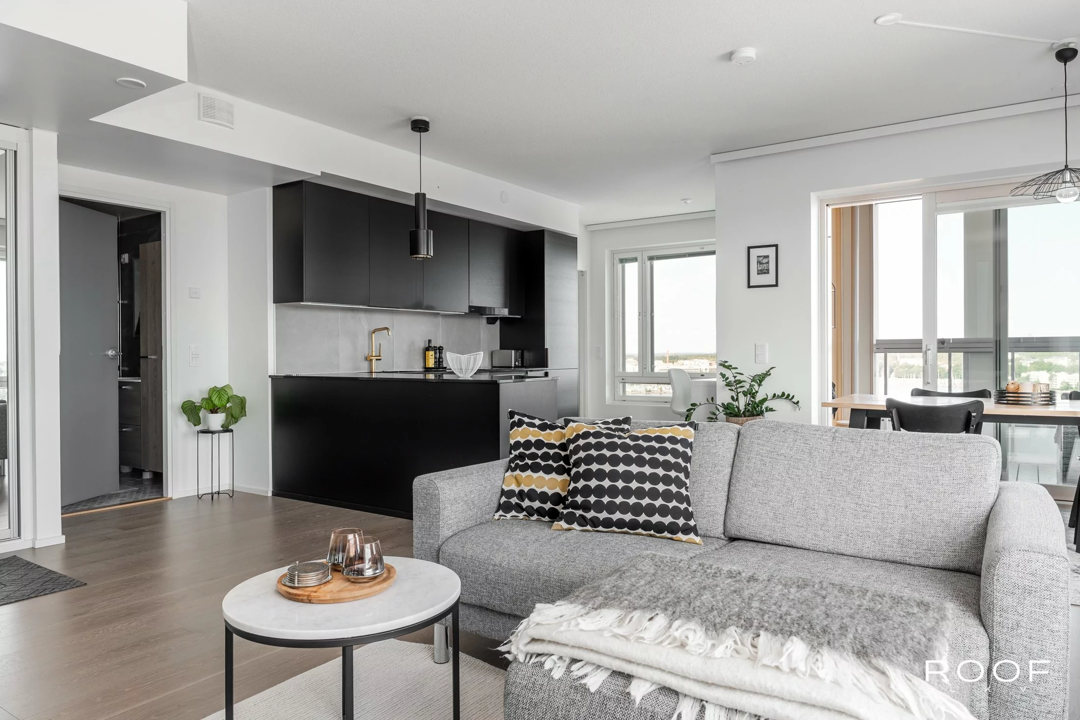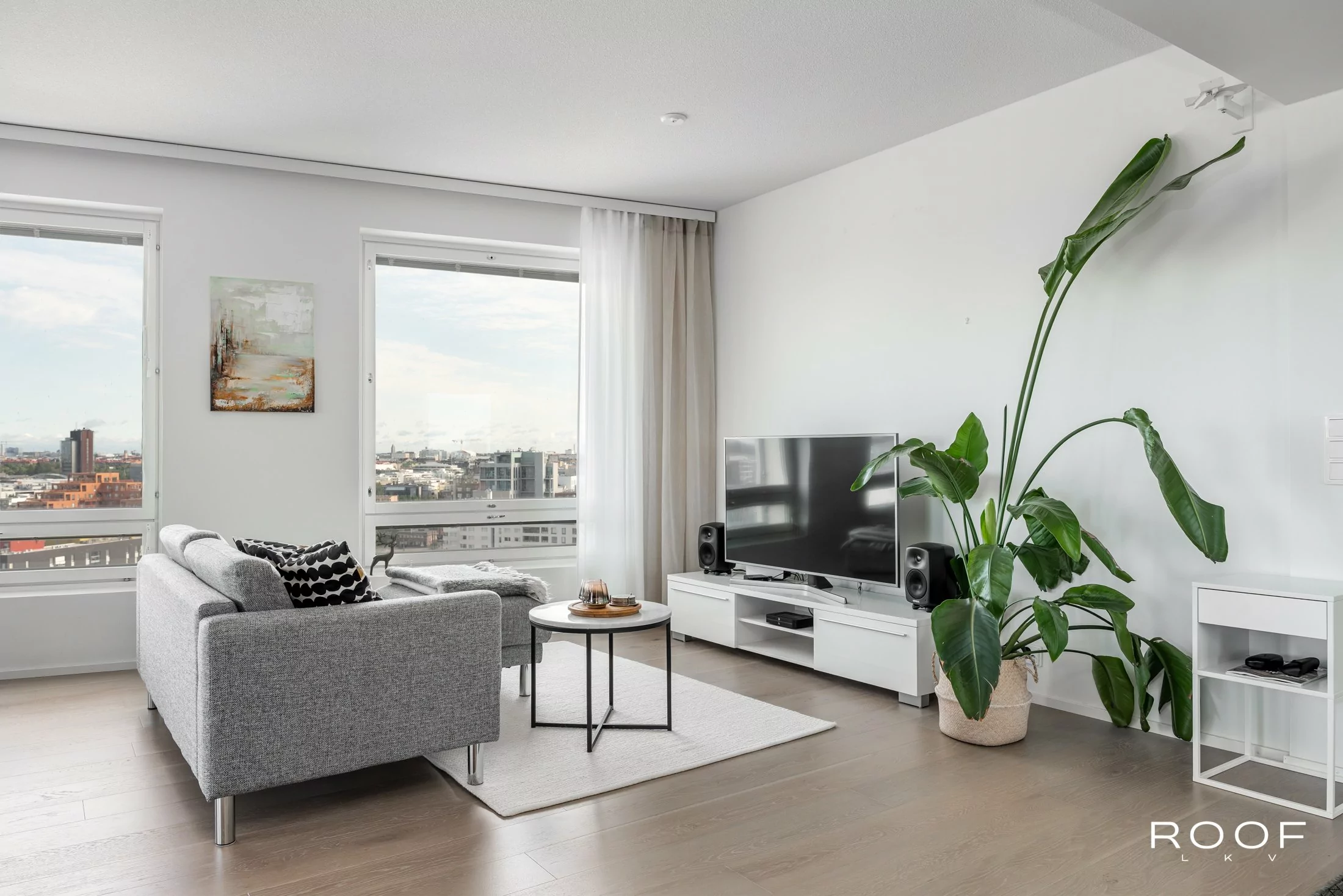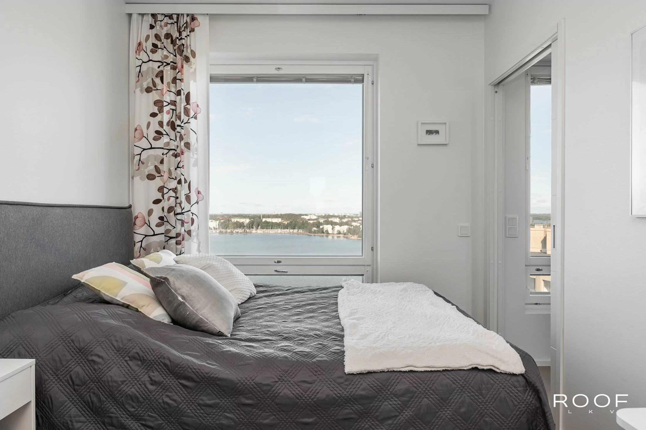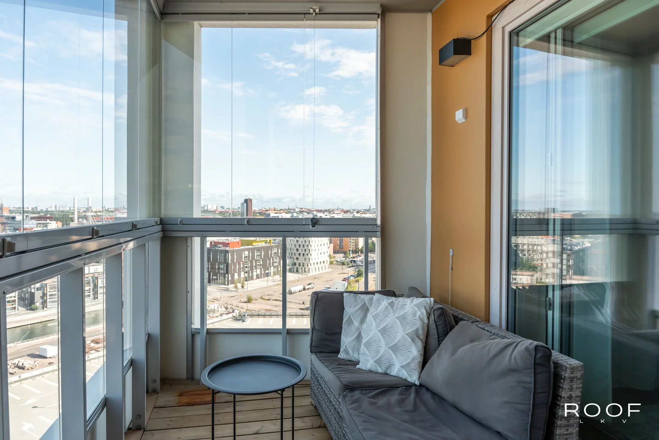 Tervetuloa asumaan korkealle tänne kattojen yläpuolelle! Tämä Jätkäsaaren 14. kerroksessa sijaitseva upea kaksio, joka on muunnettavissa myös kolmioksi. Asunto tarjoaa poikkeukselliset näkymät, jotka tekevät vaikutuksen joka päivä. Asunnosta avautuu upeat meri maisemat ja ikkunat kehystävät henkeäsalpaavaa maisemaa, joka vaihtuu vuodenaikojen mukaan ja tuo luonnon osaksi kotia.
