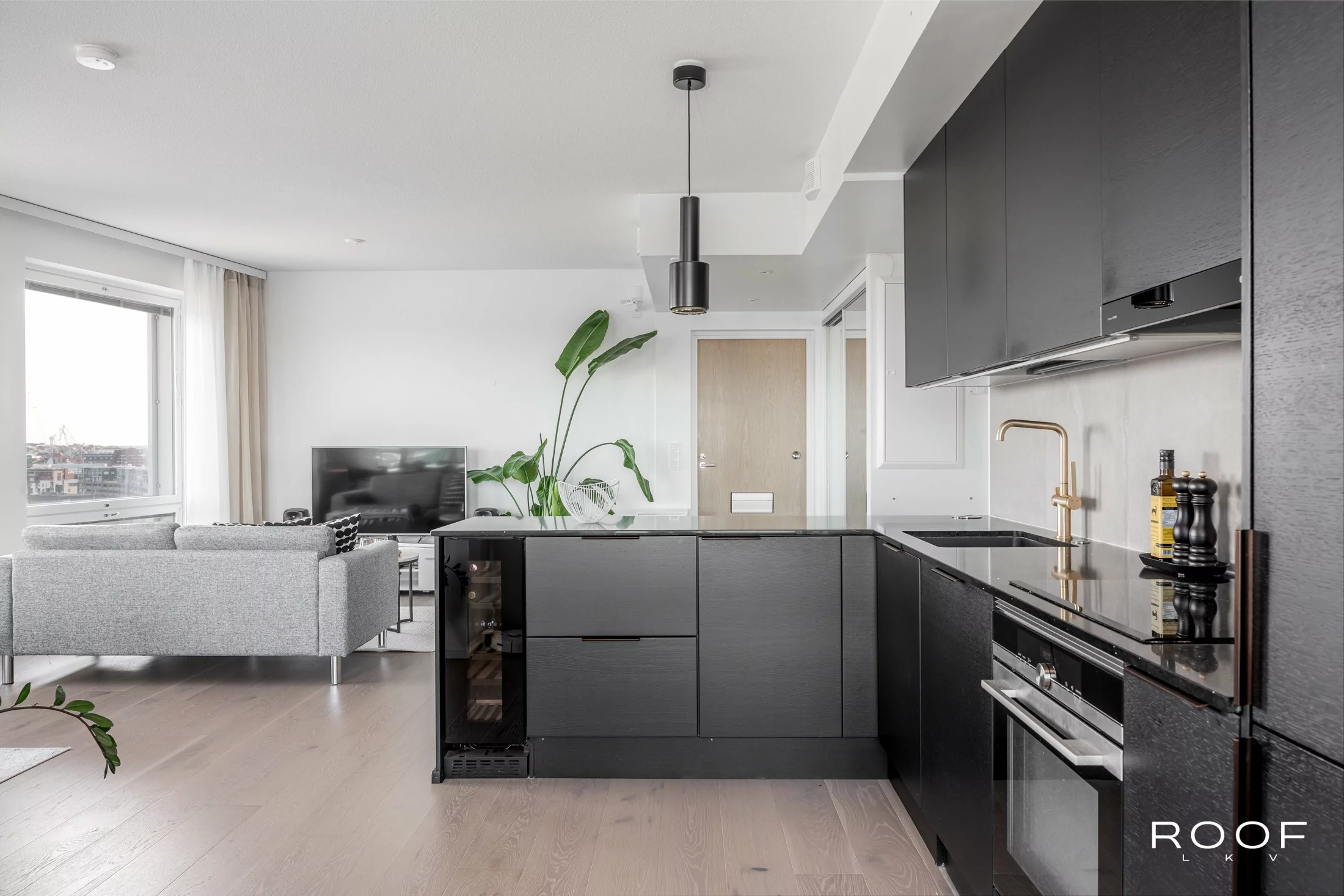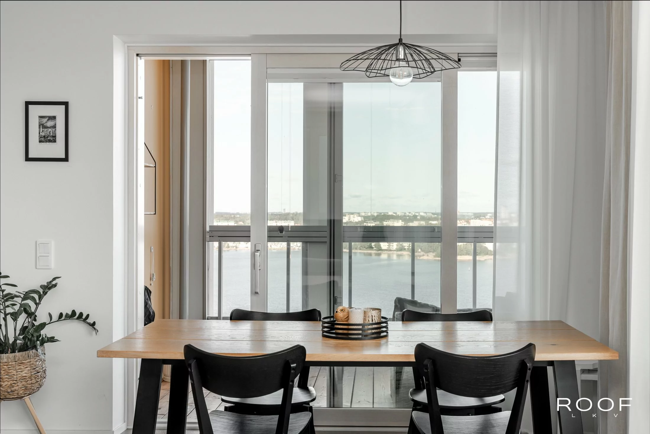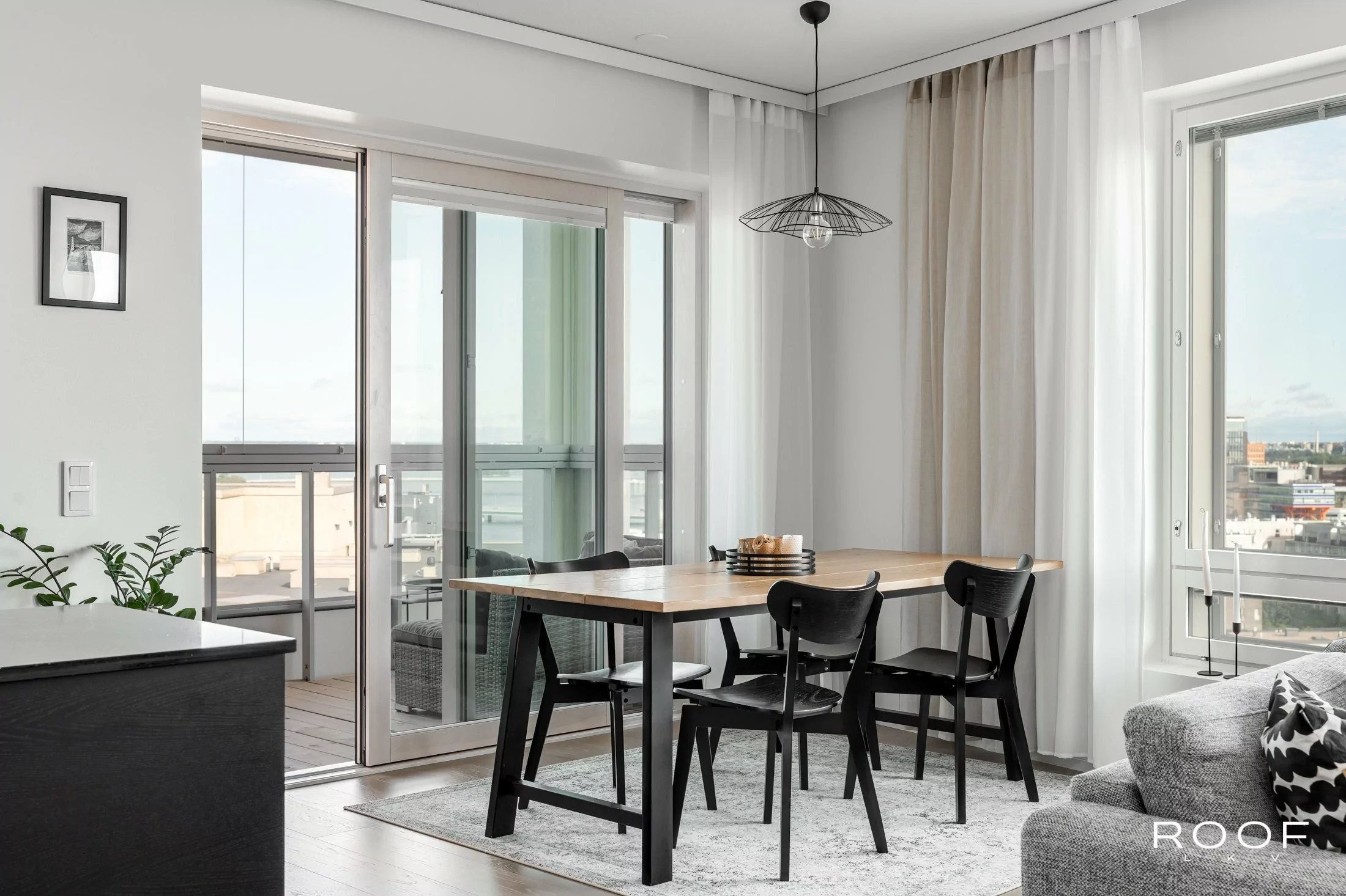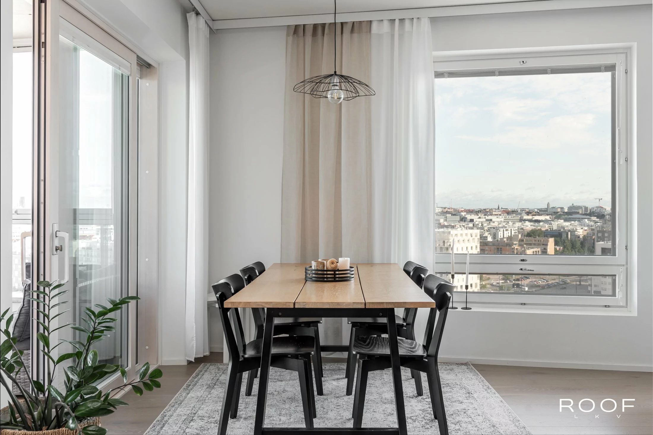 Tervetuloa asumaan korkealle tänne kattojen yläpuolelle! Tämä Jätkäsaaren 14. kerroksessa sijaitseva upea kaksio, joka on muunnettavissa myös kolmioksi. Asunto tarjoaa poikkeukselliset näkymät, jotka tekevät vaikutuksen joka päivä. Asunnosta avautuu upeat meri maisemat ja ikkunat kehystävät henkeäsalpaavaa maisemaa, joka vaihtuu vuodenaikojen mukaan ja tuo luonnon osaksi kotia.