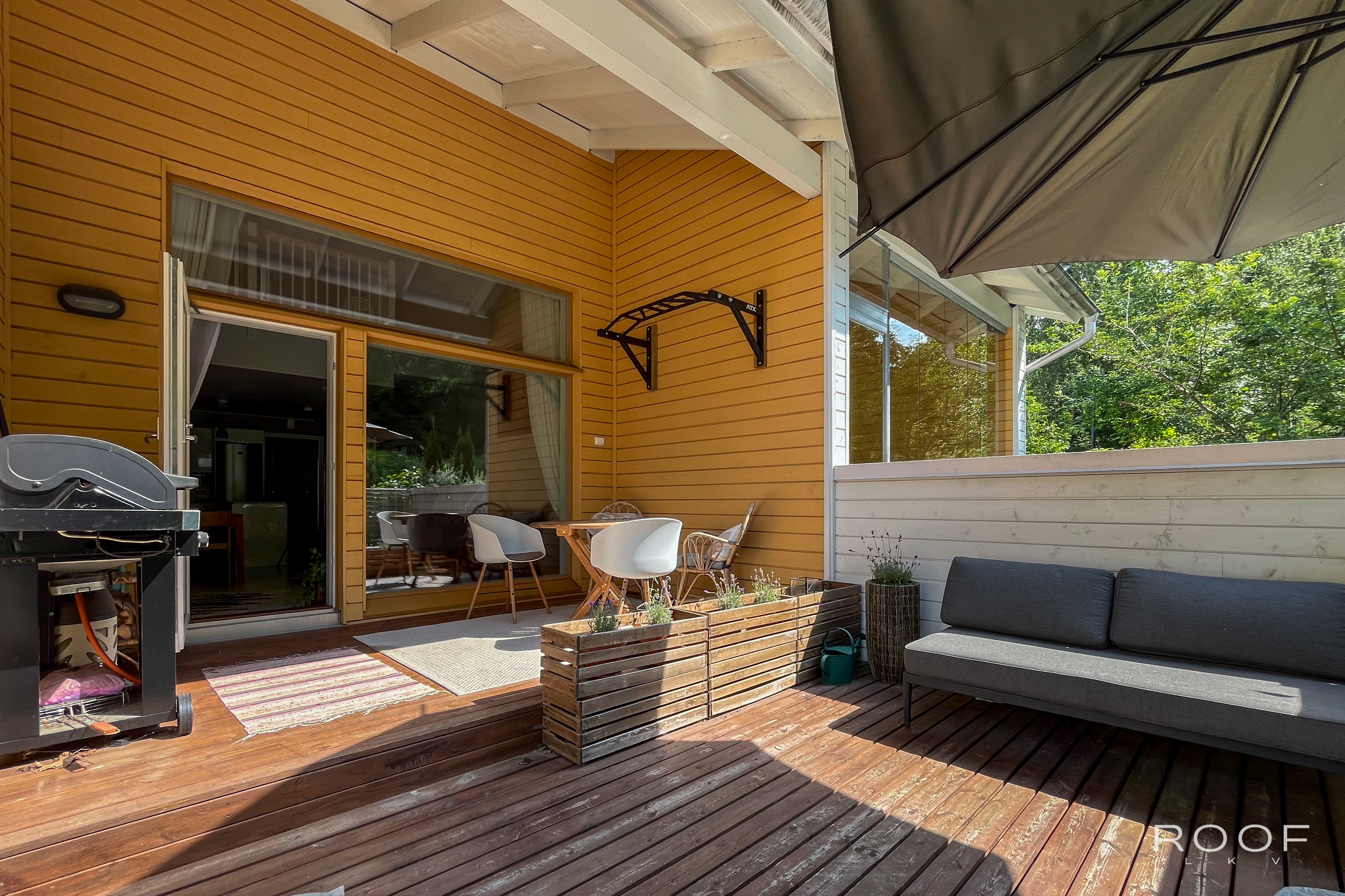 Valoisa ja hyvin pidetty rivitalohuoneisto kahdessa tasossa rauhallisella pientaloaluella Espoon Saunalahdessa. Asunnossa on tilavat huoneet ja toimiva pohjaratkaisu. Olohuoneesta kulku isolle terassille ja omalle vehreälle pihalle. Yläkerrassa on yksi tilavaa makuuhuone, parvi ja erillinen WC. Tämä asunto on myös lunastanut tonttiosuuden.