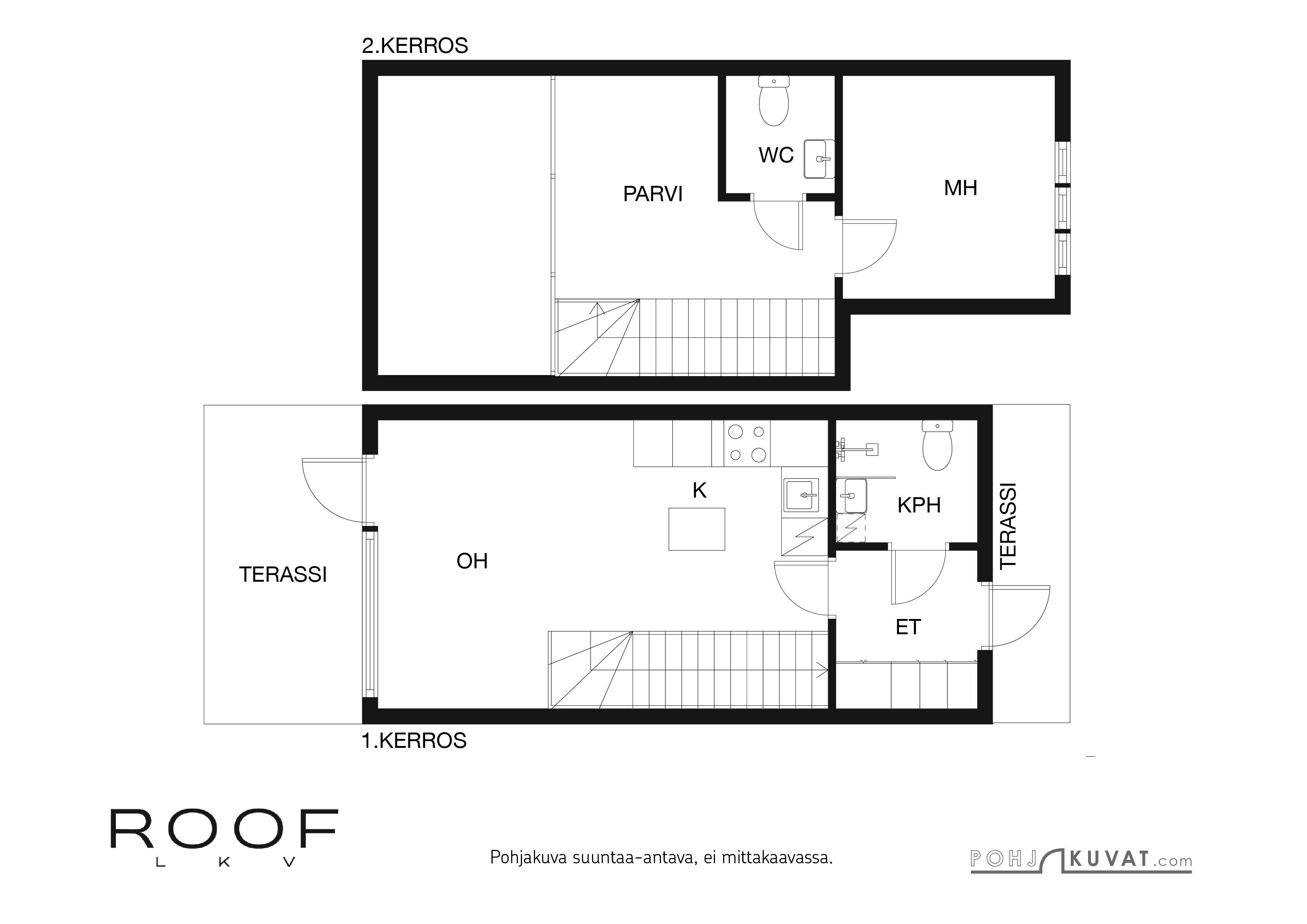 rivitalo, 2-3h+avokeittiö+wc+kph-wc+et+ katettu terassi