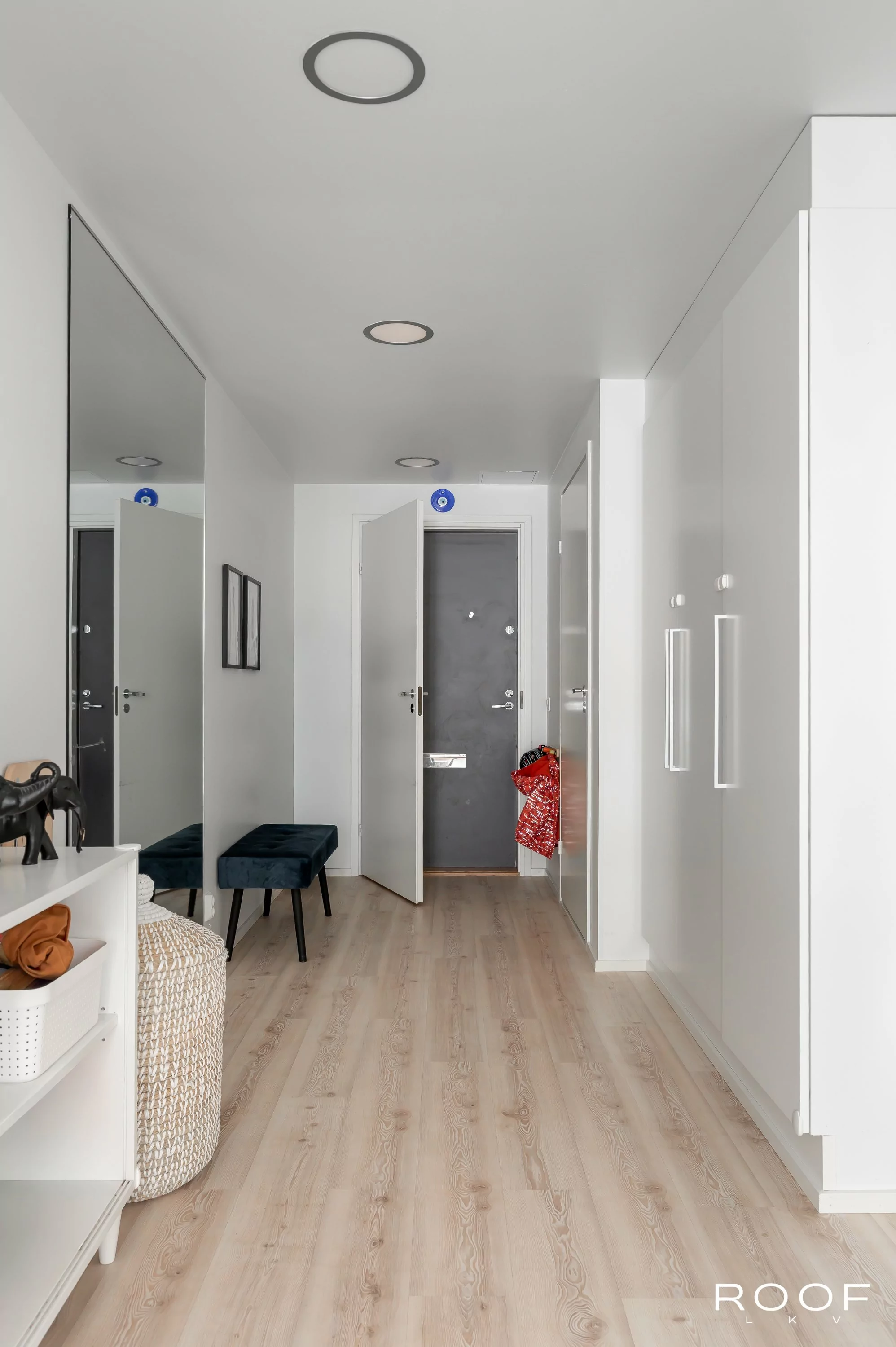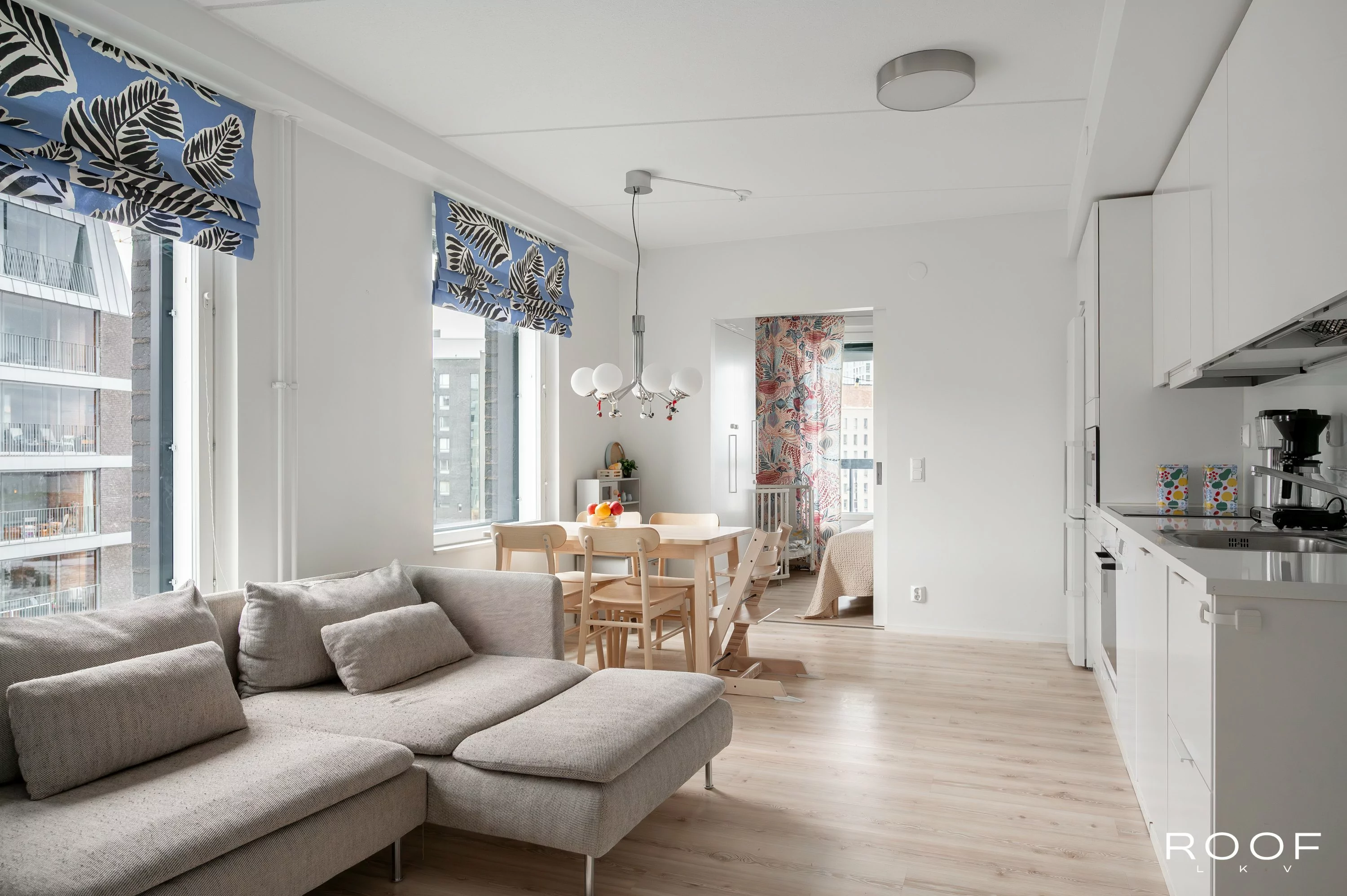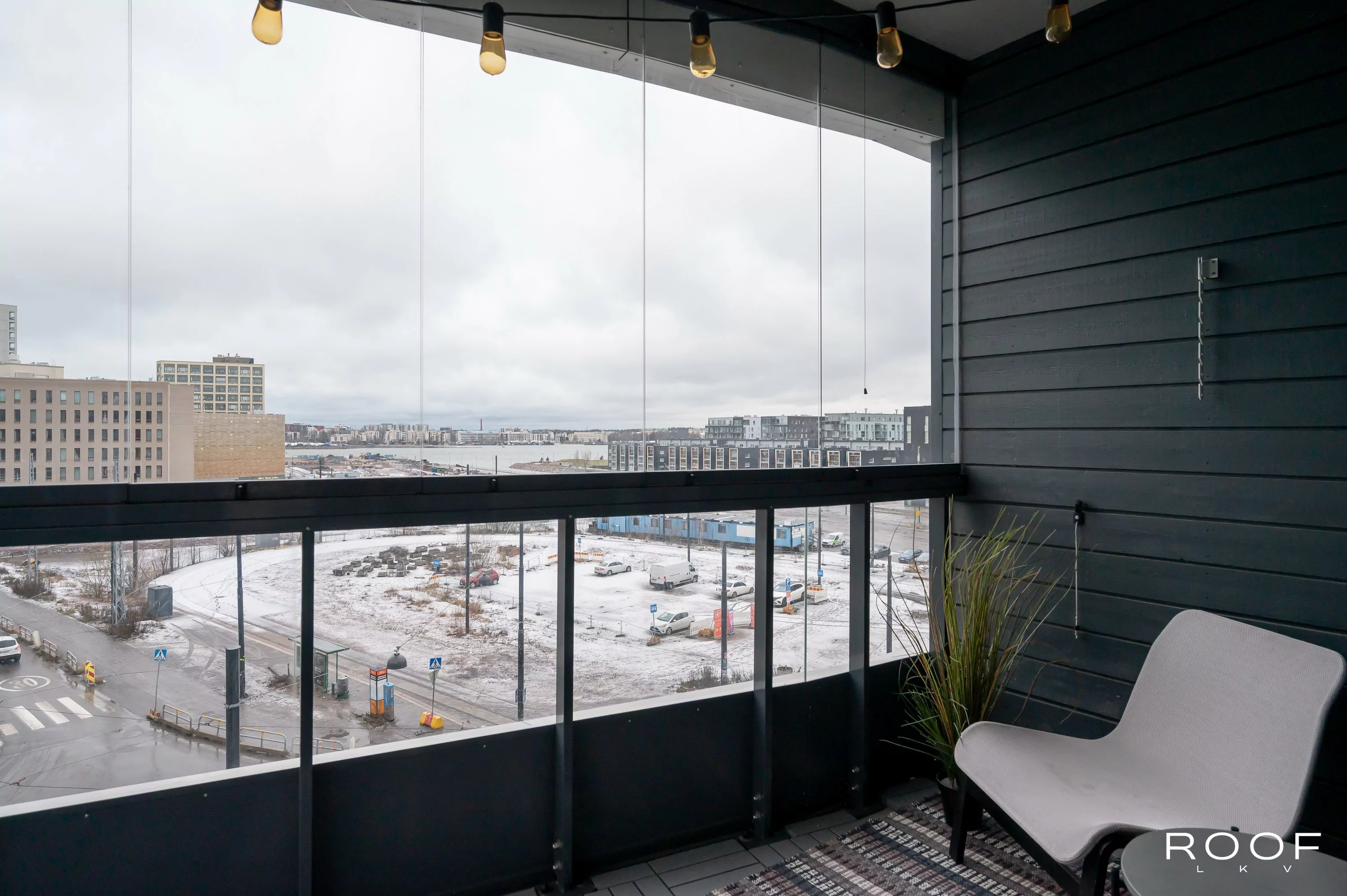 Kodin sydän on avara olohuone–keittiö-yhdistelmä. Makuuhuoneet sijaitsevat tilan eri puolilla, tarjoten rauhaa ja yksityisyyttä niin perheen eri jäsenille kuin etätyöskentelyynkin. Toisesta makuuhuoneesta on käynti asunnon lasitetulle parvekkeelle, josta avautuvat kauniit merelliset näkymät.