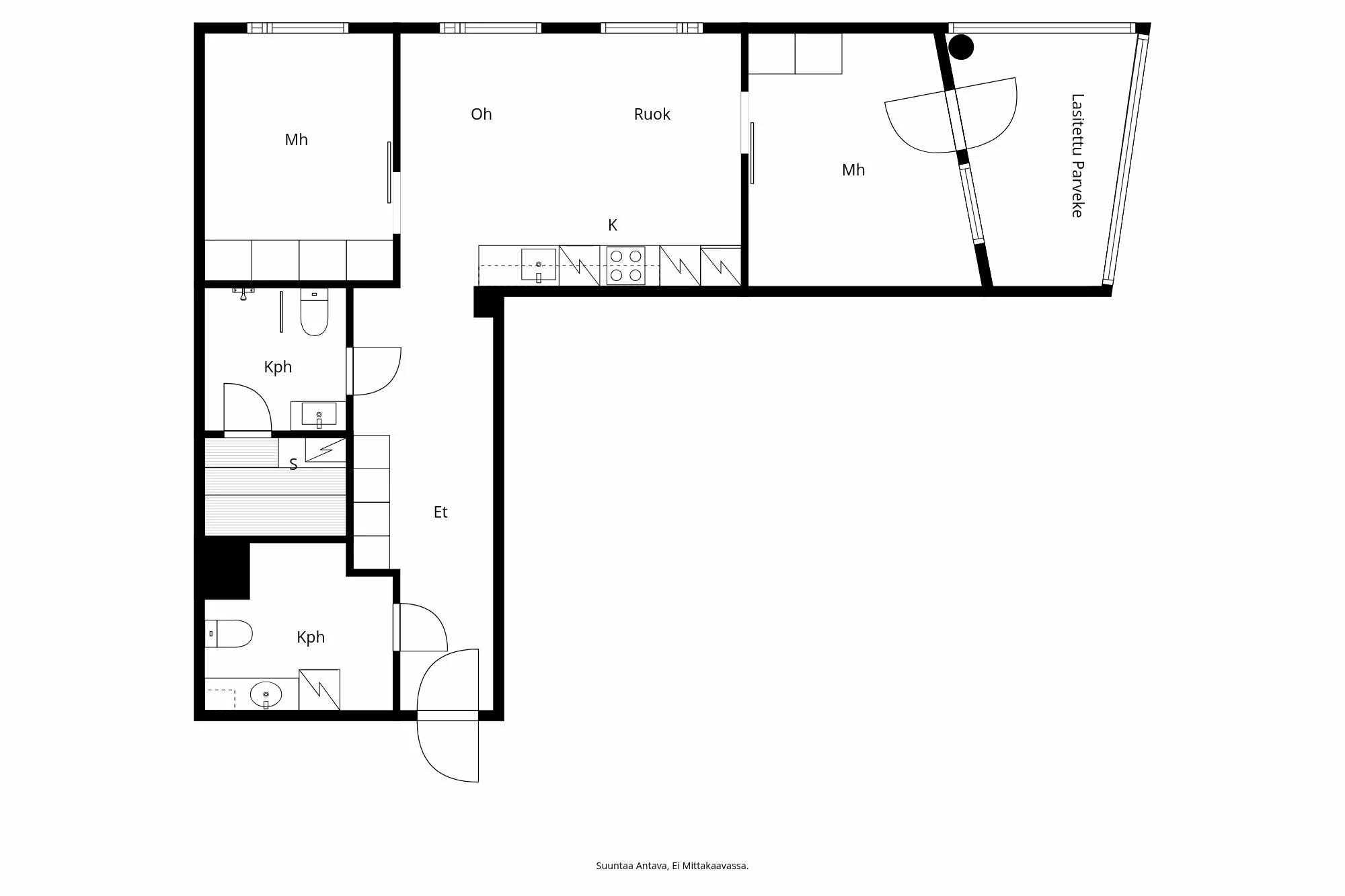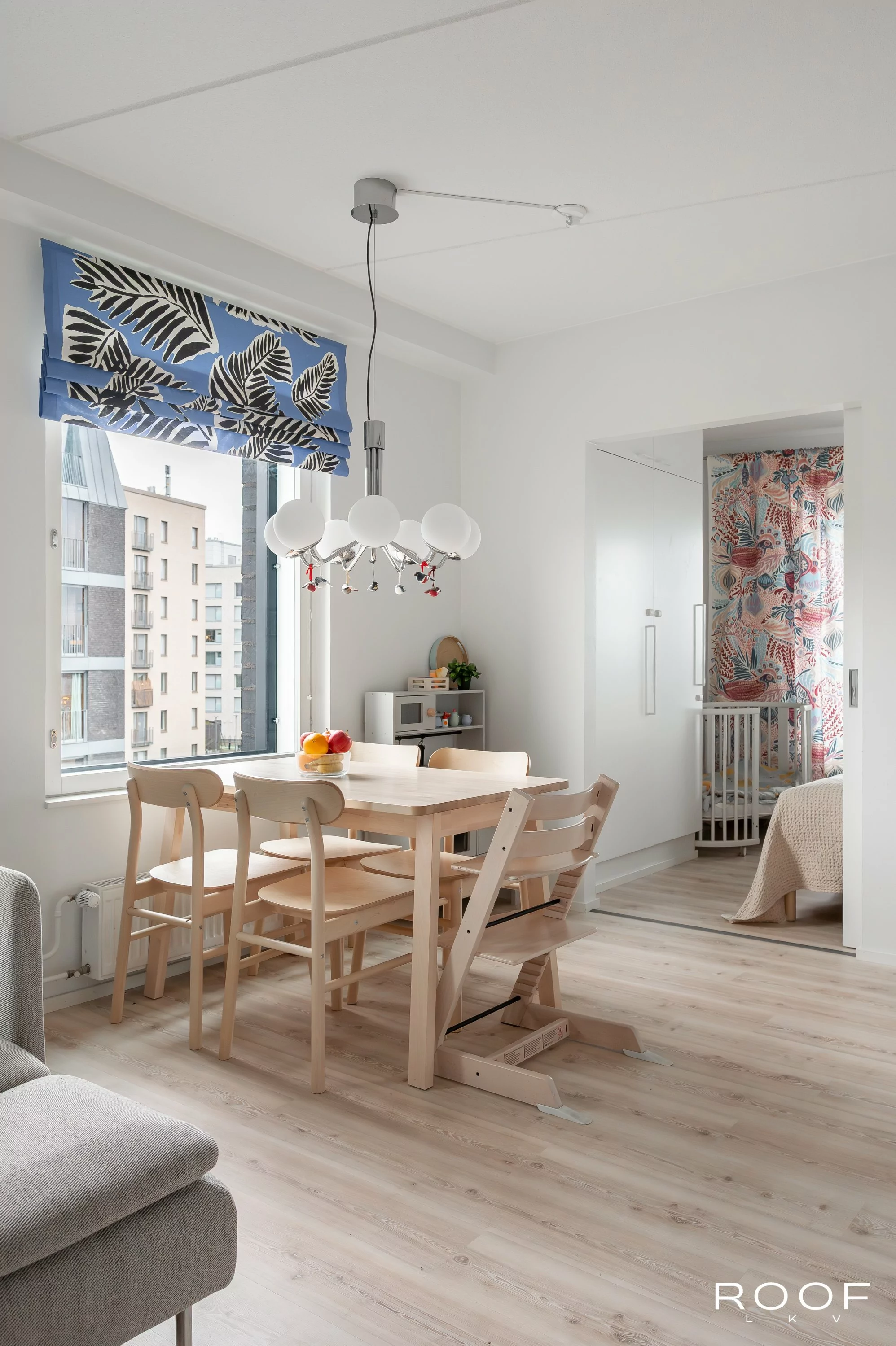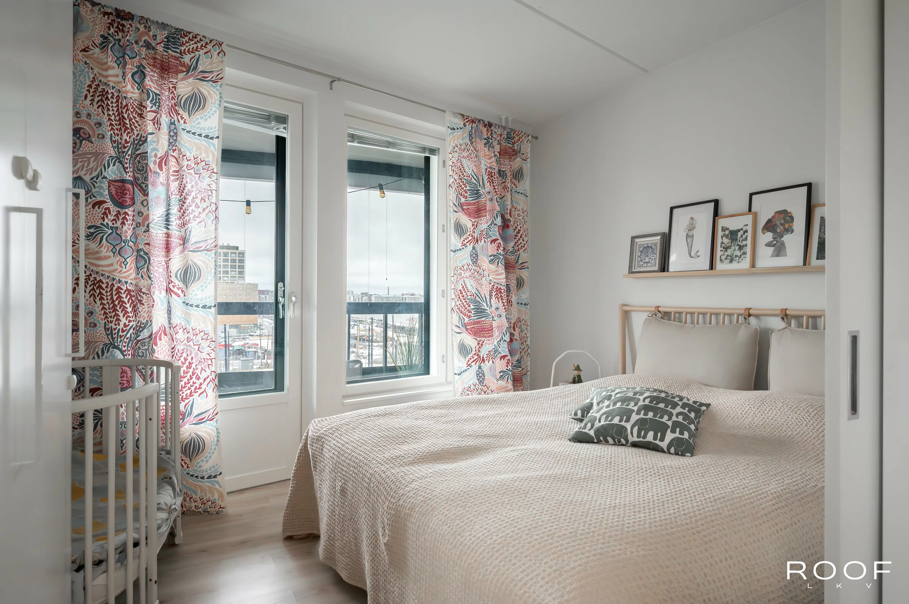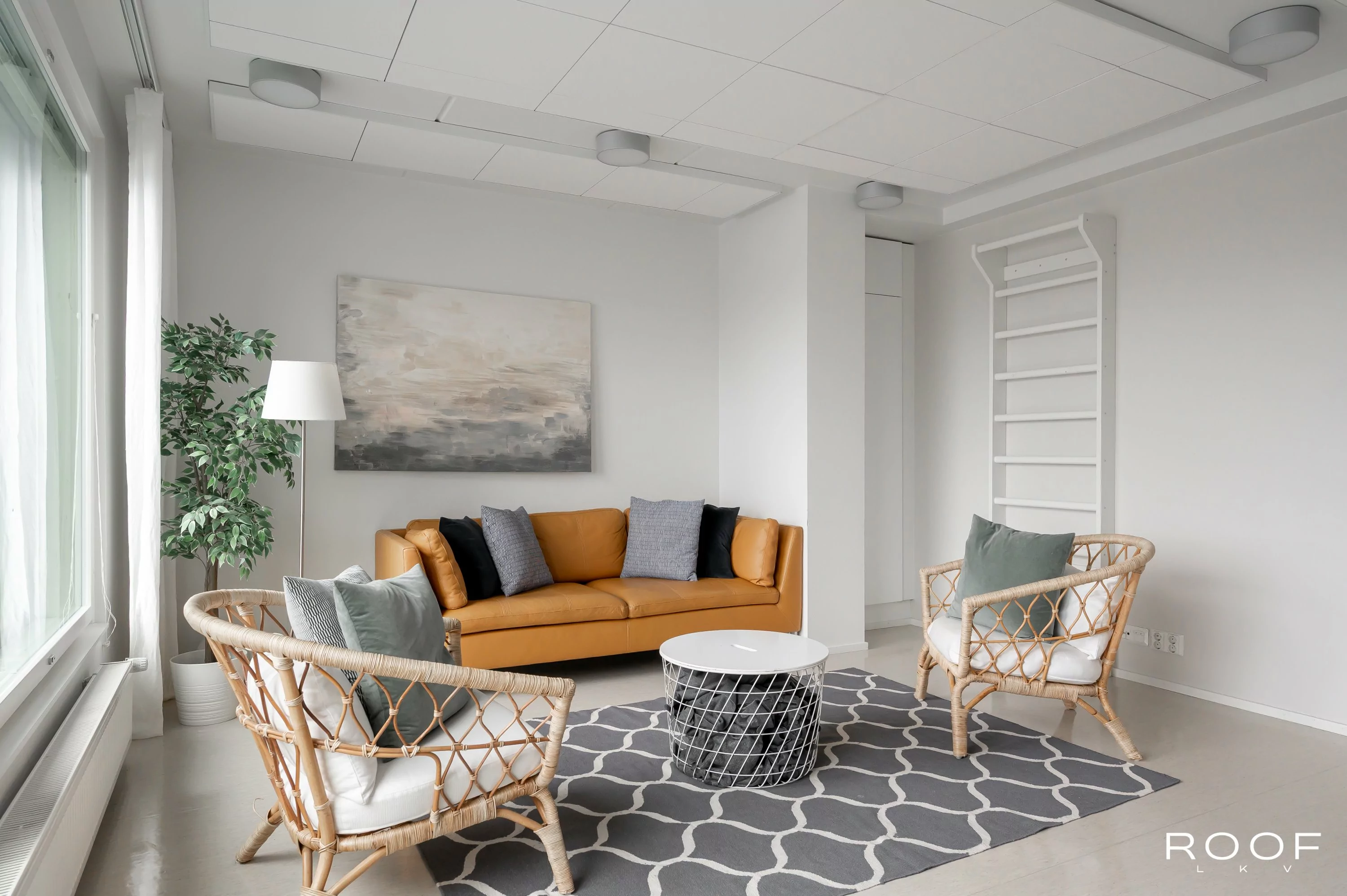 Kodin sydän on avara olohuone–keittiö-yhdistelmä. Makuuhuoneet sijaitsevat tilan eri puolilla, tarjoten rauhaa ja yksityisyyttä niin perheen eri jäsenille kuin etätyöskentelyynkin. Toisesta makuuhuoneesta on käynti asunnon lasitetulle parvekkeelle, josta avautuvat kauniit merelliset näkymät.