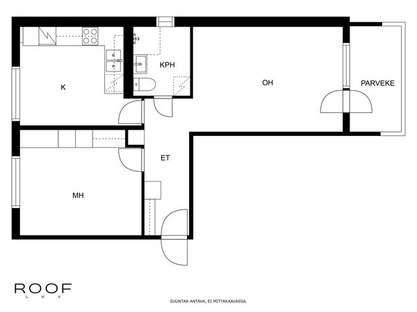 kerrostalo, 2 h + k + kph + lasitettu parveke