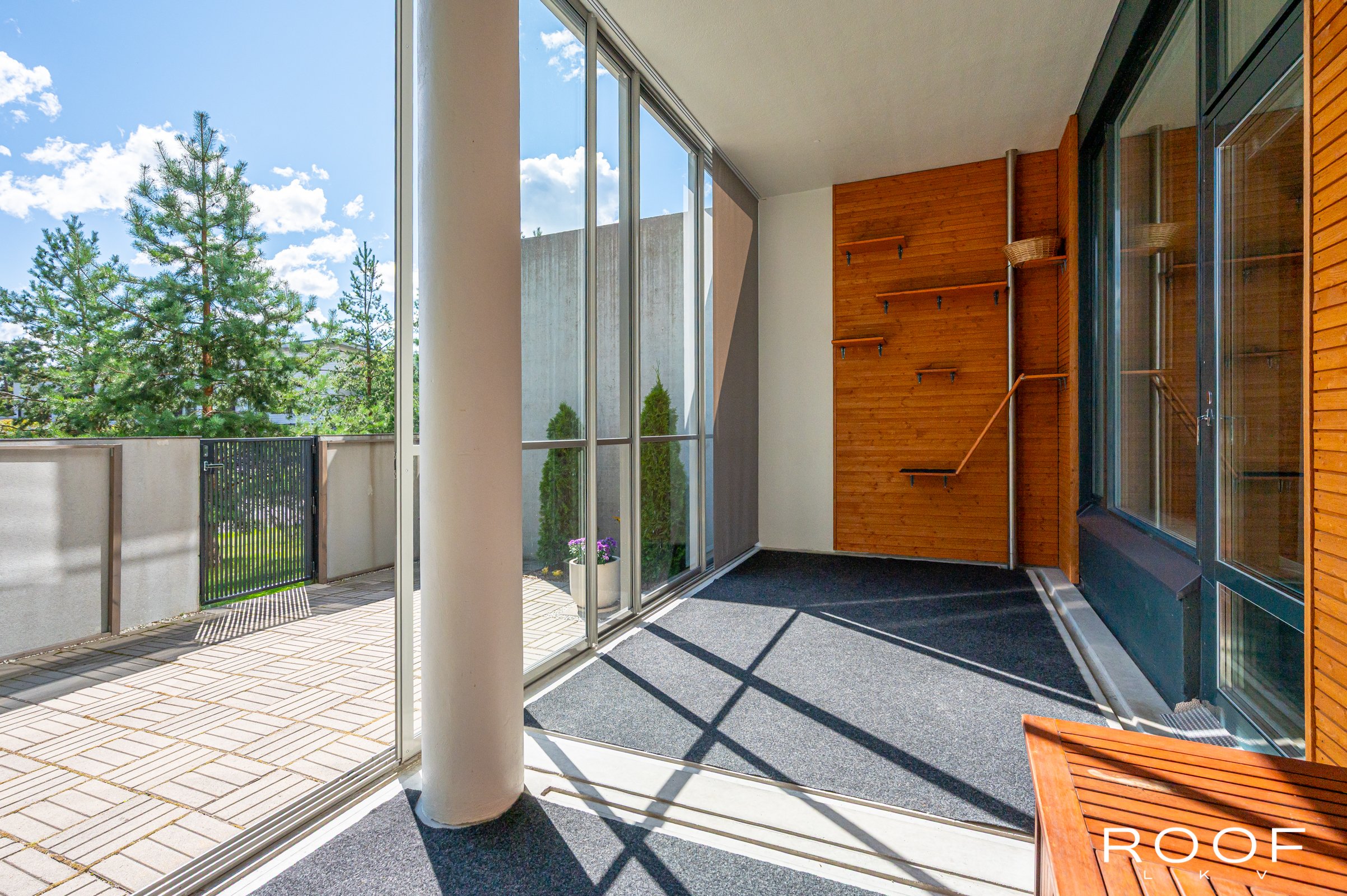 Edustava loft-henkinen kaksio omalla lasitetulla terassilla ja piha-alueella