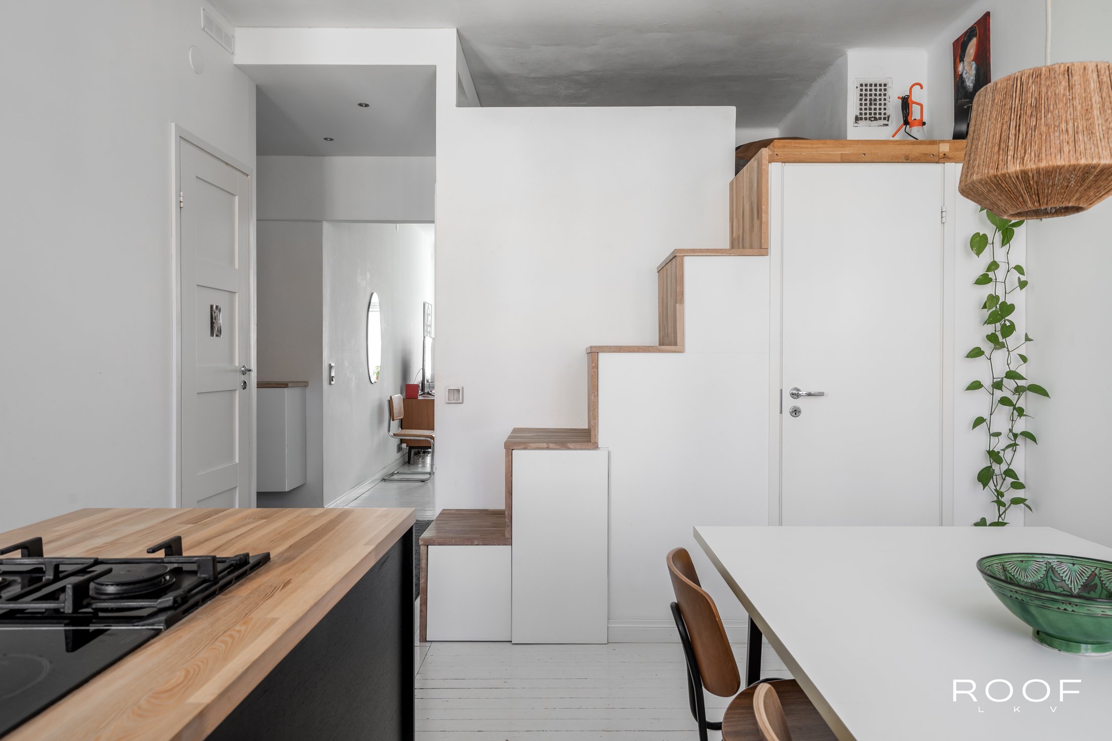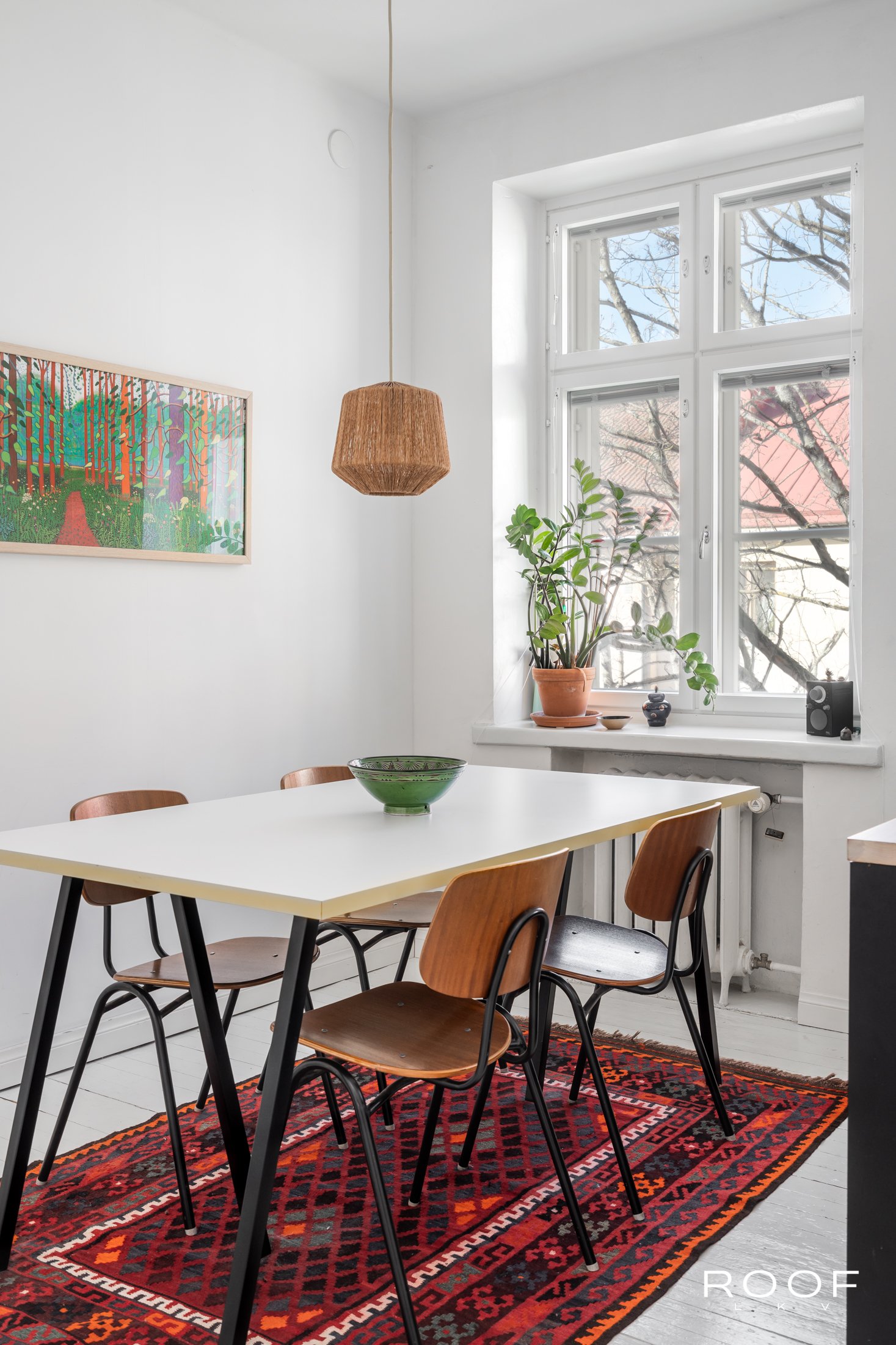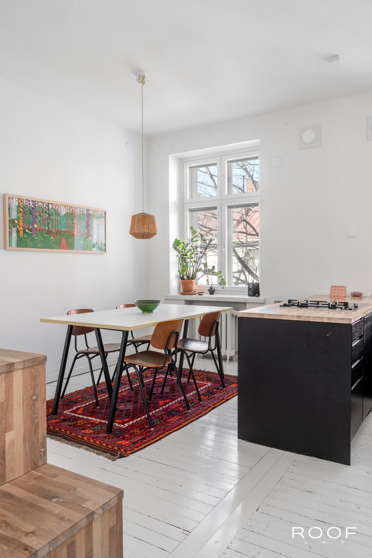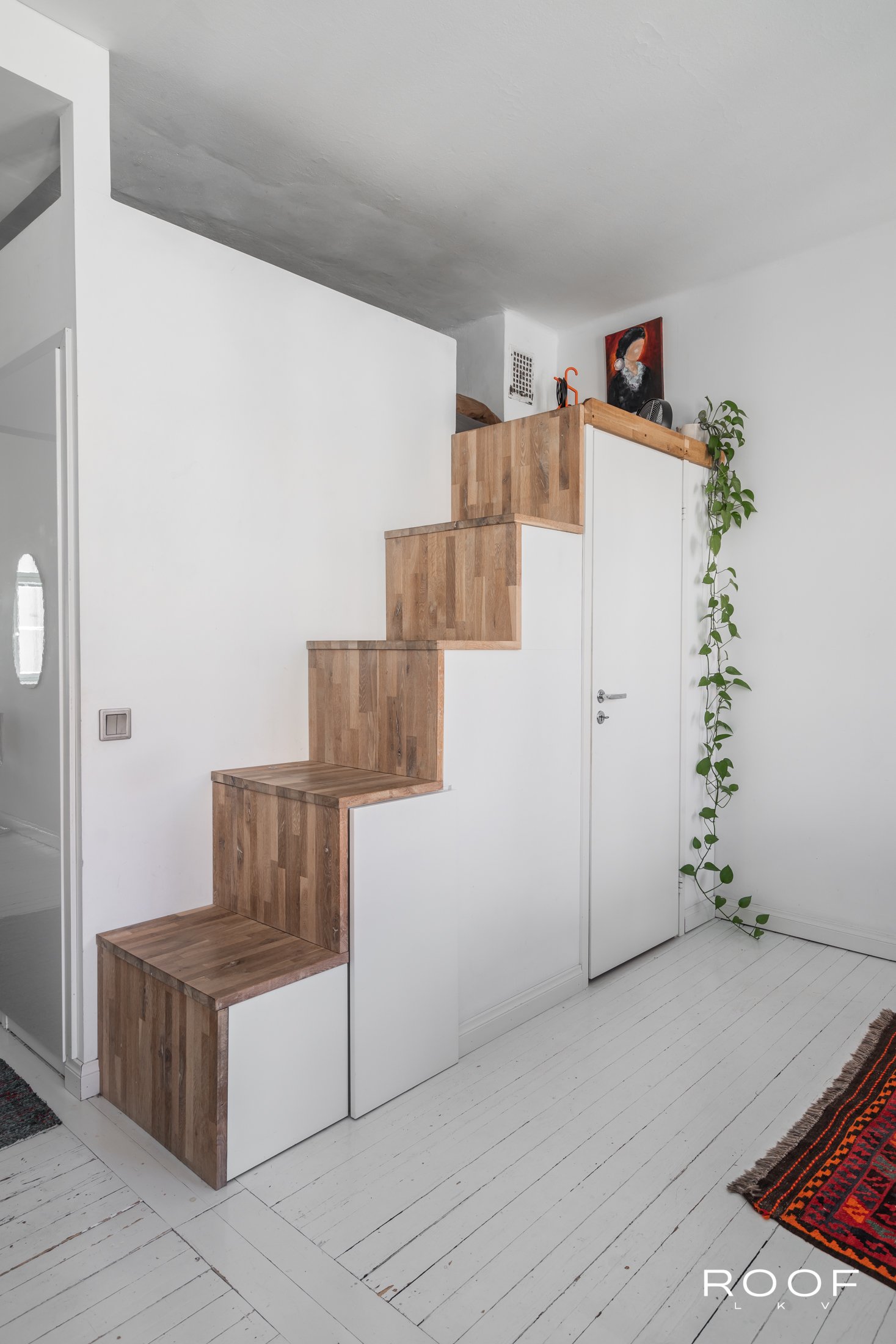 Asunnon vaalea sävymaailma, lauta lattiat ja leveät ikkunalaudat tuovat tilaan ilmavuutta ja persoonallista ilmettä. Lisäksi asunnosta löytyy suuri parvi, jonne johtaa leveät portaat....
