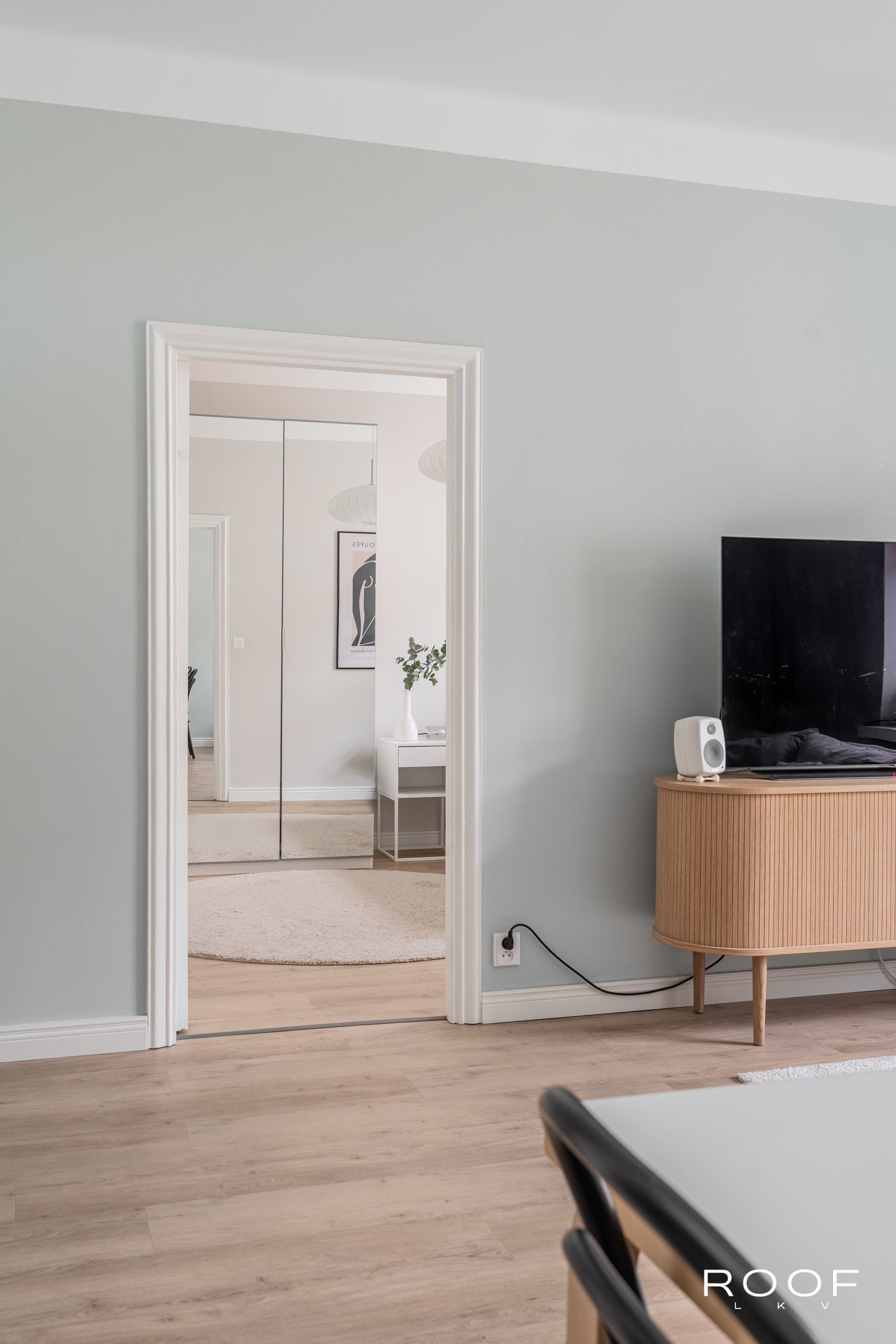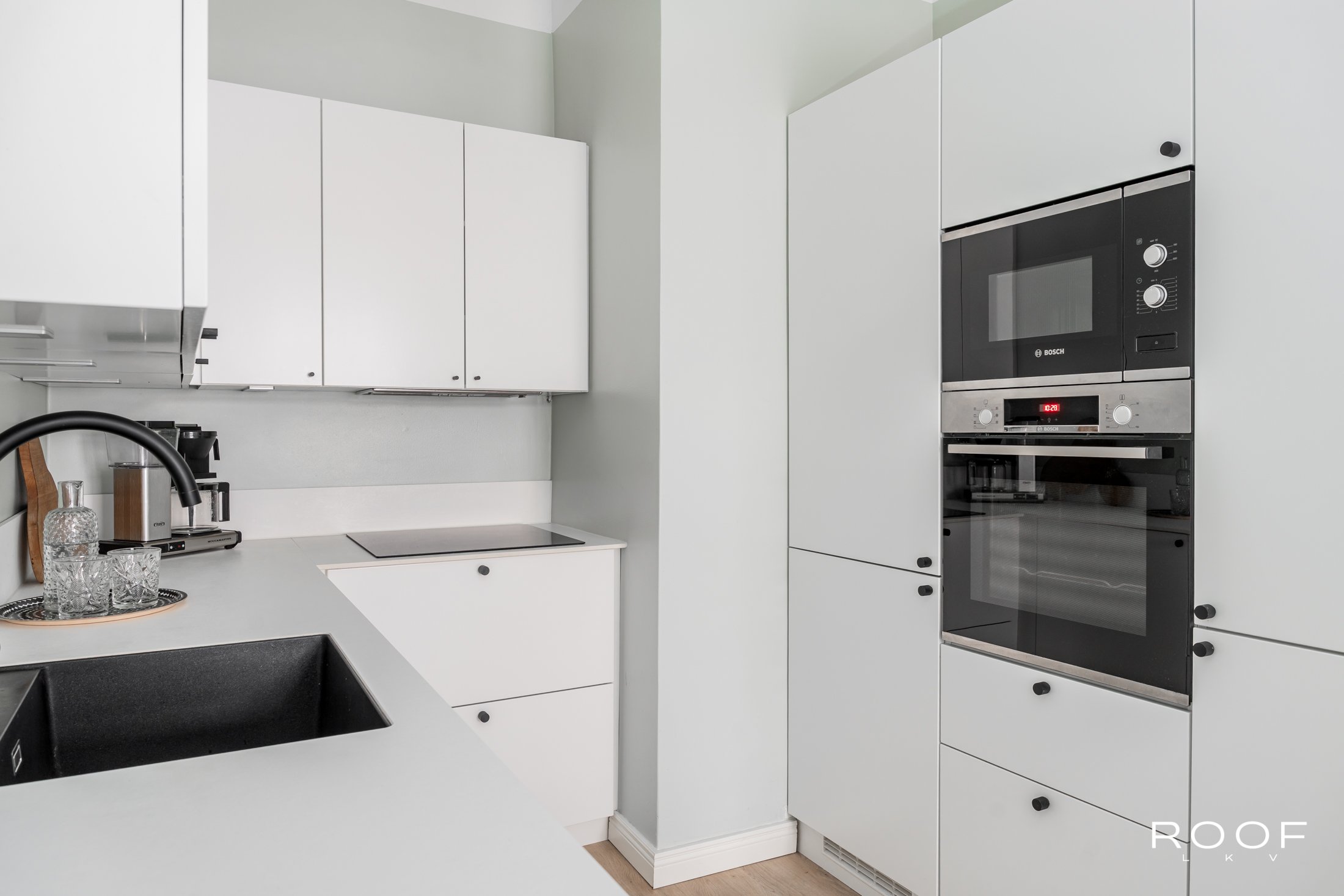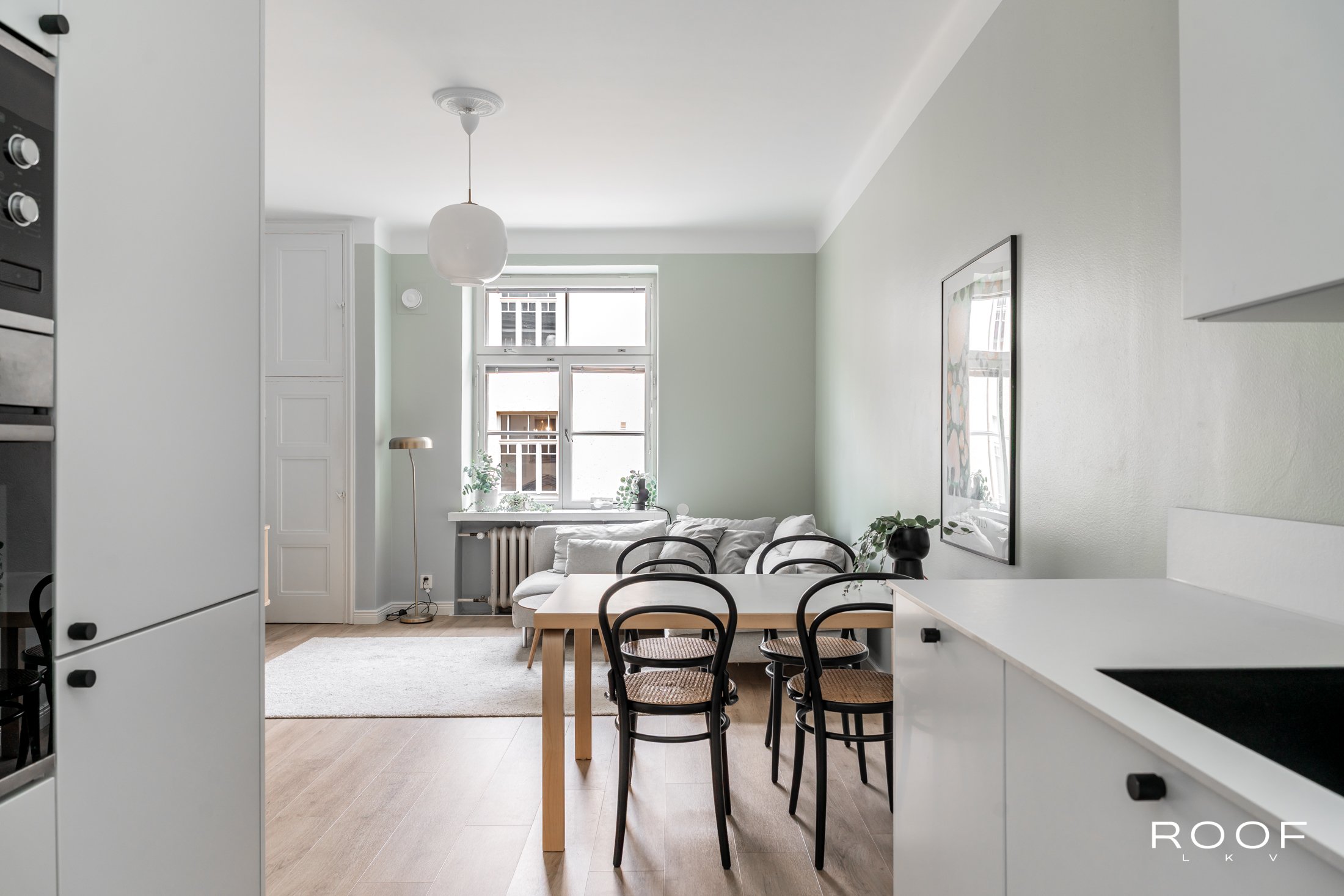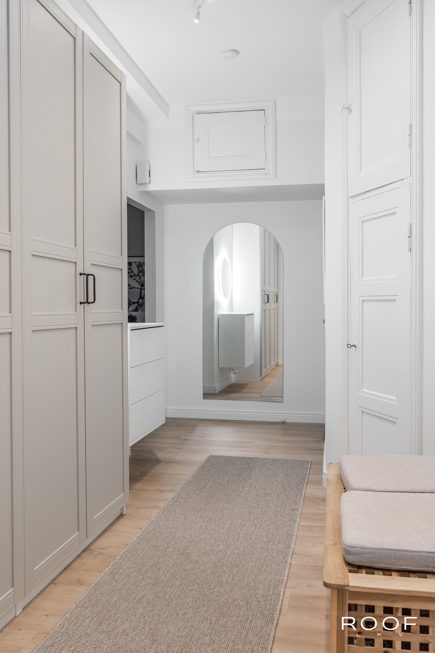 Huoneisto on remontoitu muutama vuosi sitten ja viimeistelty moderniin, ajattomaan ilmeeseen. Pohjaratkaisu on selkeä ja neliöt on hyödynnetty tehokkaasti, mikä tekee tiloista käytännölliset ja helposti kalustettavat. Korkeat huoneet ja syvät ikkunalaudat tuovat kotiin Jugend-arkkitehtuurin tunnistettavaa charmia ja ...