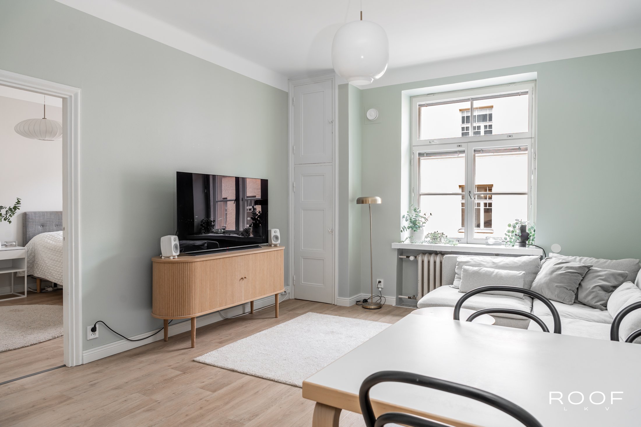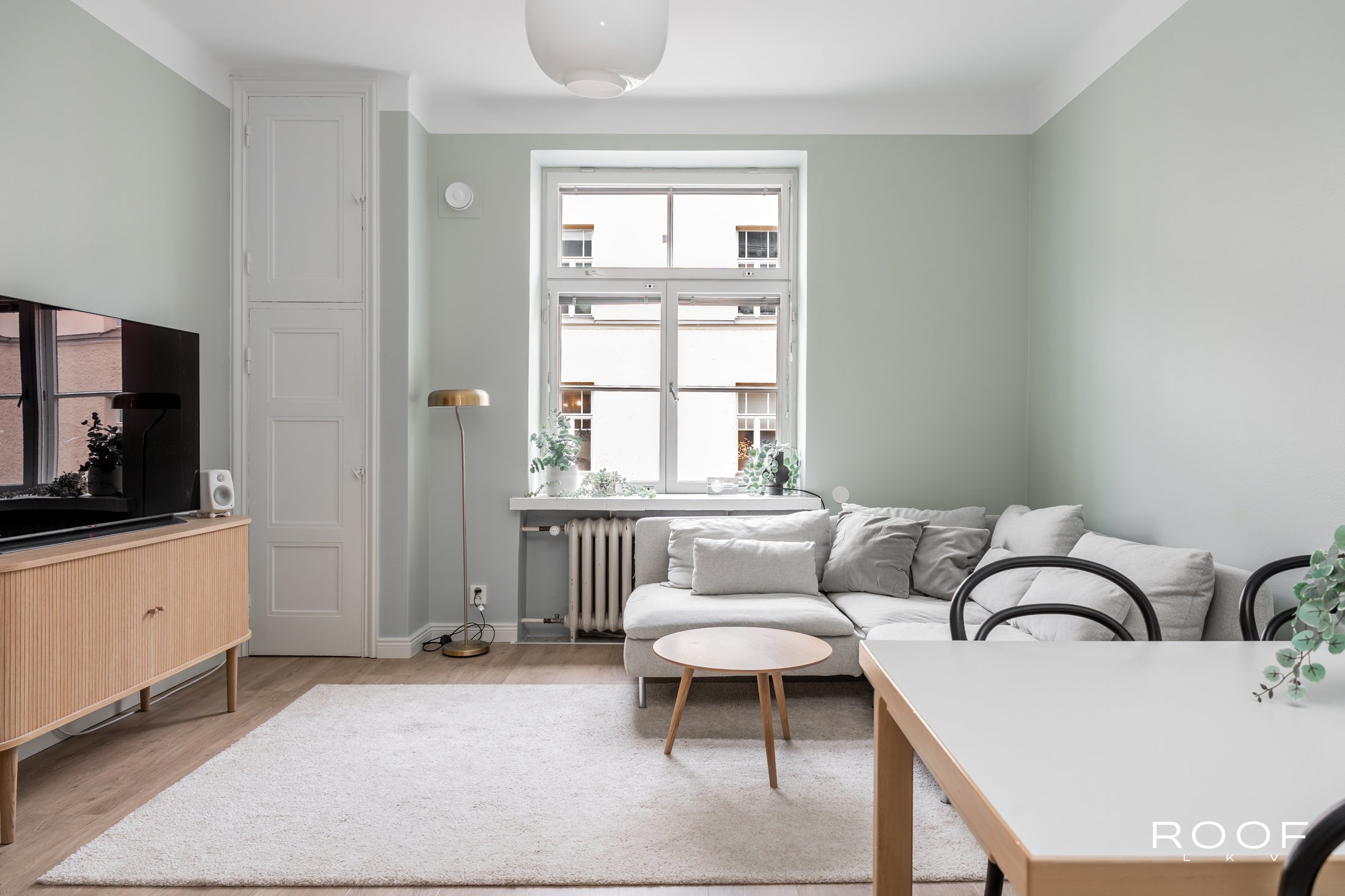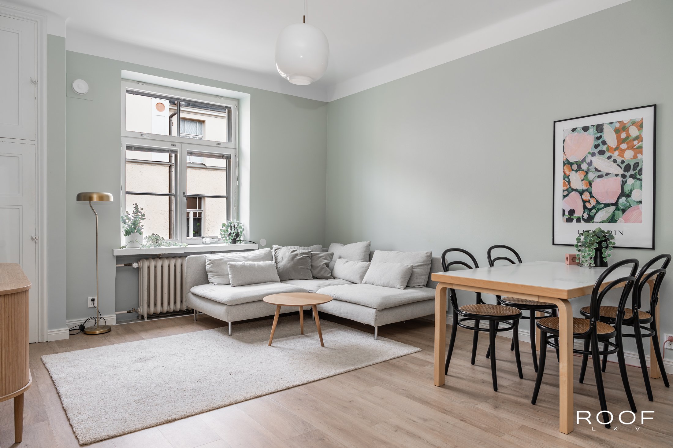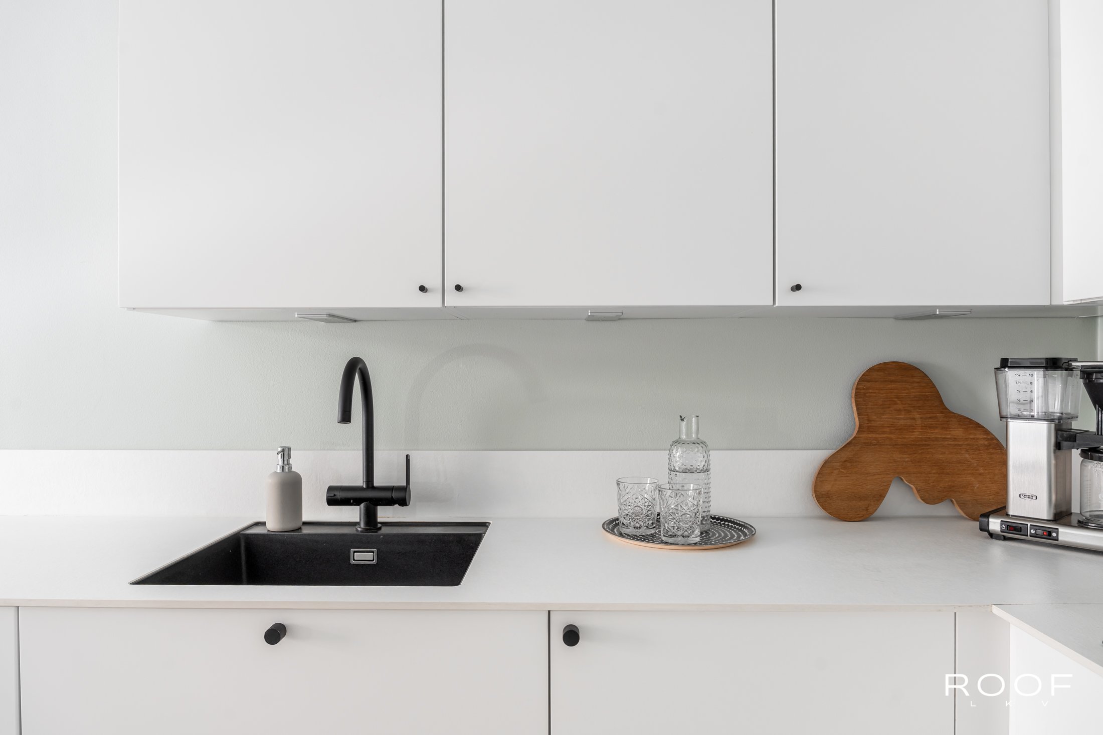 Huoneisto on remontoitu muutama vuosi sitten ja viimeistelty moderniin, ajattomaan ilmeeseen. Pohjaratkaisu on selkeä ja neliöt on hyödynnetty tehokkaasti, mikä tekee tiloista käytännölliset ja helposti kalustettavat. Korkeat huoneet ja syvät ikkunalaudat tuovat kotiin Jugend-arkkitehtuurin tunnistettavaa charmia ja ...