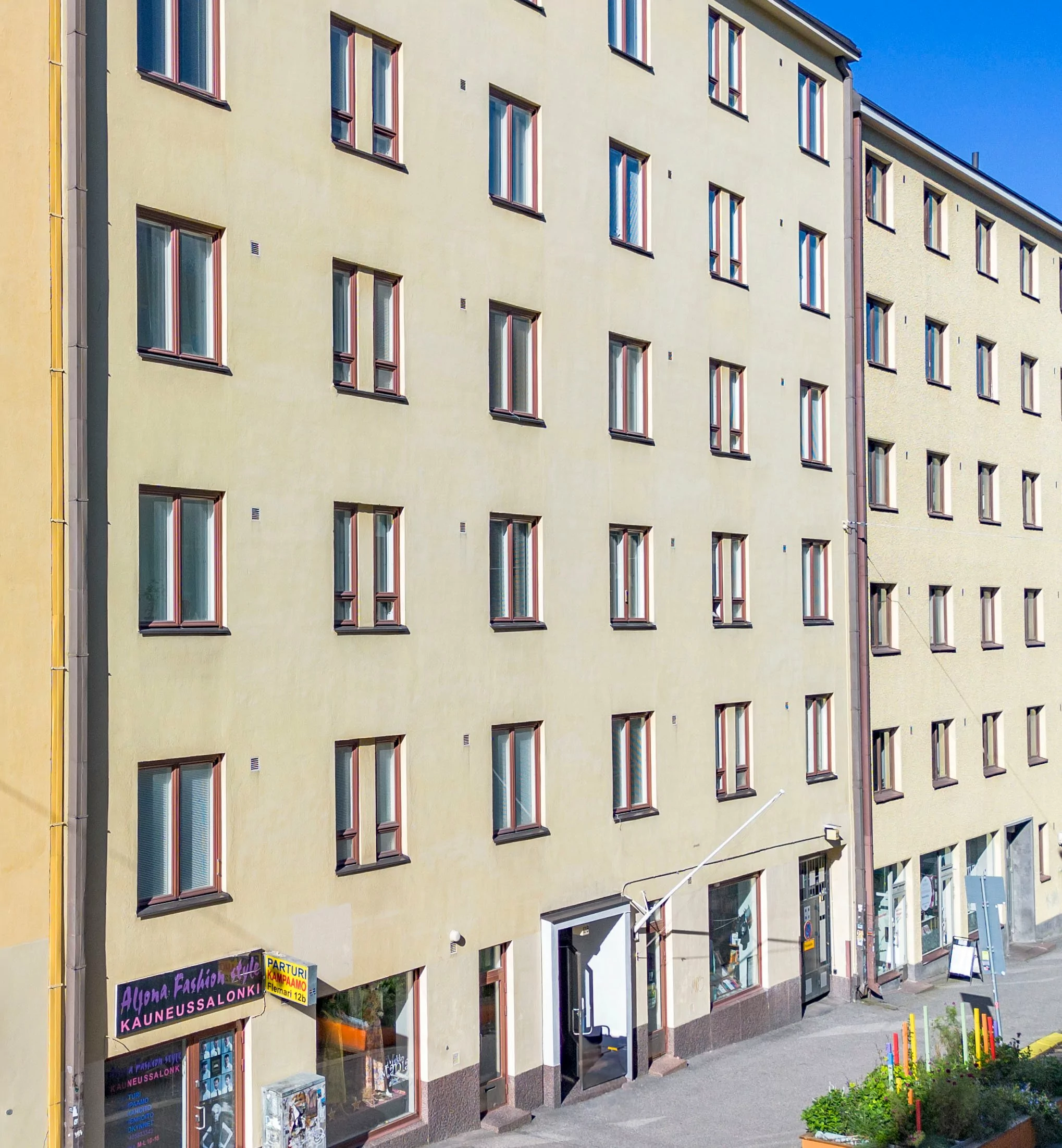 Taloyhtiön suurimmat remontit on tehty, ja lähivuosille on tiedossa vain normaaleja huoltotoimenpiteitä. Yhtiön omistuksessa 2 asuntoa + 3 liikehuoneistoa (44 433€ vuokratuotot vuodessa).