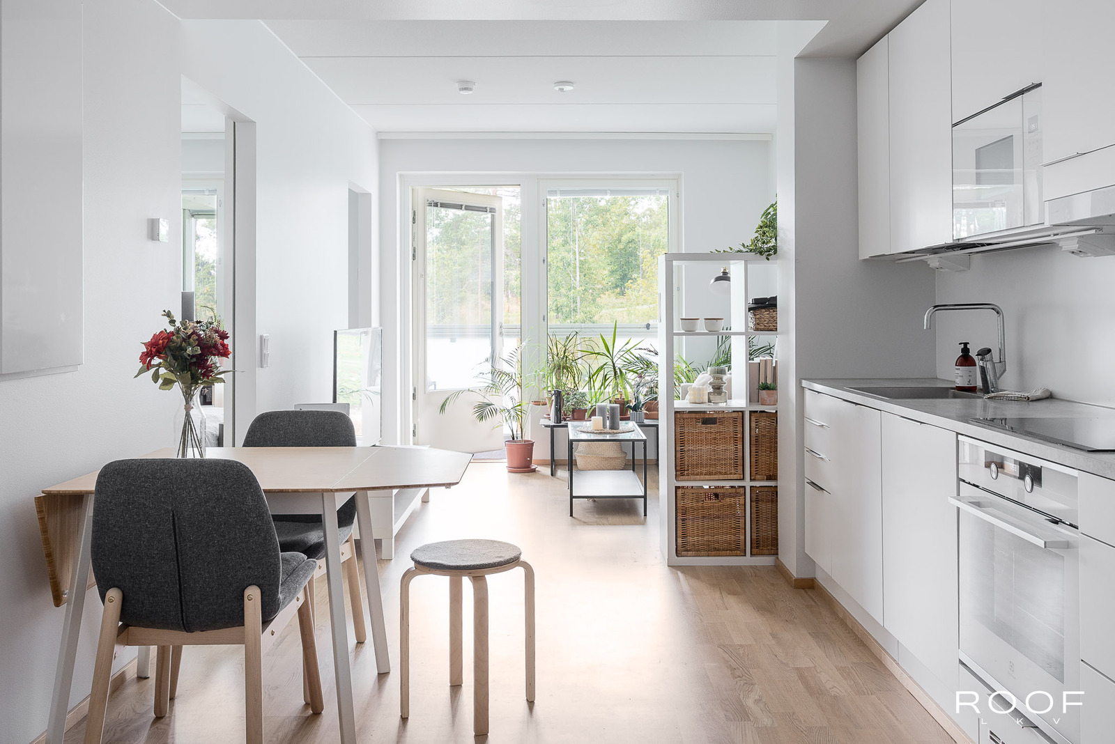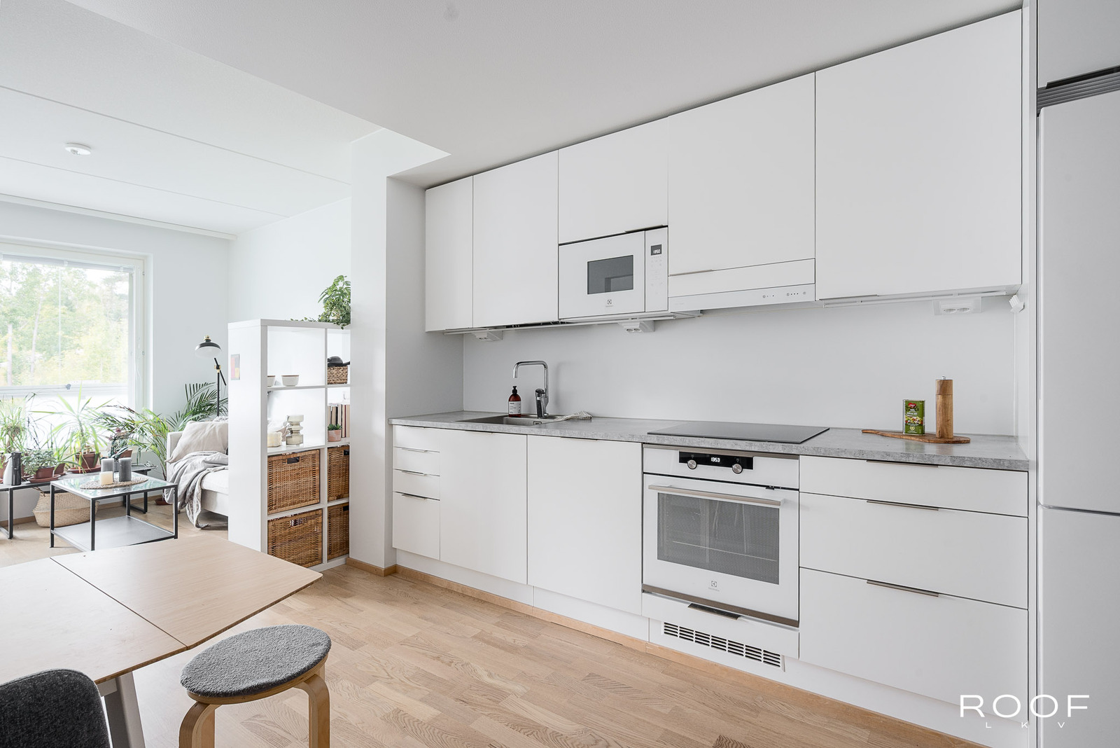 Valoisaan, moderni 42 m² kerrostalokoti, jossa kaikki on harkittu huolella. Avoin keittiö yhdistyy saumattomasti olohuonetilaan, joka jatkuu koko huoneiston levyiselle parvekkeelle josta aukeaa näkymät yhtiön upealle sisäpihalle. Suuret ikkunat ja koko asunnon levyinen parveke tuovat kotiin runsaasti valoa ja luovat tilantuntua, parveke on kuin lisähuone suurimman osan vuodesta. Käytännöllinen kylpyhuone on varustettu pyykkihuollon tilalla, mikä tekee arjen pyörittämisestä helppoa ja huolettomampaa.
