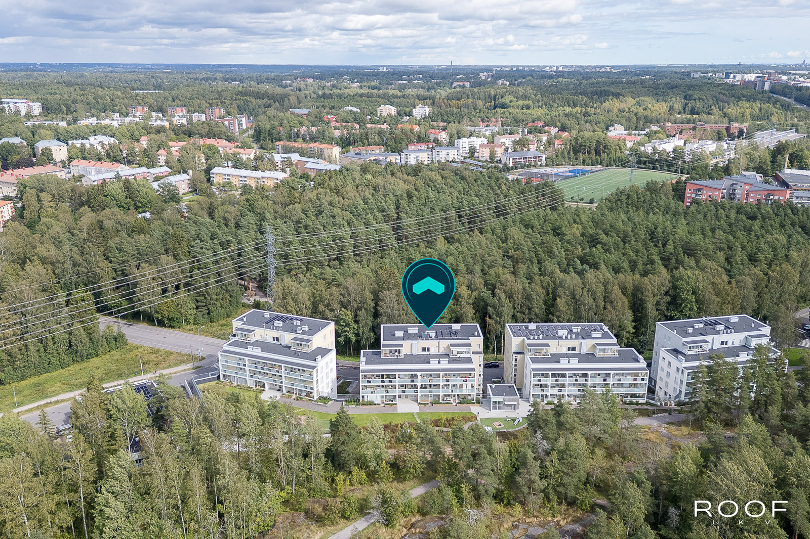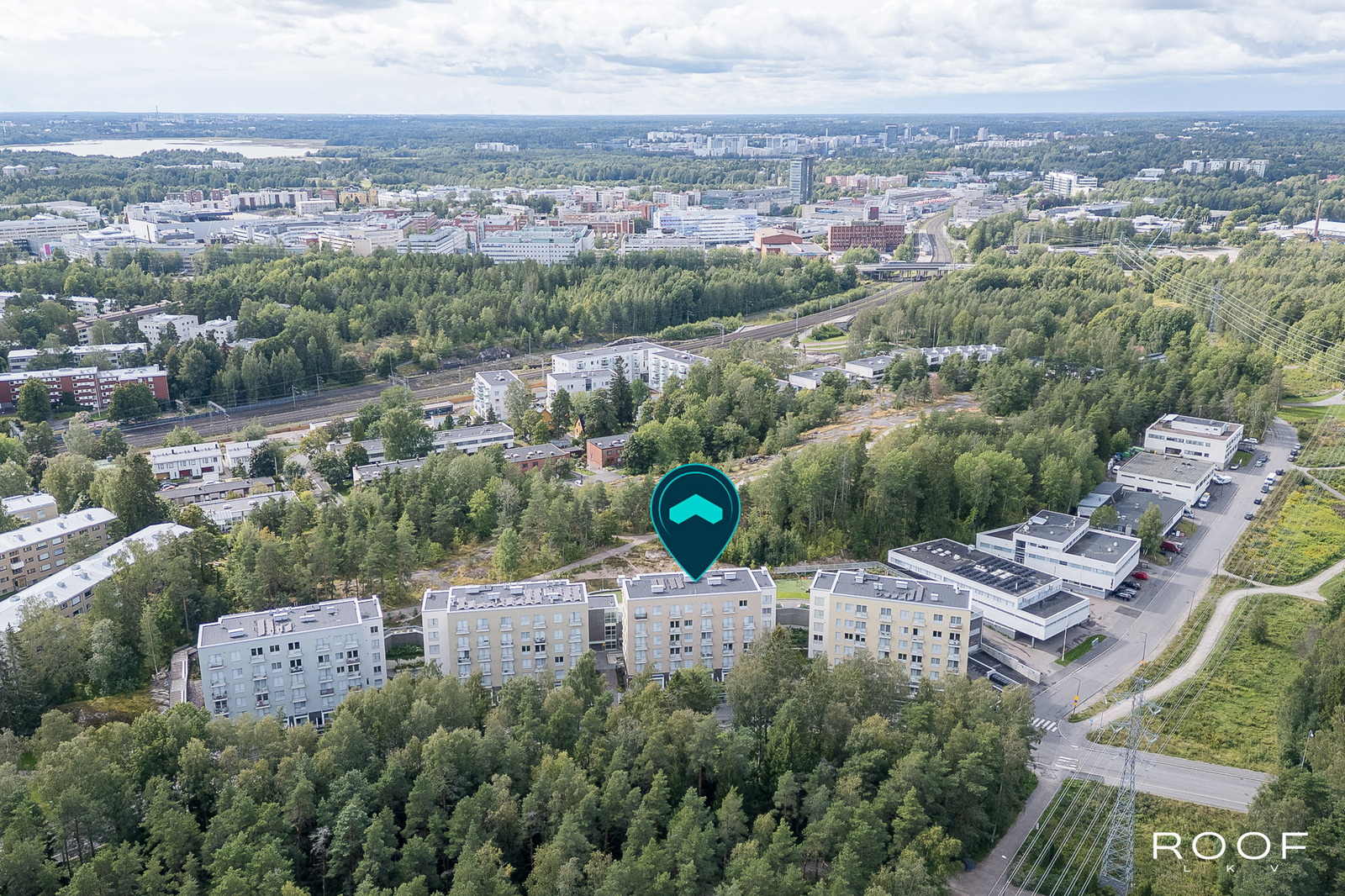 Sijainti Etelä-Haagassa on mitä mainioin: vehreä naapurusto avautuu heti kotiovelta, ja ikoninen Alppiruusupuisto tuo luonnon osaksi arkea. Alue on rauhallinen ja lapsiystävällinen, mutta silti palveluiden ja liikenneyhteyksien äärellä. Huopalahden juna-asema on lyhyen kävelymatkan päässä, ja Raide-Jokeri tuo alueelle entistä sujuvammat yhteydet. Kaupat, kahvilat, koulut ja liikuntapaikat löytyvät lähietäisyydeltä, ja pyöräilyn sekä kävelyn reitit houkuttelevat liikkumaan.