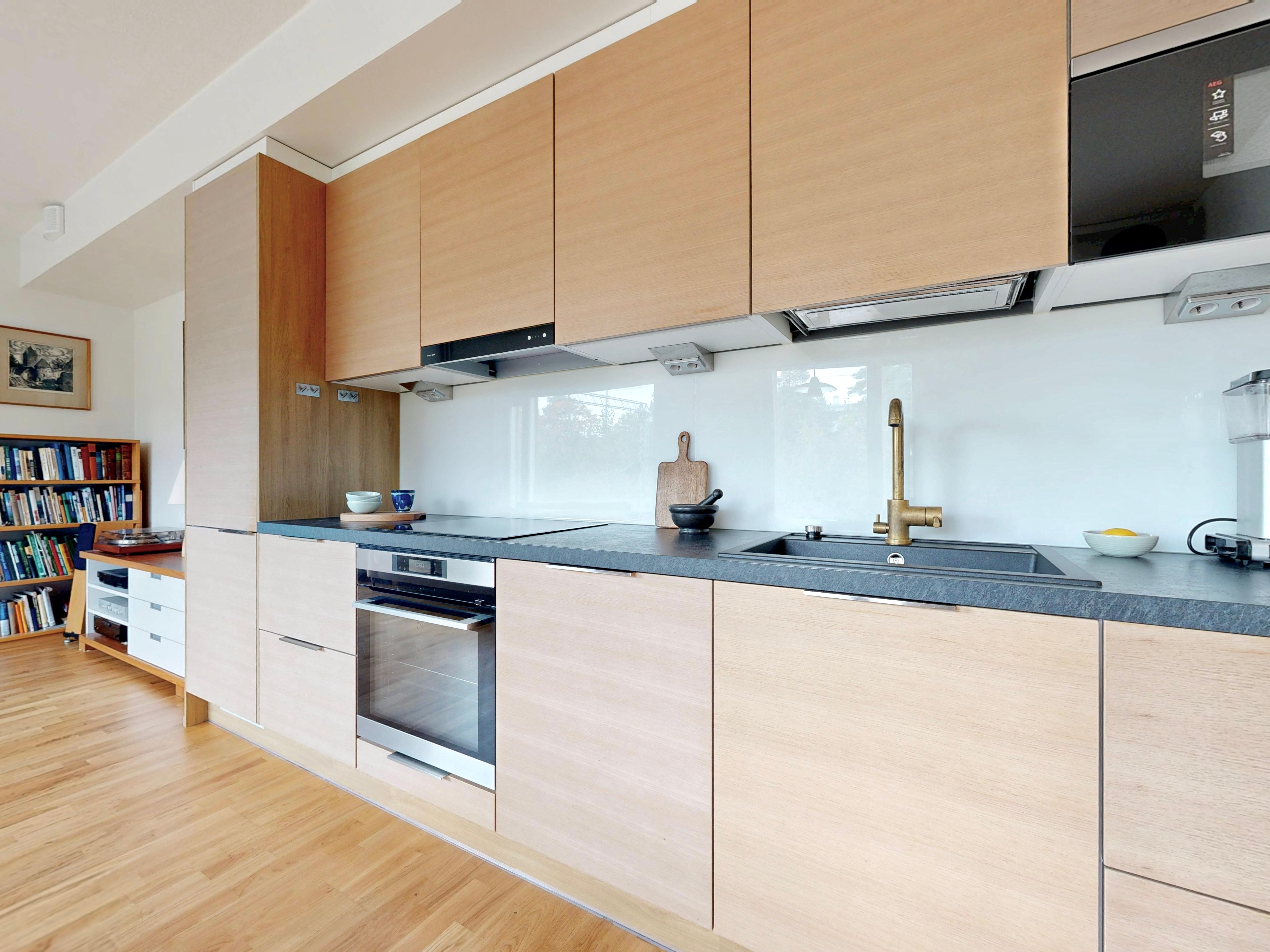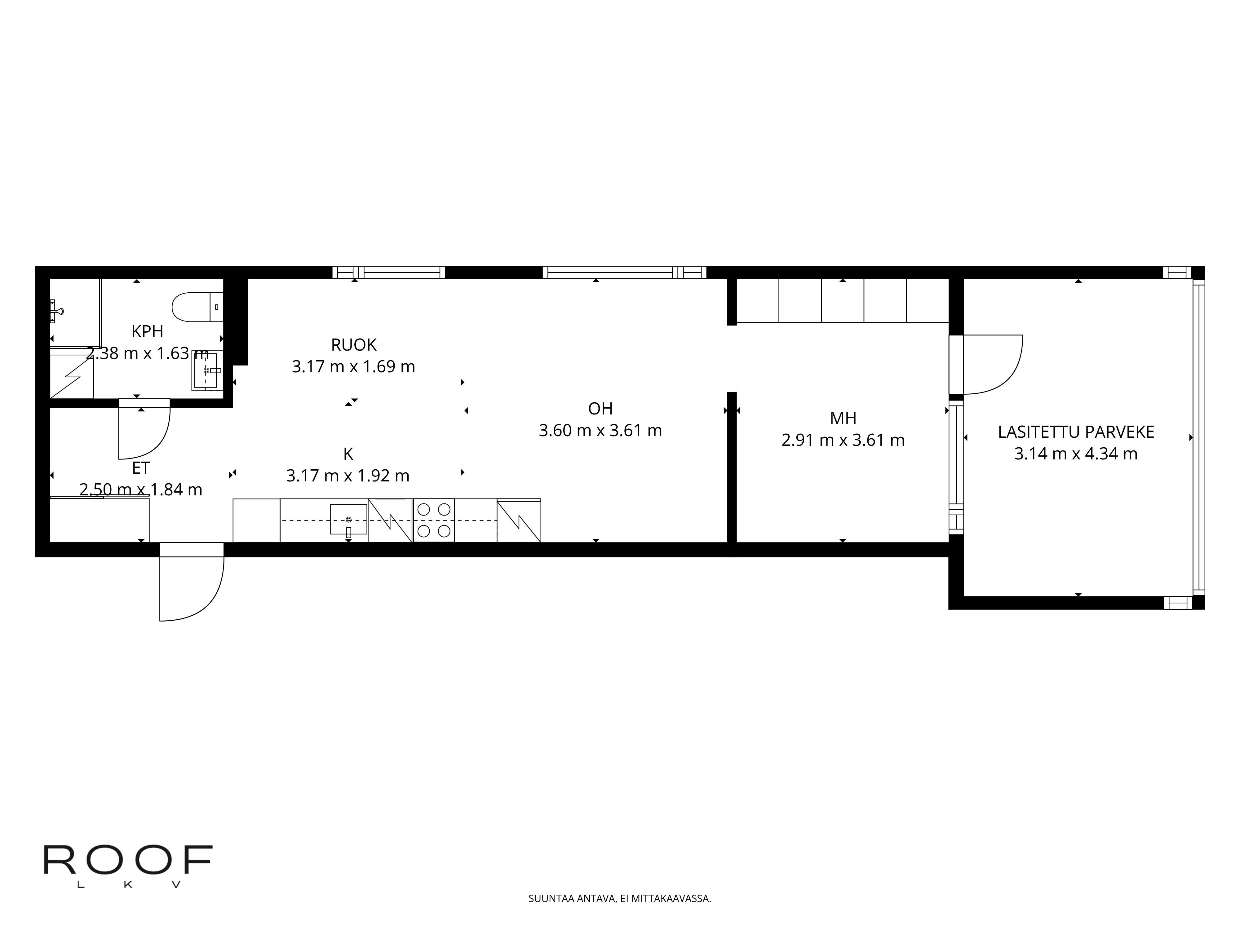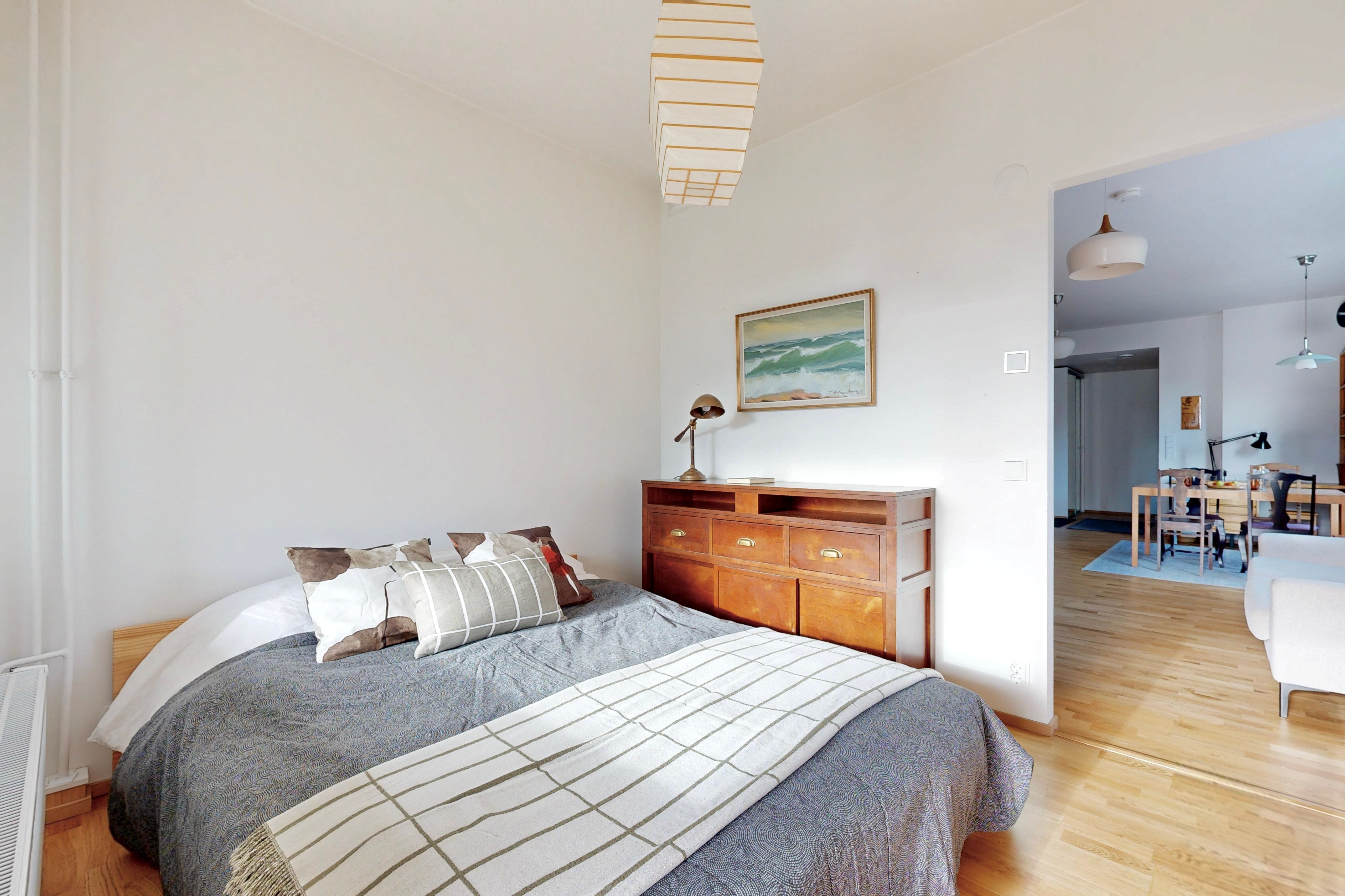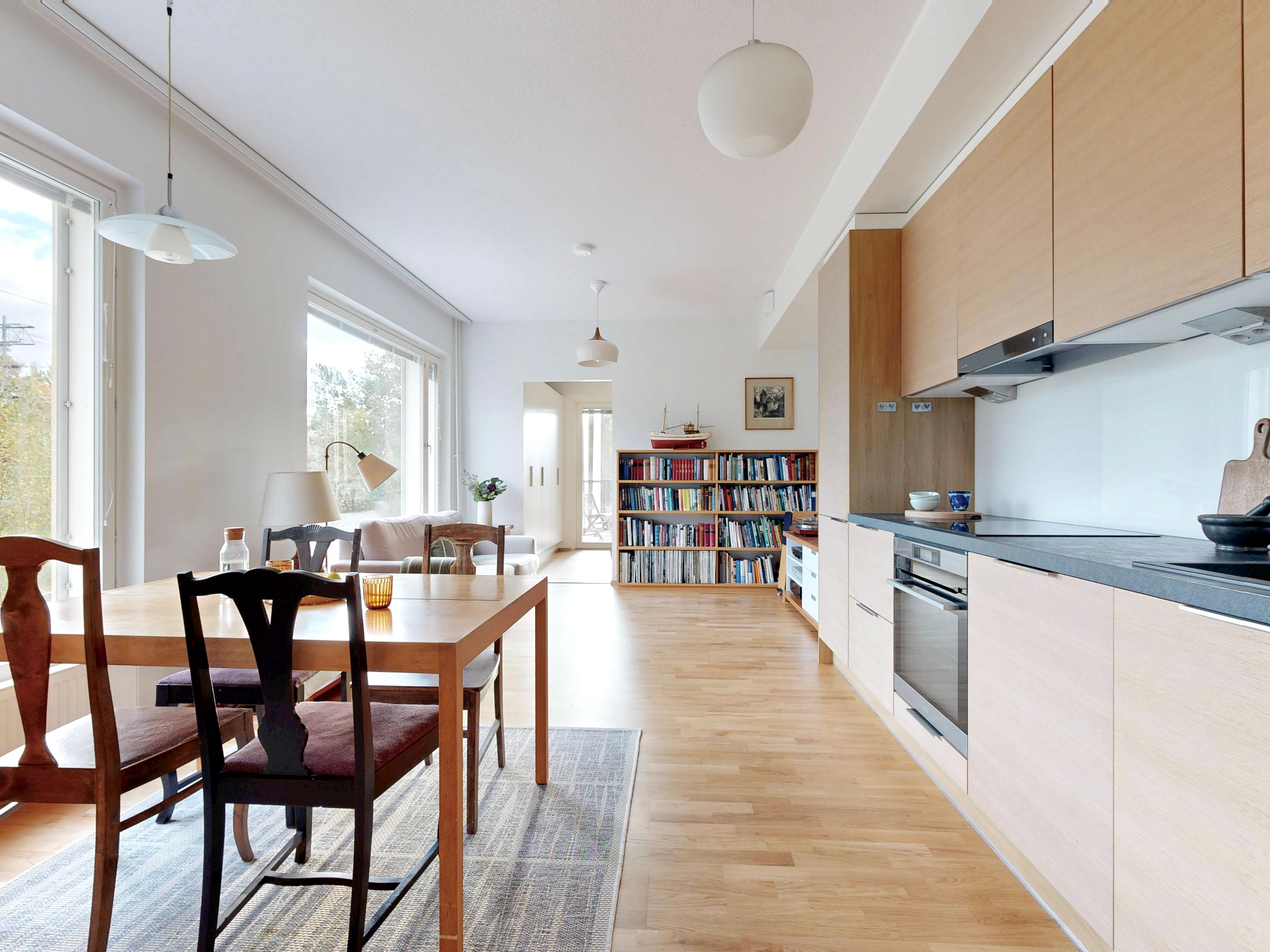Tässä kulmaahuoneistossa ihastuttaa valoisat oleskelutilat, johon mahtuu niin sohva-kuin ruokaryhmä. Asunnossa on tyylikäs keittiö, jossa on hyvin säilytys-ja laskutilaa. Makuuhuoneesta on käynti lasitetulle parvekkeelle, joka toimii lisähuoneena. Makuuhuoneessa ja eteisessä on lisäksi kaapistot. Tilava kylpyhuone, jossa paikka pyykinpesutornille.
