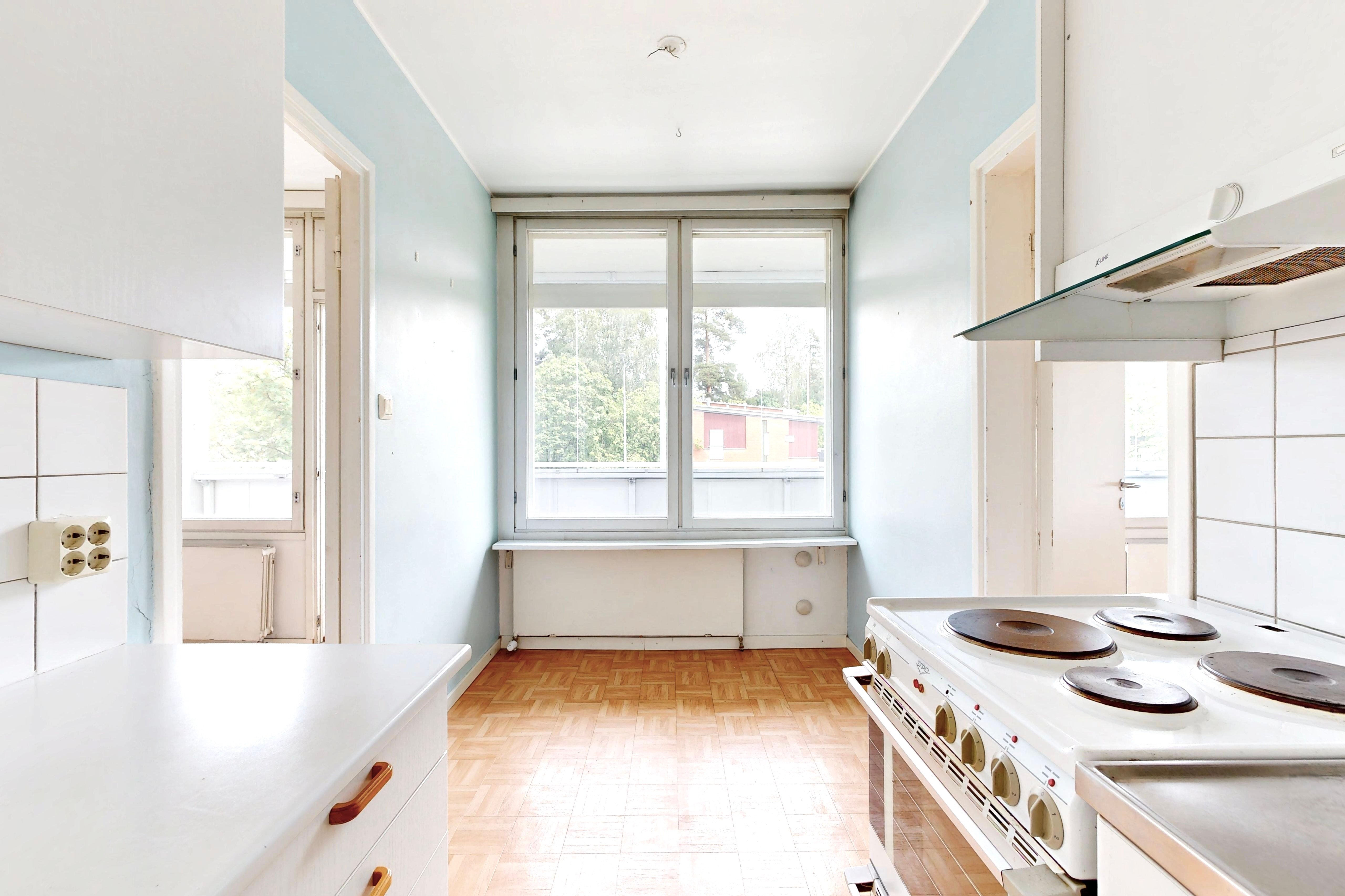 Tässä kodissa ihastuttaa loistava pohjaratkaisu, erillinen keittiö, isot ikkunat, vaaleus sekä koko asunnon levyinen lasitettu parveke. Keittiössä on tilaa ruokapöydälle. Nykyaikainen kylpyhuone. Eteisessä runsaasti kaappitilaa. Olohuoneesta ja makuuhuoneesta käynti lasitetulle parvekkeelle.