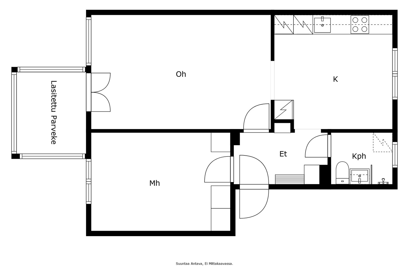 kerrostalo, 2h, k, kph, lasitettu parveke