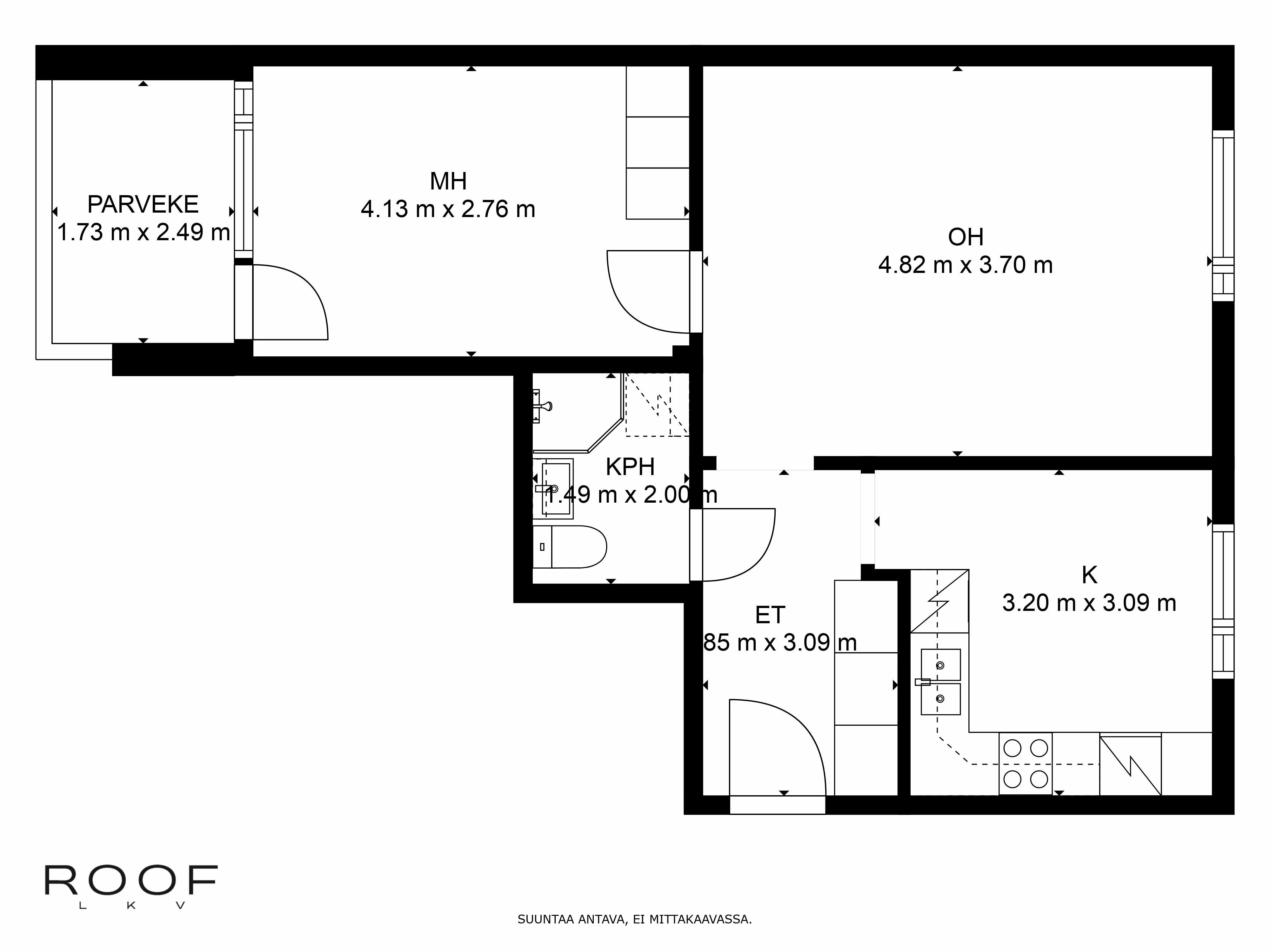 Tämä koti ihastuttaa tiloiltaan ja valoisuudellaan. Olohuone on tilava. Erillisessä keittiössä hyvin kaappi-ja laskutilaa sekä tila ruokaryhmälle. Makuuhuoneessa kaapisto ja käynti parvekkeelle. Parvekkeelta näkymät taloyhtin sisäpihalle. Kylpyhuoneessa tilaa pyykinpesukoneelle.