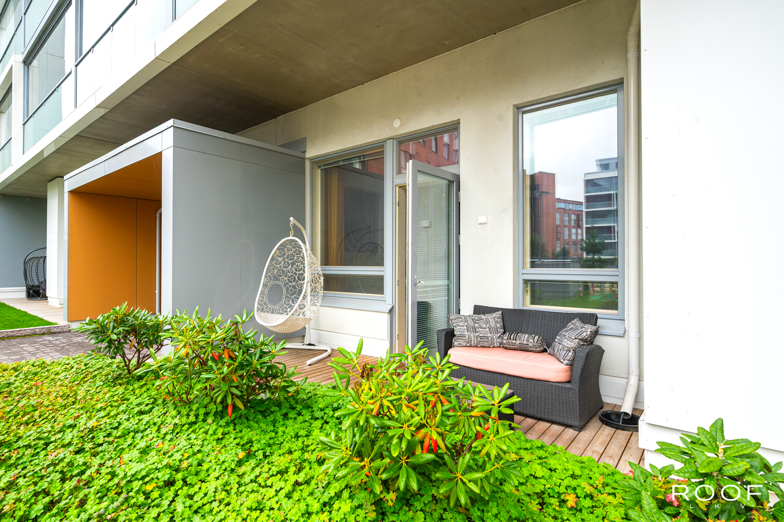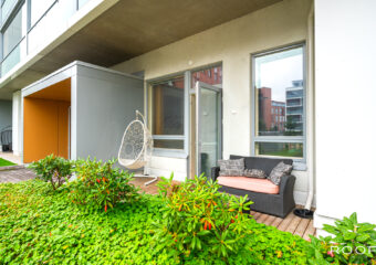 Moderni ja valoisa kaksio omalla terassilla.