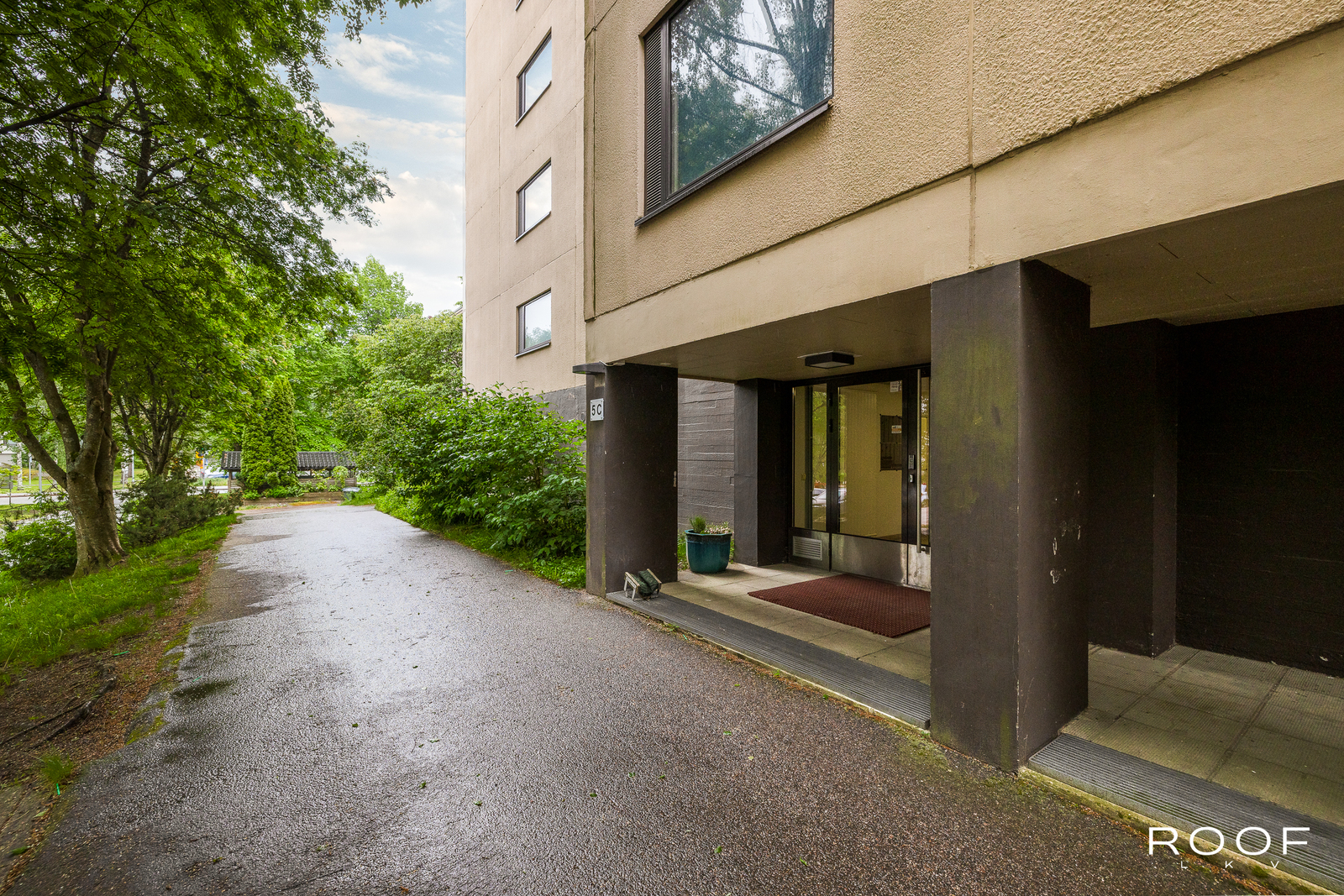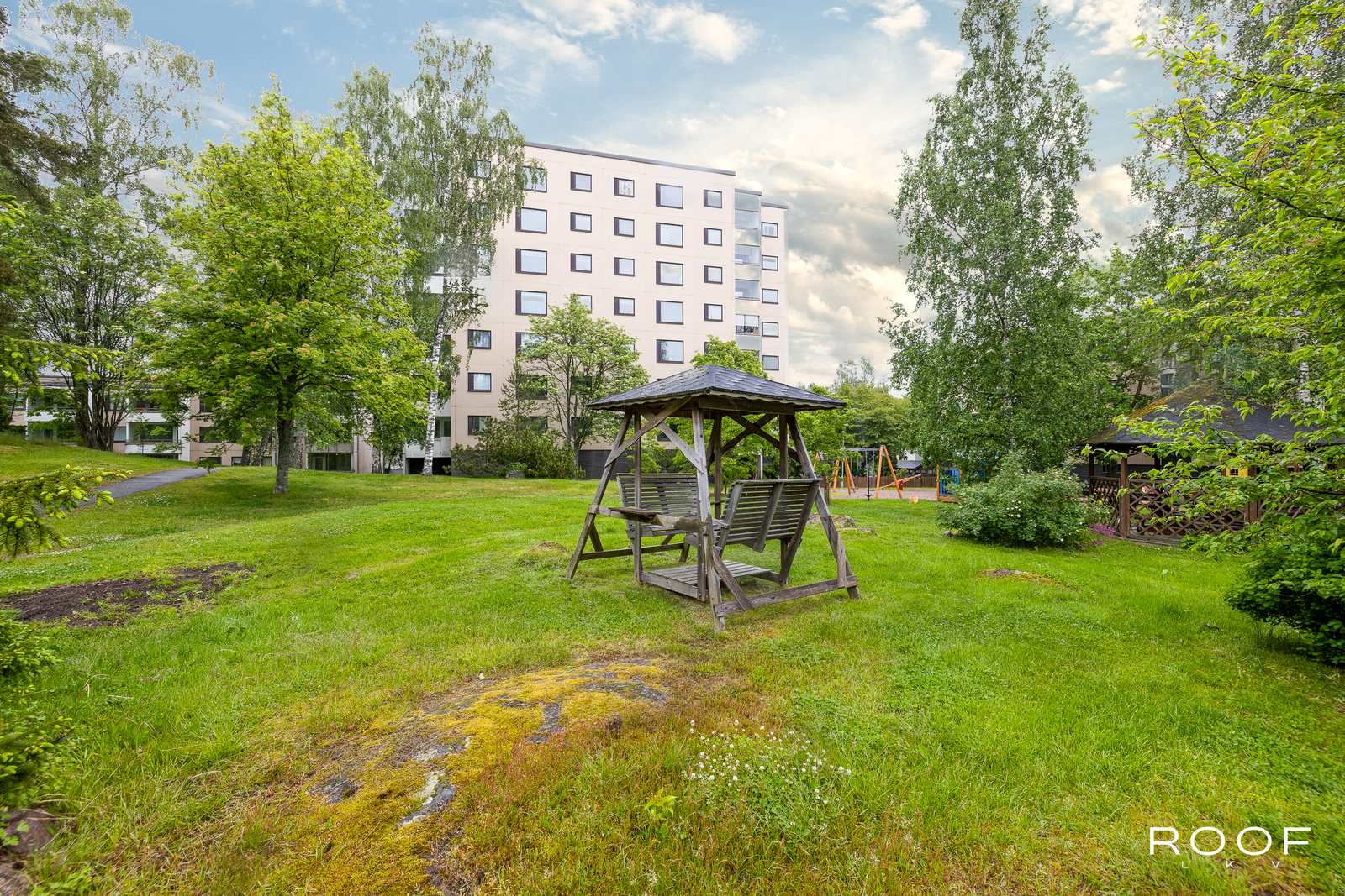 Sijainti on ihanteellinen liikunnasta nauttiville, sillä urheilupuisto on aivan yhtiön vieressä. Merenrantaan on lyhyt matka, joten voit nauttia meren läheisyydestä aina halutessasi. Lähistöltä löytyy lapsiperheille paljon virikkeitä sekä päiväkodit ja koulut. Kauppakeskus Iso Omenaan on lyhyt matka, sieltä löytyy kaikki tarvittavat palvelut sekä metro ja bussiterminaali. Bussipysäkki sijaitsee n. 100 m päästä ulko-ovesta.