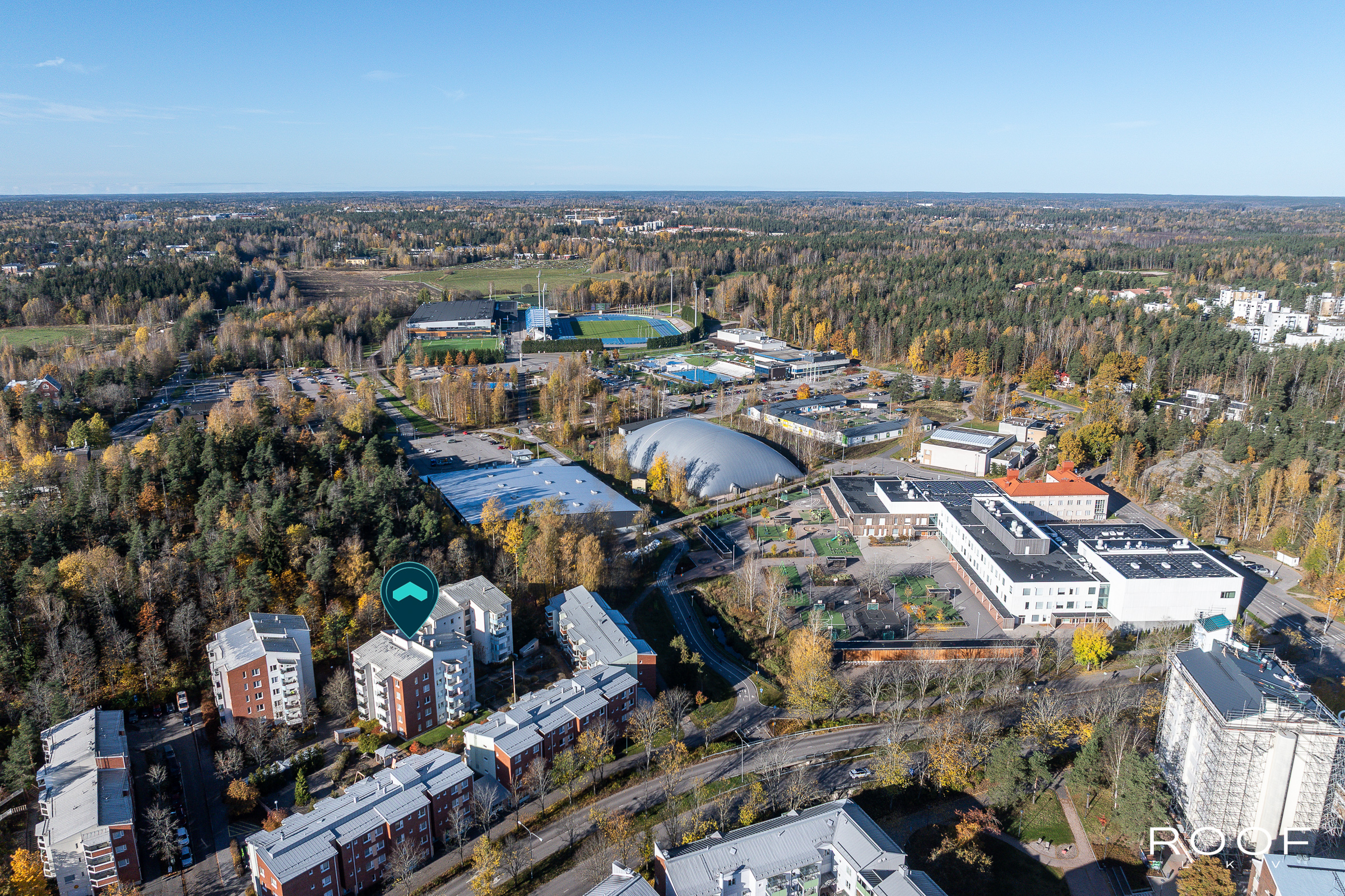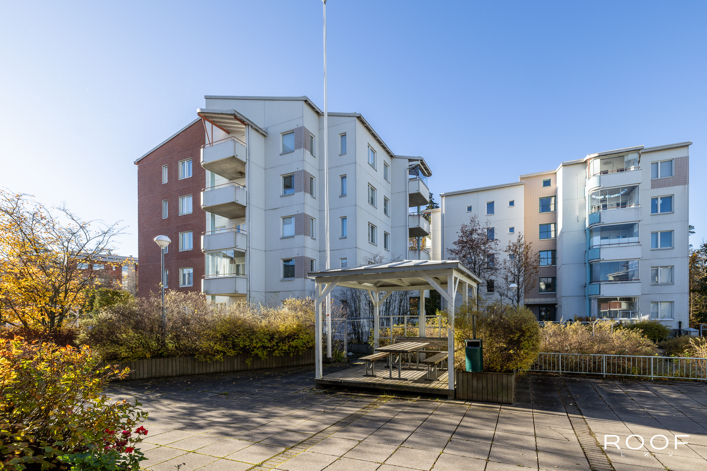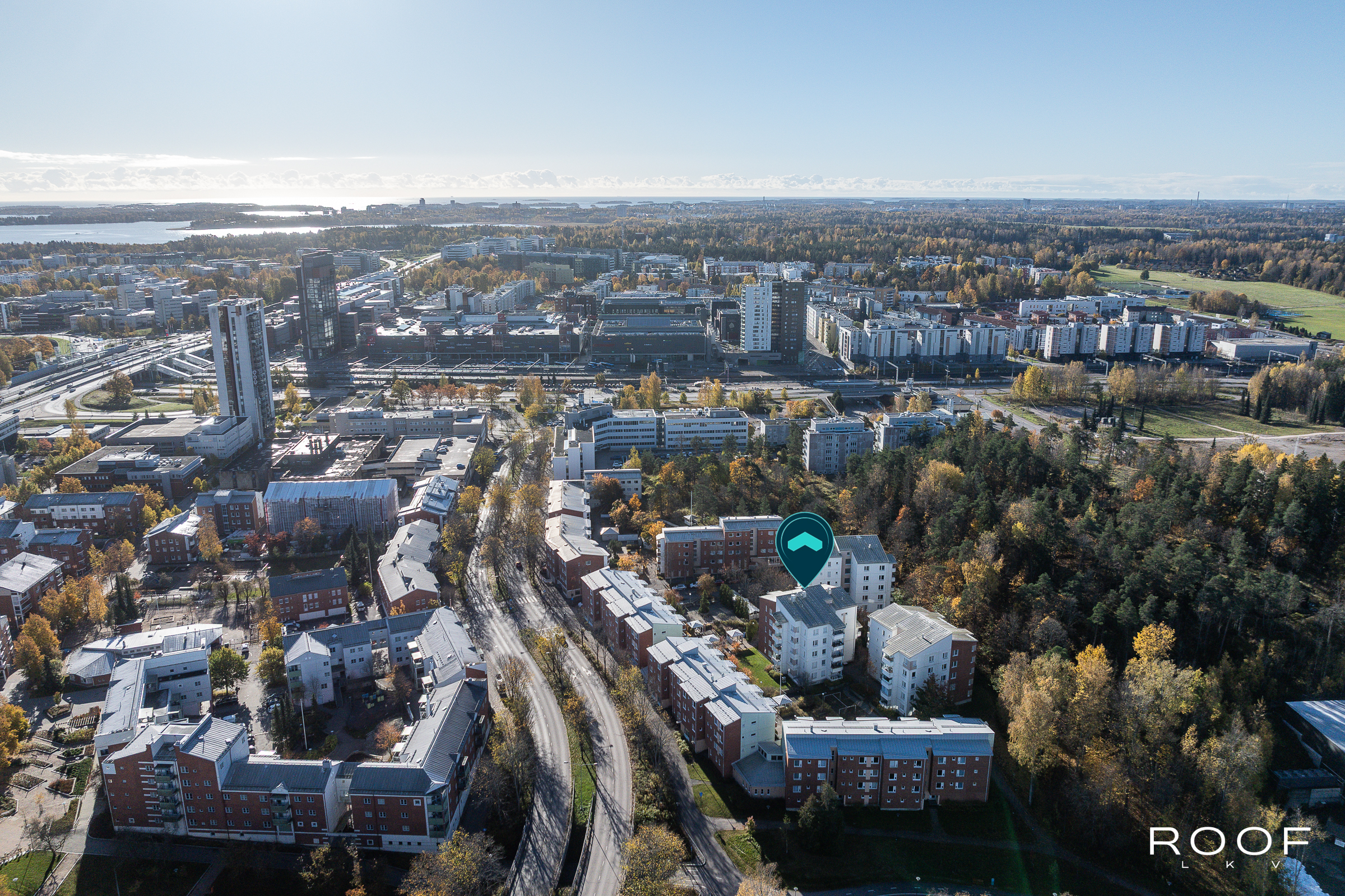 Sijainti ei voisi olla parempi: vain muutaman sadan metrin päässä odottavat kauppakeskus Sellon monipuoliset palvelut, ravintolat, kahvilat. Lähialueelta löytyy paljon liikuntamahdollisuuksia, mm. maauimala ja kuntosaleja. Juna-asema ja bussipysäkit ovat aivan vieressä, joten liikkuminen onnistuu vaivattomasti ilman omaa autoa – Helsingin keskustaan pääsee junalla alle vartissa.