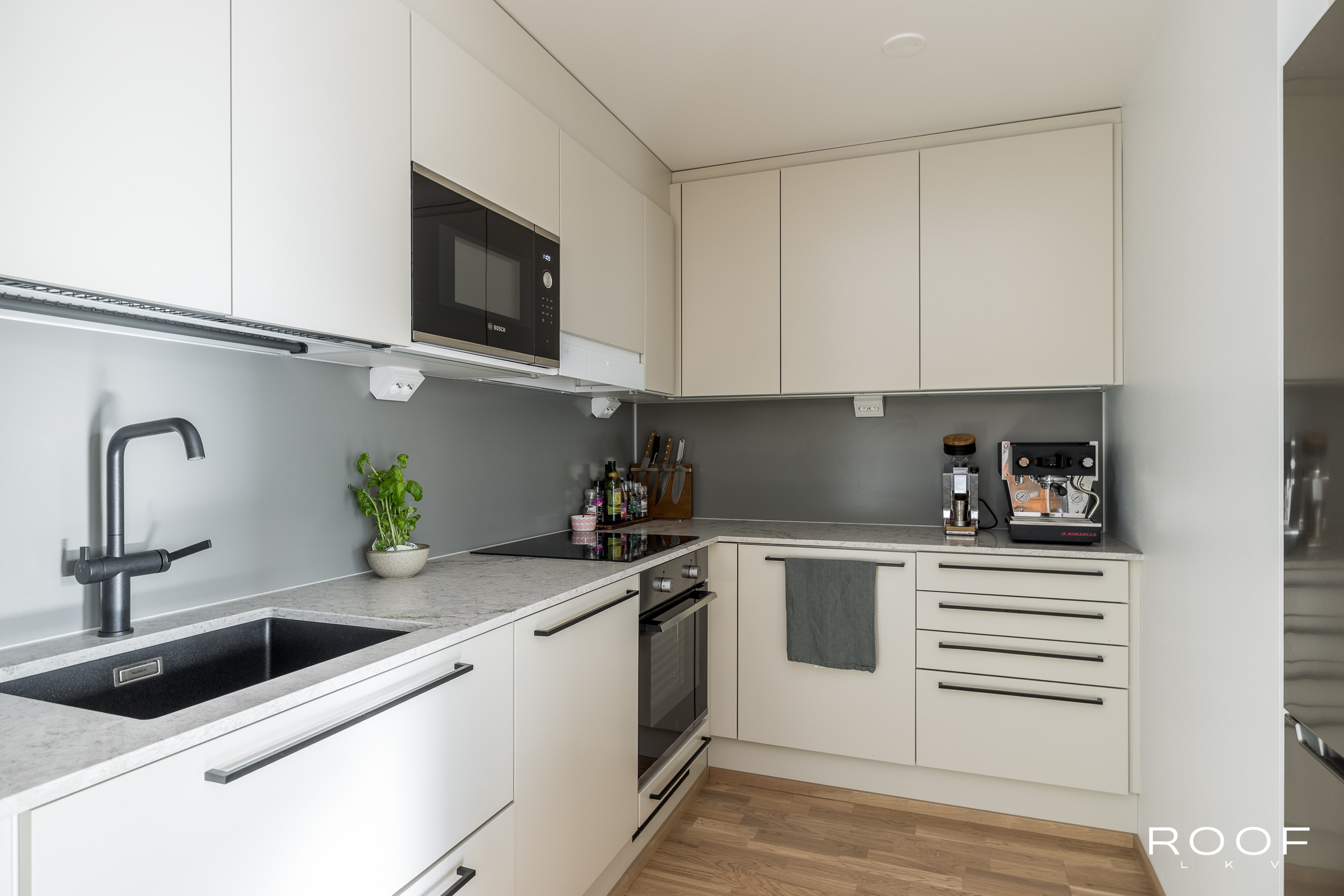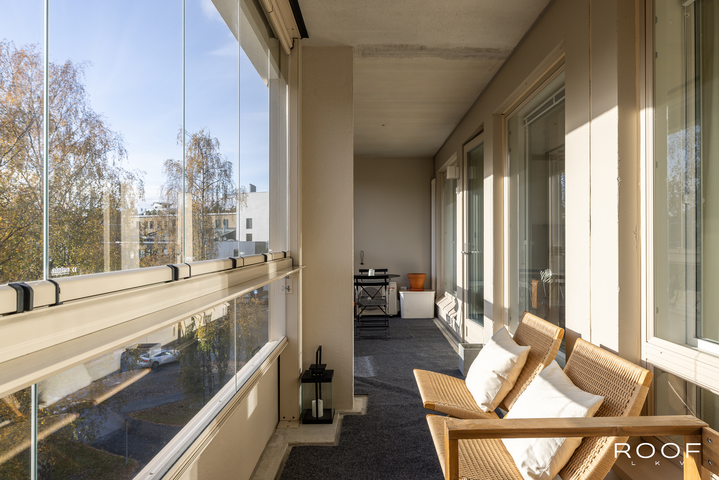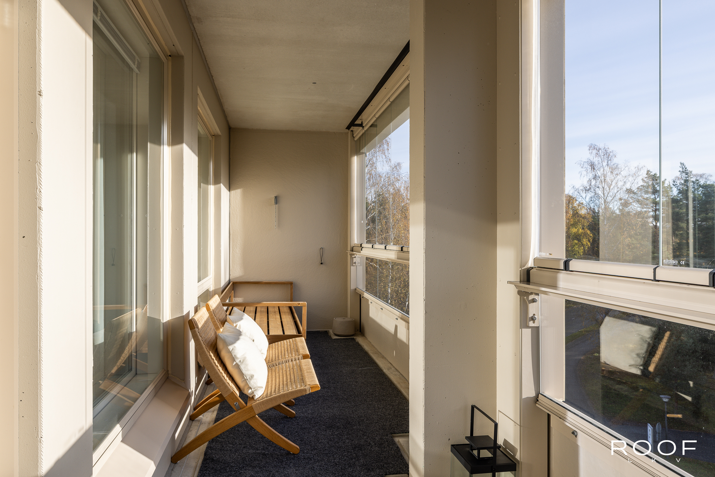 Tyylikkyyttä ja toimivuutta ylimmässä kerroksessa – tämä asunto tarjoaa viihtyisää asumista rauhallisin maisemin koko huoneiston levyiseltä parvekkeelta. Huoneistossa on onnistuneilla materiaalivalinnoilla luotu harmoninen ja moderni kokonaisuus, jossa mustat yksityiskohdat tuovat sisustukseen ryhtiä ja ajattomuutta.