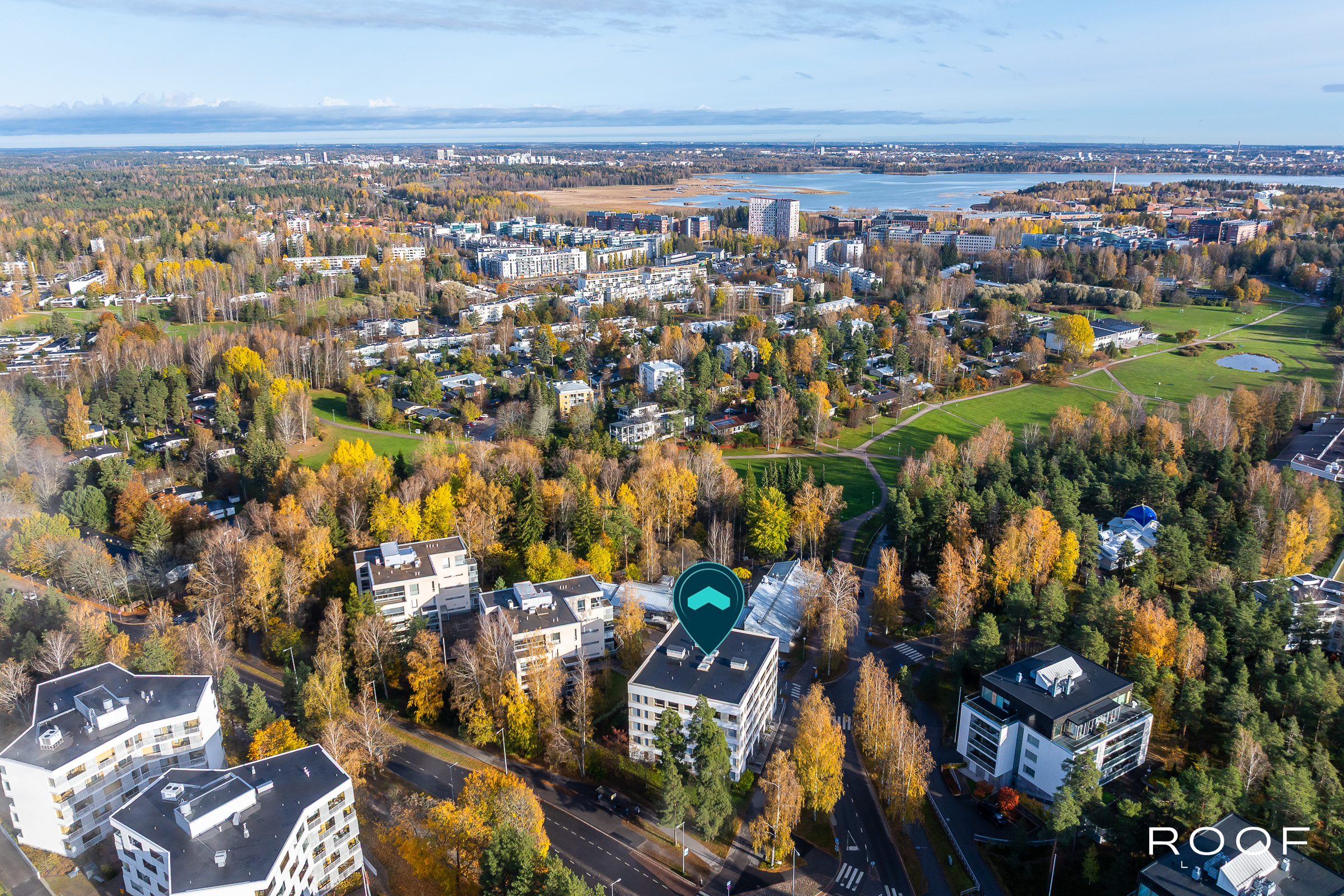 Sijainti on erinomainen – kaikki tarvittavat palvelut löytyvät kävelyetäisyydeltä Kauppakeskus Ainoasta ja metroasemalle kulkee hetkessä. Keskustan suuntaan liikkuminen on vaivatonta, ja lähellä on myös vehreitä ulkoilualueita arjen hengähdyshetkiin.