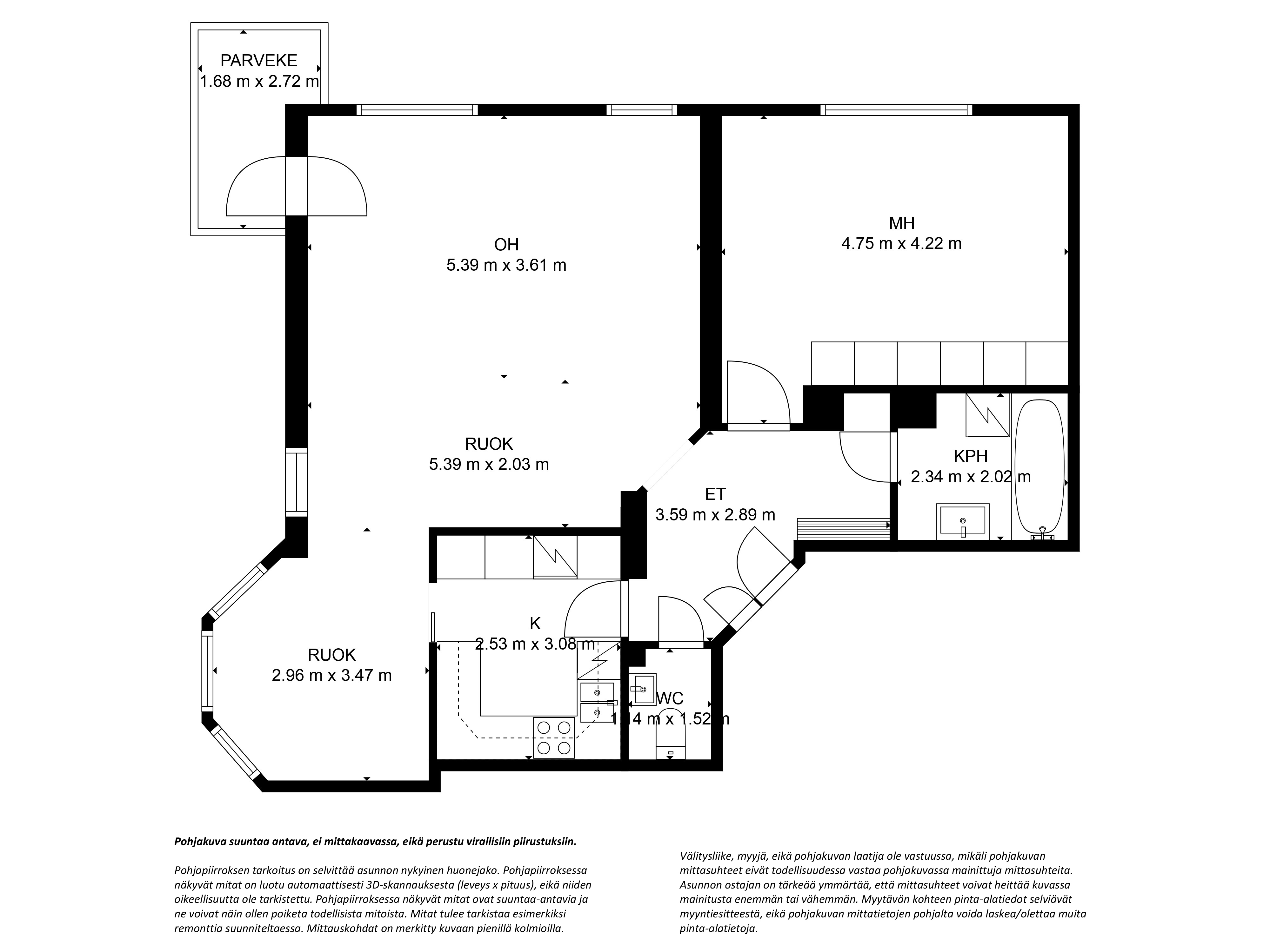 Asunnolle kuuluu kellarikomero. Yhtiössä on sauna.